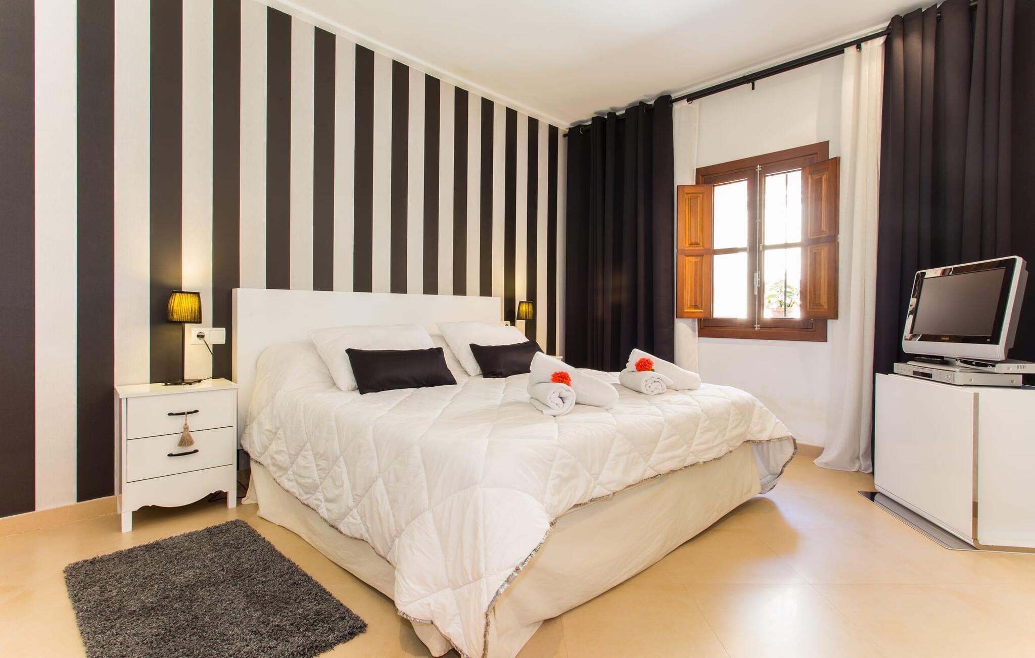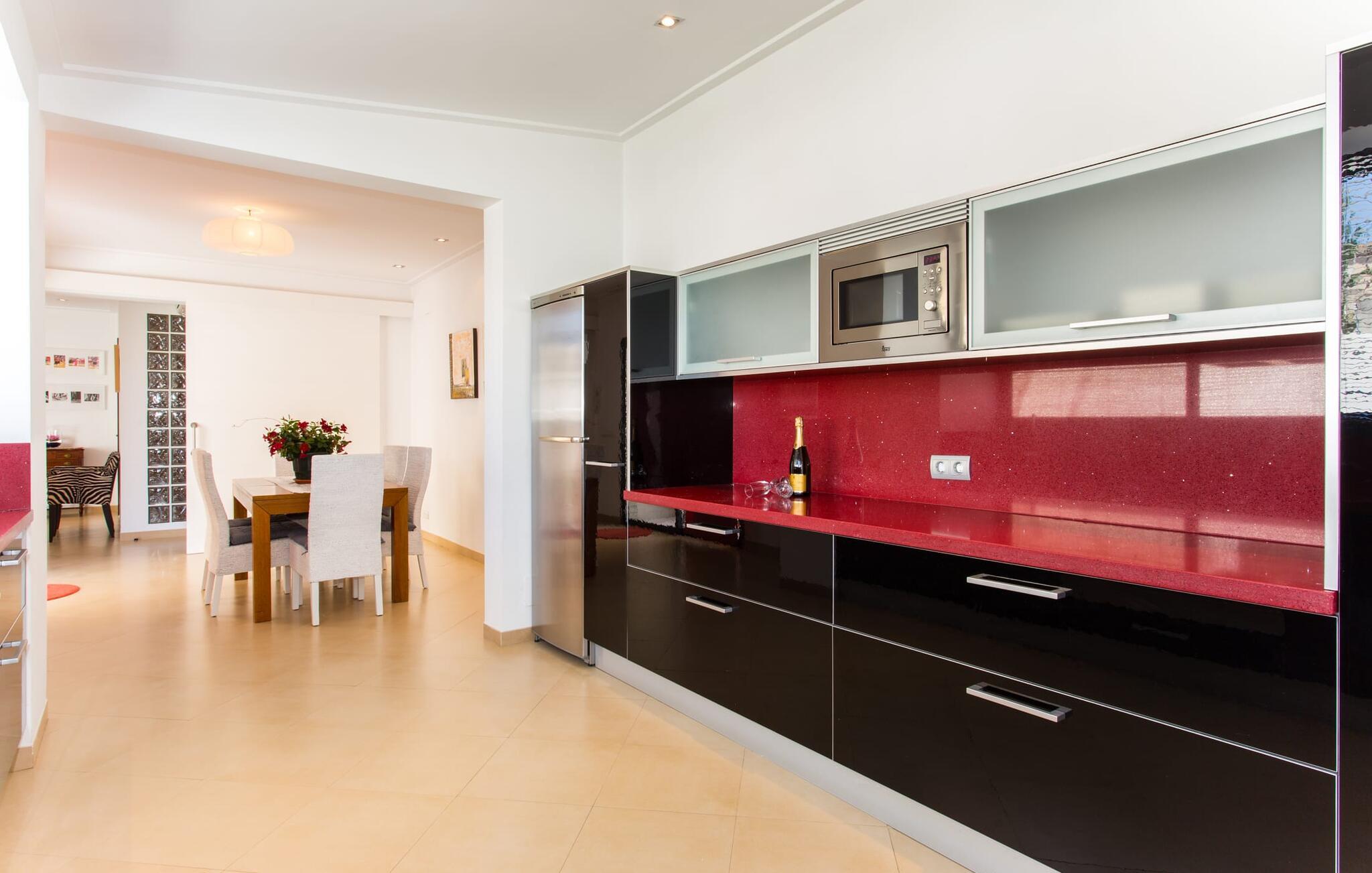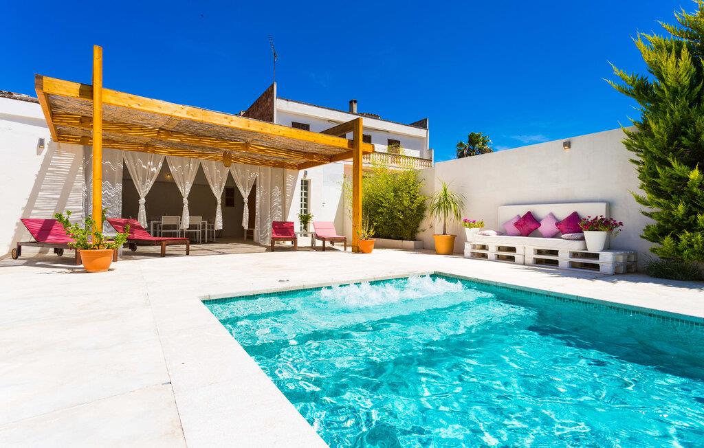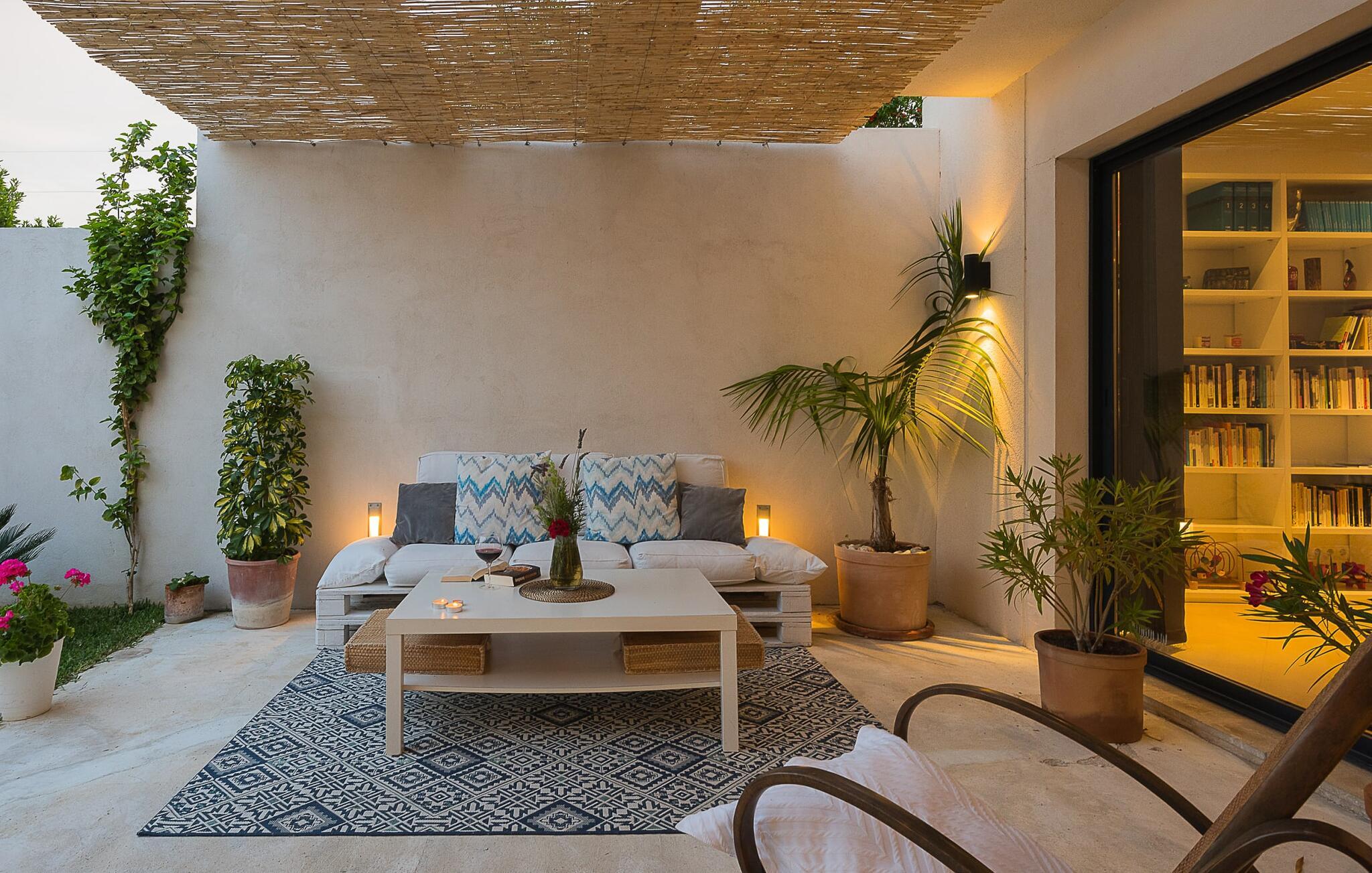Kunne I tænke jer at holde ferie i et autentisk mallorcansk hus, men stadig være privat og nyde god infrastruktur? Så er det værd at kigge nærmere på. Villaen "Ca Na Molinera" kombinerer ikke kun disse kvaliteter, men supplerer dem med en moderne og meget stilfuld atmosfære, hvor I helt sikkert vil føle jer godt tilpas. Feriehuset ligger direkte i den centrale Pla de Mallorca-region i landsbyen Sant Joan, som byder på en typisk, næsten original flair. Villaen ligner en oase, der skiller sig ud fra omgivelserne takket være dens stilfulde indretning. Ved første øjekast virker alt meget lyst og strålende, og det maleriske udendørsområde inviterer jer til at tilbringe lange, fornøjelige timer udendørs. Et par middelhavsplanter, nogle i krukker, pynter på de ellers enkle og overvejende hvide områder. Der er en fantastisk chill-out zone lavet af pallemøbler lige ved siden af huset. Her kan I slappe af hele dagen lang, ideelt med en kølig drink og måske en forfriskende snack. Farverige puder pifter tingene op med lyse toner. Den brede sti til poolen fører først forbi andre afslapningsområder, som er perfekte steder at slappe af udendørs og med garanti vil være populære blandt alle rejsende. Poolen er meget stor til et rækkehus. I kan svømme rigtige runder over en længde på 12 m – har I nogensinde gjort dette, tidligt om morgenen, når dagens lys og livet begynder at vågne omkring dig? Hvis ikke, så skal I bestemt gøre det og nyde denne helt særlige form for luksus. Der er komfortable liggestole til rådighed, så I kan slappe af bagefter. Der er også et andet højdepunkt ved poolen - en slags renoveret garage, hvor I finder et fantastisk udekøkken med spisebord og køleskab. I denne stilfulde atmosfære med en smuk udsigt over poolen kan I spise sammen og nyde en grillsession om aftenen. Husets indre matcher det ydres æstetik. Moderne, behageligt farverig indretning skaber en meget stilfuld atmosfære, hvor I med det samme ønsker at tilbringe tid. Ekstraordinære arrangementer og individuelle stykker giver hele stemningen et ekstra individuelt præg. Bo i de rummelige værelser og skift frem og tilbage mellem de komfortable udendørs og indendørs områder, som I ønsker. I kan slappe perfekt af i den komfortable sofa i den store, lyse stue. Til underholdning er der et fladskærms-tv med satellitforbindelse og dvd-afspiller samt en højhastigheds internetforbindelse for at sikre jeres digitale forbindelse med venner og familie. Mellem opholds- og køkkenområderne er en spiseplads, der tilbyder en indbydende, eksklusiv fornemmelse for perfekte måltider. Køkkenet er et sandt blikfang med sit sorte og røde look: Her finder I plads nok til alt, hvad I skal bruge, så intet står i vejen for jeres selvforsyning. Der er også et soveværelse og et badeværelse på denne etage. Tager I den ekstravagante trappe op til øverste etage, kommer I til et soveværelse. Herfra kommer I ind i det andet værelse: et stort soveværelse med walk-in closet, en-suite badeværelse og privat terrasse. Der er også et andet badeværelse på dette niveau. Alle værelser er indrettet i elegant stil og har masser af plads. Elegante badeværelser giver plads til alle gæster og er udstyret med attraktive installationer og armaturer. Strygejern og hårtørrer er til rådighed i huset, så I behøver ikke at medbringe jeres eget hjemmefra. Den nærliggende landsby Petra (ca. 7 km) med sine gyldenbrune stenhuse minder om en drømmende by langt væk fra stress og jag. Sørg for at besøge det ugentlige marked og de små barer, caféer og restauranter i denne rolige by, som har udviklet en god infrastruktur, men stadig bevarer sin ro. Lloret de Vistalegre er også en attraktiv by og kun 15 minutter væk i bil. En tur til Inca (20 km) er også umagen værd. Den lille by Inca har en lang tradition inden for læder- og skohåndværk. Dette indbydende hus ligger midt i den smukke landsby Sant Joan - kun 7 km fra Petra, en lille, drømmende by, der har sin charme gennem både smukke gyder og gader omkranset af gamle bygninger. Sineu er også omkring 7 km væk. Et stort marked finder sted her hver onsdag morgen; Markedet i Sant Joan finder sted om torsdagen.