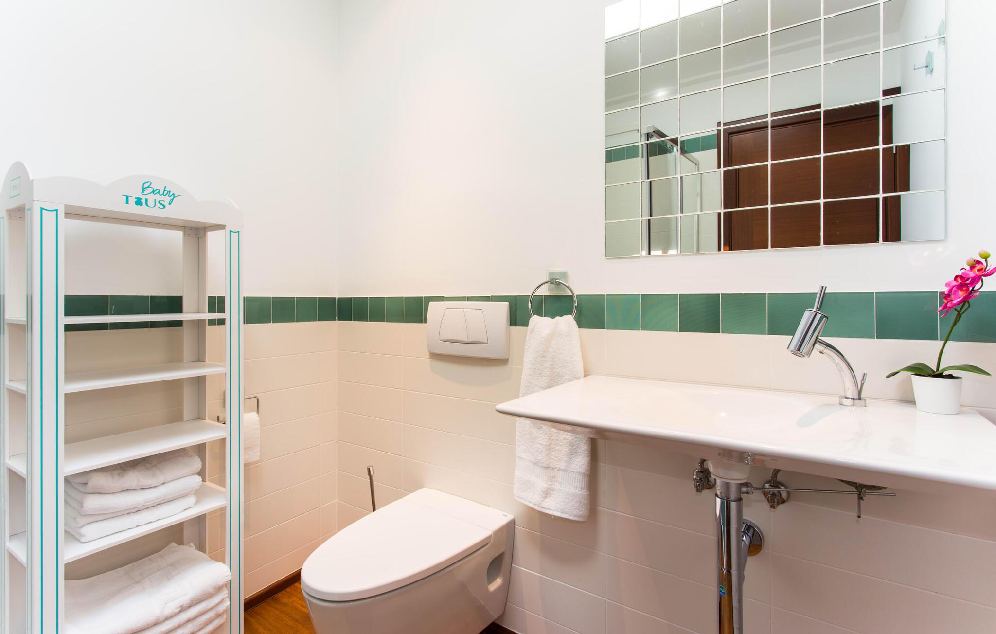 Badeværelse (nr. 1) - WC. Varmt og koldt vand. Bruser