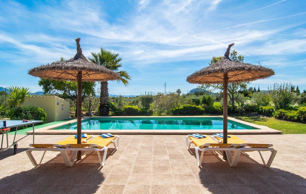 Hvis I leder efter en ideel base for at udforske øen og dens strande som en familie eller en lille gruppe, er feriehuset "Ca Na Neus Pollença" bestemt et godt valg med sit attraktive pris-ydelsesforhold. Udearealet i det smukke naturstenshus er meget velholdt, mens en have med middelhavsplanter og en smuk græsplæne omkranser huset. Den rummelige overdækkede terrasse ved siden af huset er et hyggeligt sted i skyggen og er udstyret med spiseplads og en hyggelig lille lounge. Lige foran den inviterer en rummelig solterrasse og en vidunderlig, lavvandet pool med jacuzzi-funktion til solbadning. Feriehuset har også udendørs bruser, murstensgrill og bordtennisbord. Det indre af feriehuset i stueetagen byder gæsterne velkommen med en venlig, åben opholdsstue, hvor et fuldt udstyret køkken, en spiseplads og den hyggelige stue flyder rumligt ind i hinanden. Det skrå tag med synlige træbjælker og en behagelig udsmykning i landlig stil sikrer en hjemlig følelse. De to komfortable soveområder er udstyret med aircondition og kan nemt mørklægges med rulleskodder. Derudover har begge soveværelser eget badeværelse en suite. Fincaen er beliggende i landlige omgivelser, ikke langt fra S'Albufera naturreservat i den nordøstlige del af Mallorca. Stranden i Pollença Bay er 8 minutter væk; Den 7 km lange sandstrand ved Alcúdia ligger kun 20 minutter væk. Butikker, restauranter og caféer findes i Pollença, 6 km væk, men også i den smukke havn i Puerto de Alcúdia, knap 10 km fra jeres feriehus.