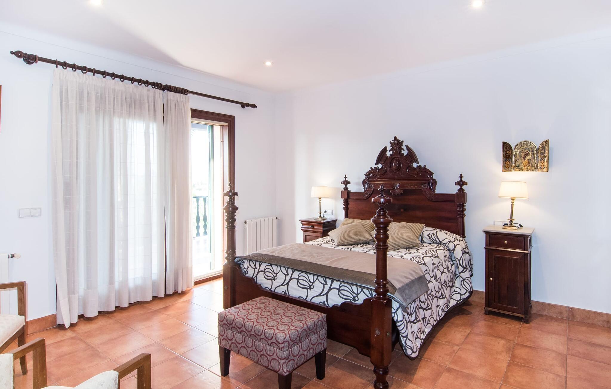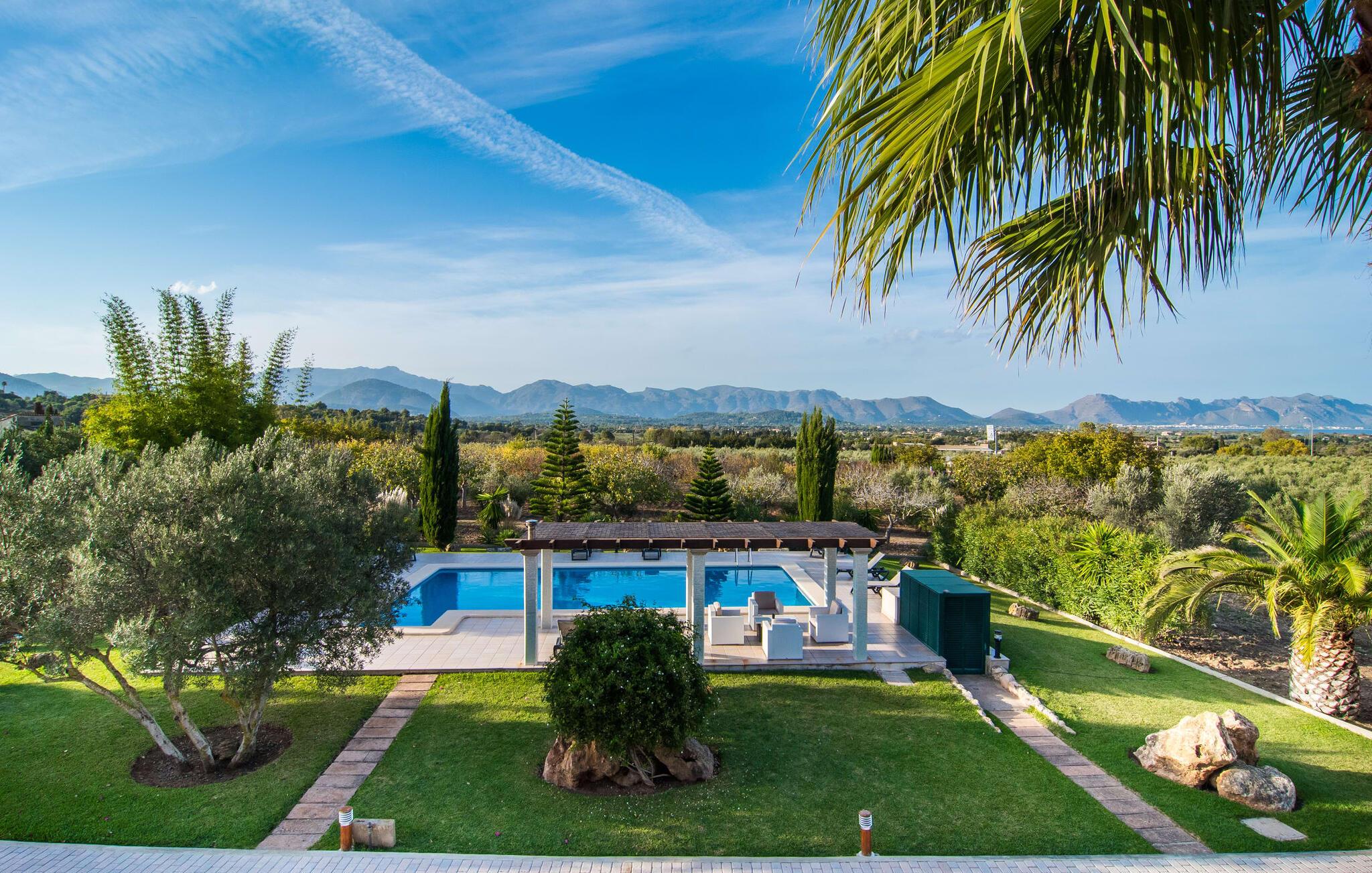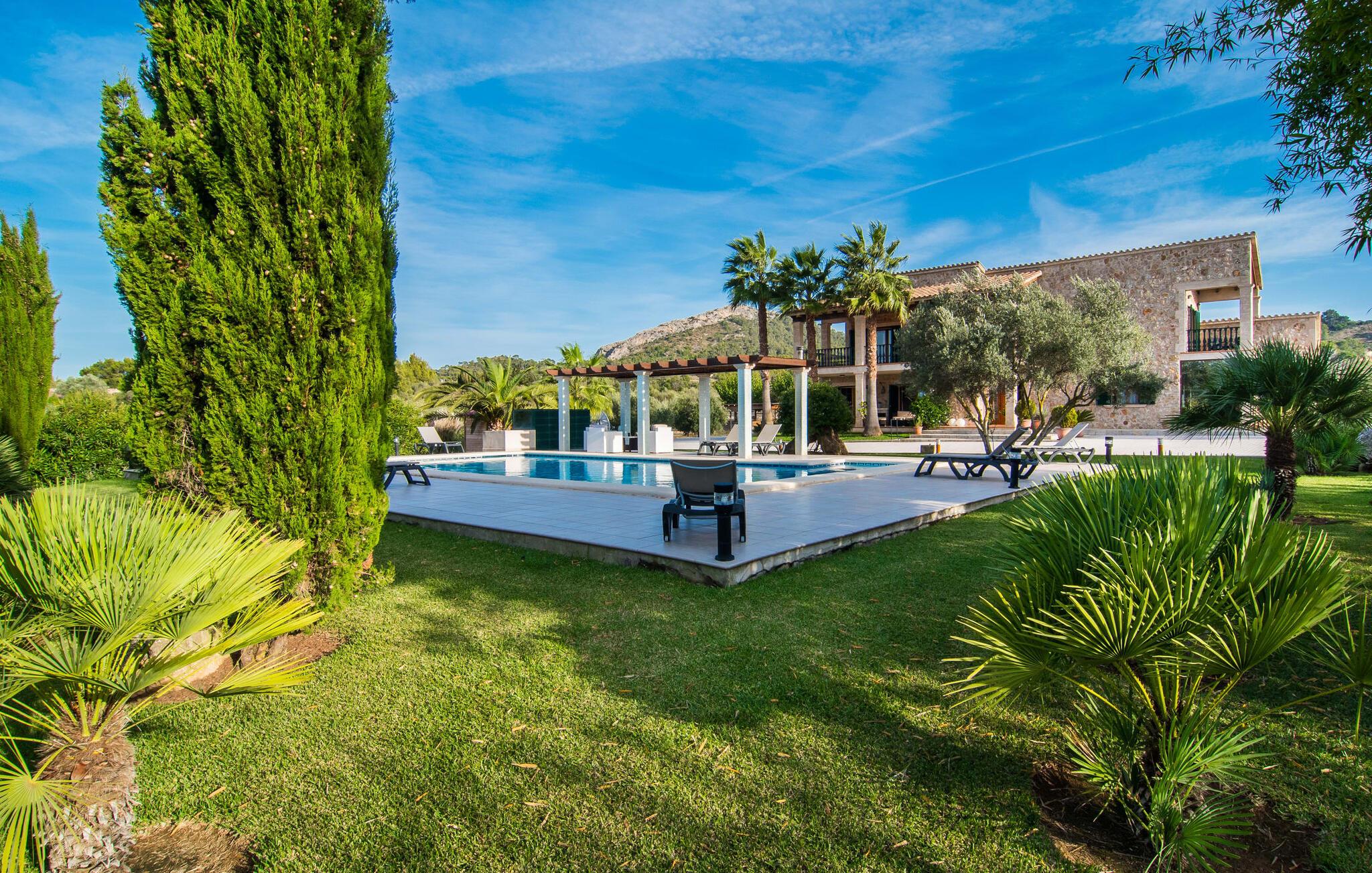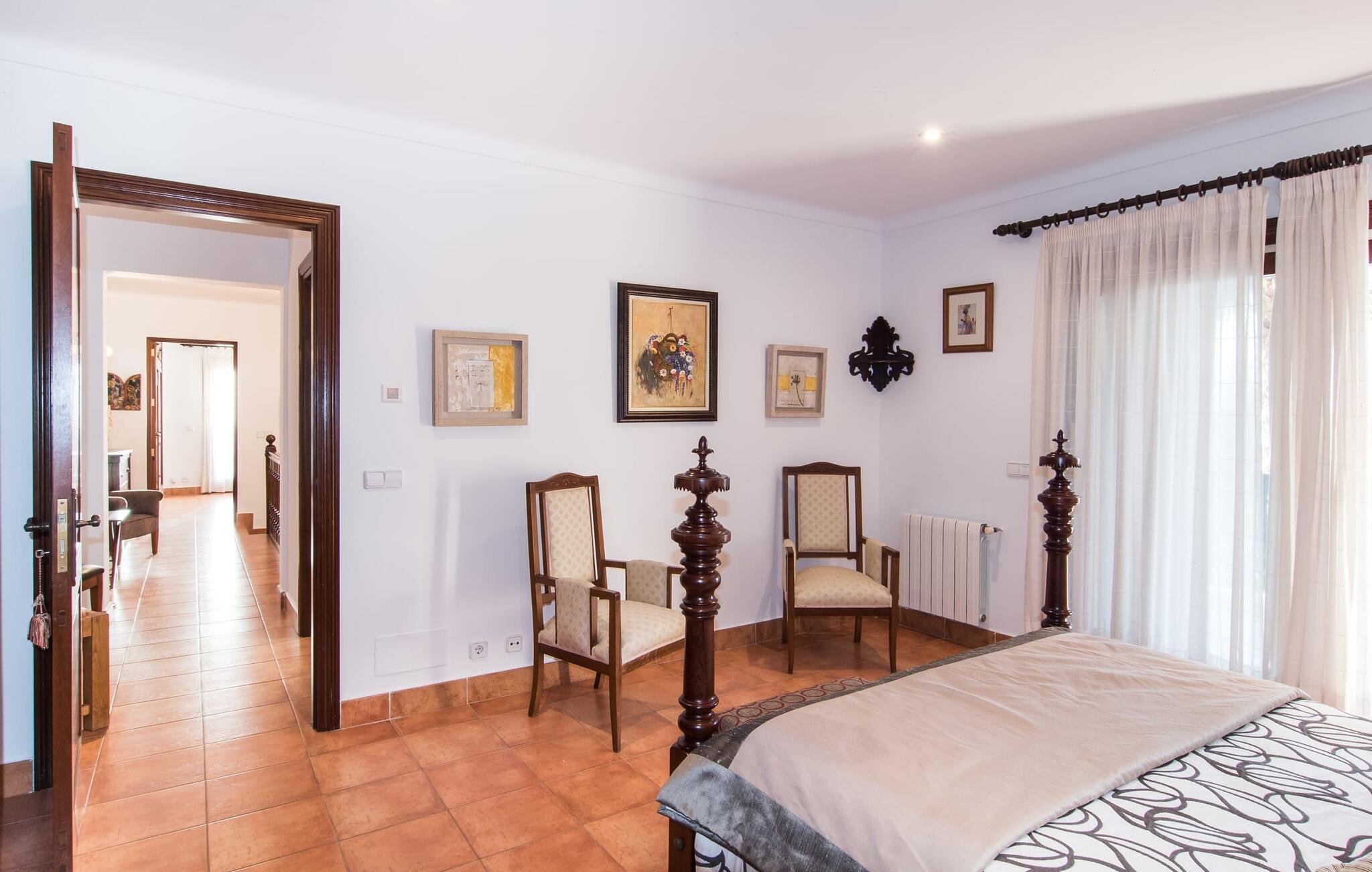Jeg er lige ankommet og vil gerne blive for evigt. Det er netop den tanke, man kommer i tanke om, når man besøger den statelige villa “Ca Na Siona” med sin støbejernsindgangsport og særdeles velholdte udeareal. Det to-etagers landsted lavet af stenbrud ligger midt i et kunstfærdigt designet havelandskab, der er præget af frodig middelhavsvegetation med store træer, herunder palmer. Det smukke landsted ligger på en smuk, privat grund på 28.000 m². Ud over havelandskabet kan I se nordens bølgende bakker og endda havet, som faktisk ligger få kilometer væk. Det traditionelle feriehus i to etager tilbyder et smukt anlagt udendørsområde med en smuk have. I midten ligger den vidunderligt rummelige 72 m² store pool, som er dekorativt foret med et bugtende mønster. Omkring poolen er der en stor solterrasse med ti liggestole. Her kan I slappe af og nyde den uforlignelige smukke udsigt over de lave bakker og bjerge i den nordlige del af øen. En markise over solterrassen i tilknytning til huset giver af og til lidt skygge. Lad jeres tanker vandre i hængekøjen strakt over forteltet og nyd lyden af palmebladene, der forsigtigt rører i vinden - det er feriens vidunderlige lyde. Palmerne ligger lige ved siden af huset, i tilknytning til den overdækkede terrasse. En del af terrassen er udstyret med afslappende loungemøbler i fletlook; Ved siden af finder I en hyggelig spiseplads. Den smukke villa er perfekt udstyret til at rumme en større gruppe rejsende uanset årstiden. Spisestuen vidner om dette med sin vinterhavestemning og luksuriøse ravlæderlænestole suppleret med hvide læderto-personers sofaer. Når temperaturen falder, giver den en friluftsfølelse takket være gulv-til-loft-vinduer. Nyd udsigten over havelandskabet, som formidler et særligt strejf af individualitet og kreativitet takket være de store metalskulpturer. Det er detaljer som disse, der afspejler denne ejendoms kærlige design. Bag vinterhaven ligger det store køkken, hvis vægge er dekoreret med ægte mallorcanske, håndmalede fliser i øens typiske blå-hvide mønster. Disse harmonerer perfekt med trækøkkenet (fuldt udstyret med italiensk kaffemaskine, opvaskemaskine, elkedel og meget mere) og giver det en maritim charme. Den store stue er udstyret med et vidunderligt sofaområde foran LCD-tv til at tilbringe hyggelige aftener for to. Der er også endnu et spisebord i det store rum, der kan bruges til underholdende aftener med brætspil. Fem soveværelser er fordelt på de to etager. I stueetagen er der et soveværelse med dobbeltseng, der åbner ud til haven; Yderligere to soveværelser på øverste etage har egen altan, de to øvrige soveværelser kan konkurrere på hygge og komfort med en fantastisk udsigt over den smukke natur. Smukke, delvist håndskårne træsenge og masser af opbevaringsplads garanterer en afslappende søvn. De to badeværelser til rådighed for gæsterne er hver udstyret med et badekar. Her finder I også disse yndige mallorcanske fliser, dekoreret med blomsterdekorationer. På den ene side er dette smukke feriehus omgivet af grønne områder, men på den anden side kan I køre til havet på ingen tid. De fine sandstrande omkring Port de Pollença har en lavvandet indgang til vandet, hvilket gør dem særligt behagelige for familier. Beliggenheden gør en tur til de smukke strande i Alcúdia-bugten (som Es Bacares, Can Cap de Bou og Cala Clara) til et rigtigt must. Den lille kystby Port de Pollença byder på en smuk promenade med butikker, barer og restauranter. Både stemningsfulde byer samt den lille by Pollença og den smukke gamle bydel Alcúdia er virkelige højdepunkter og en tur værd. De lokale markeder er særligt værd (i Pollença om tirsdagen; i Alcúdia om onsdagen og endda søndage). Mange gader i den gamle bydel i Alcúdia er lukket om søndagen på grund af markedet. Her kan I ofte opdage smukke unikke stykker og lækre friske råvarer. En gåtur gennem markedet eller gennem de nærliggende små byer skaber en fantastisk kontrast til roligere dage i villaen, hvilket kun forstærker den særlige charme ved villaen “Ca Na Siona”. Den smukke stenbrudsvilla "Ca Na Siona" er en fantastisk ejendom, et meget velholdt feriehus i en rolig, naturlig beliggenhed. Den storslåede villa ligger på en 28.000 m² stor ejendom mellem Pollença og Alcúdia. De nordlige mallorcanske byer ligger kun få kilometer væk og inviterer jer til at shoppe og spadsere. De fine sandstrande nær Pollença og Alcúdia som Es Bacares og Can Cap de Bou er ideelle for familier på grund af deres lavvandede indsejling i vandet.