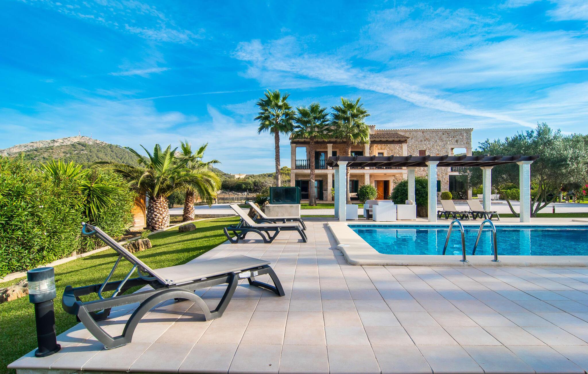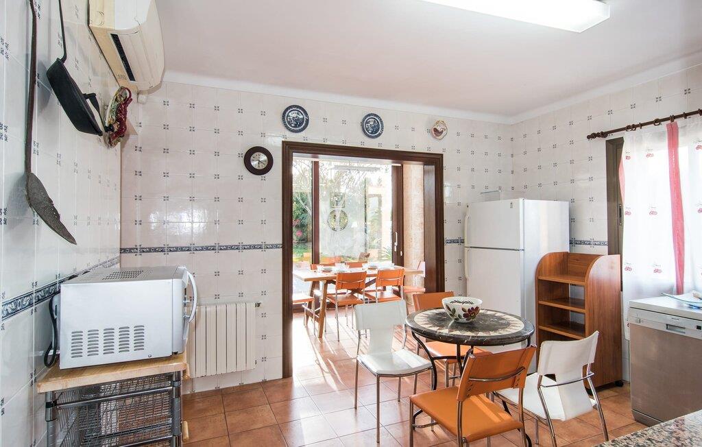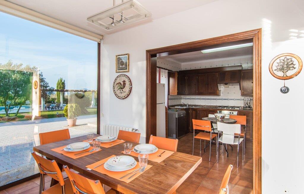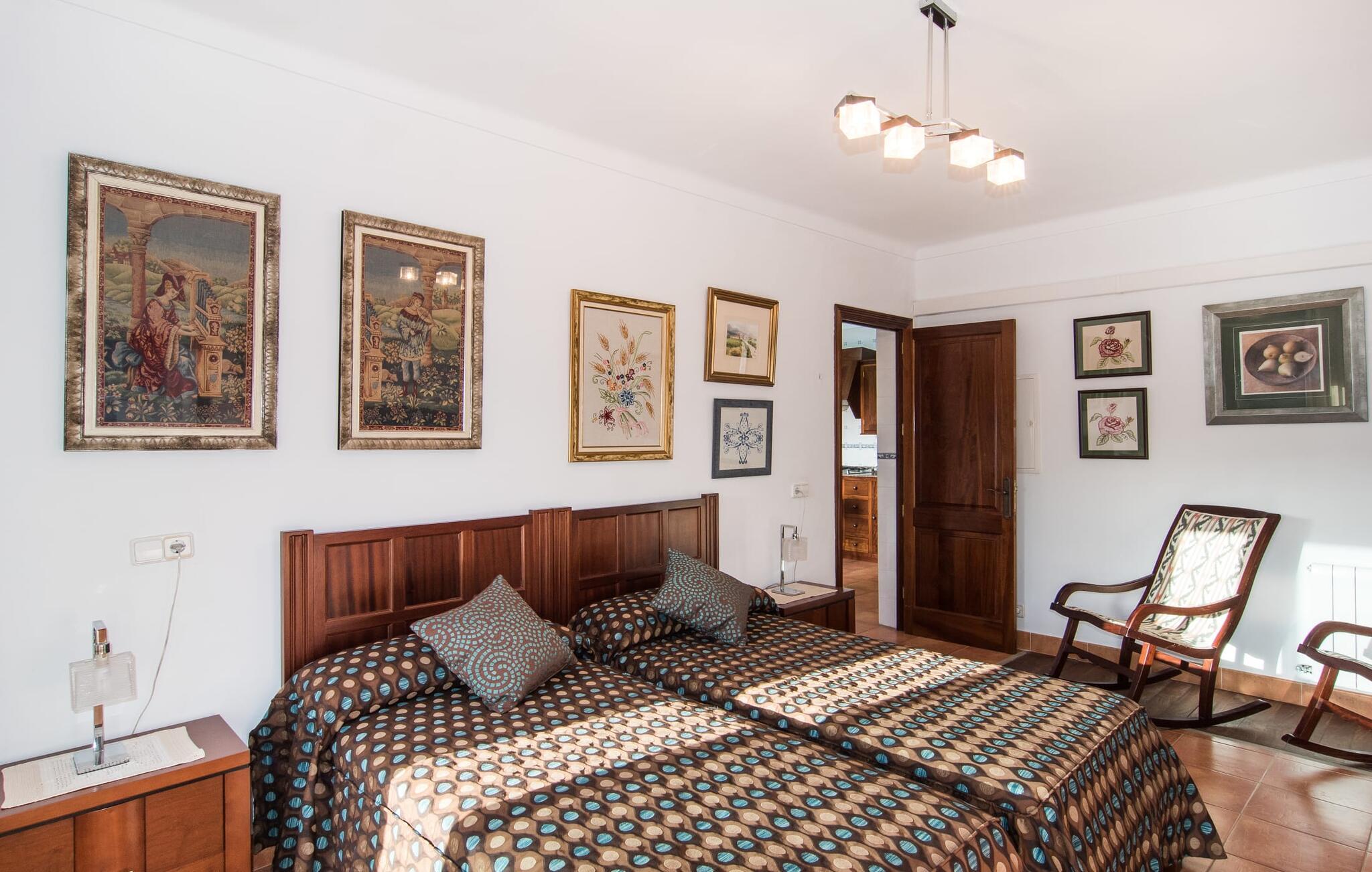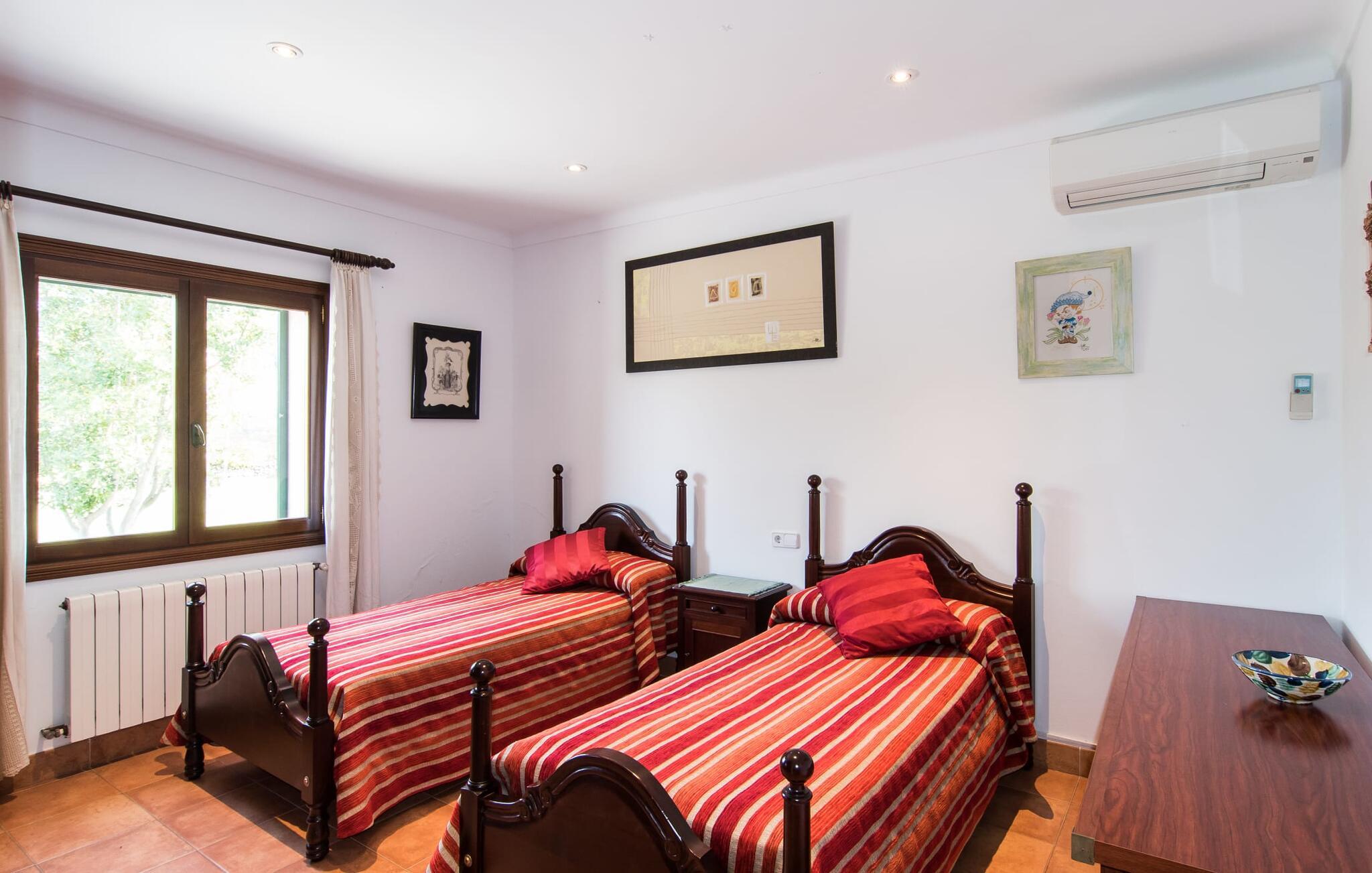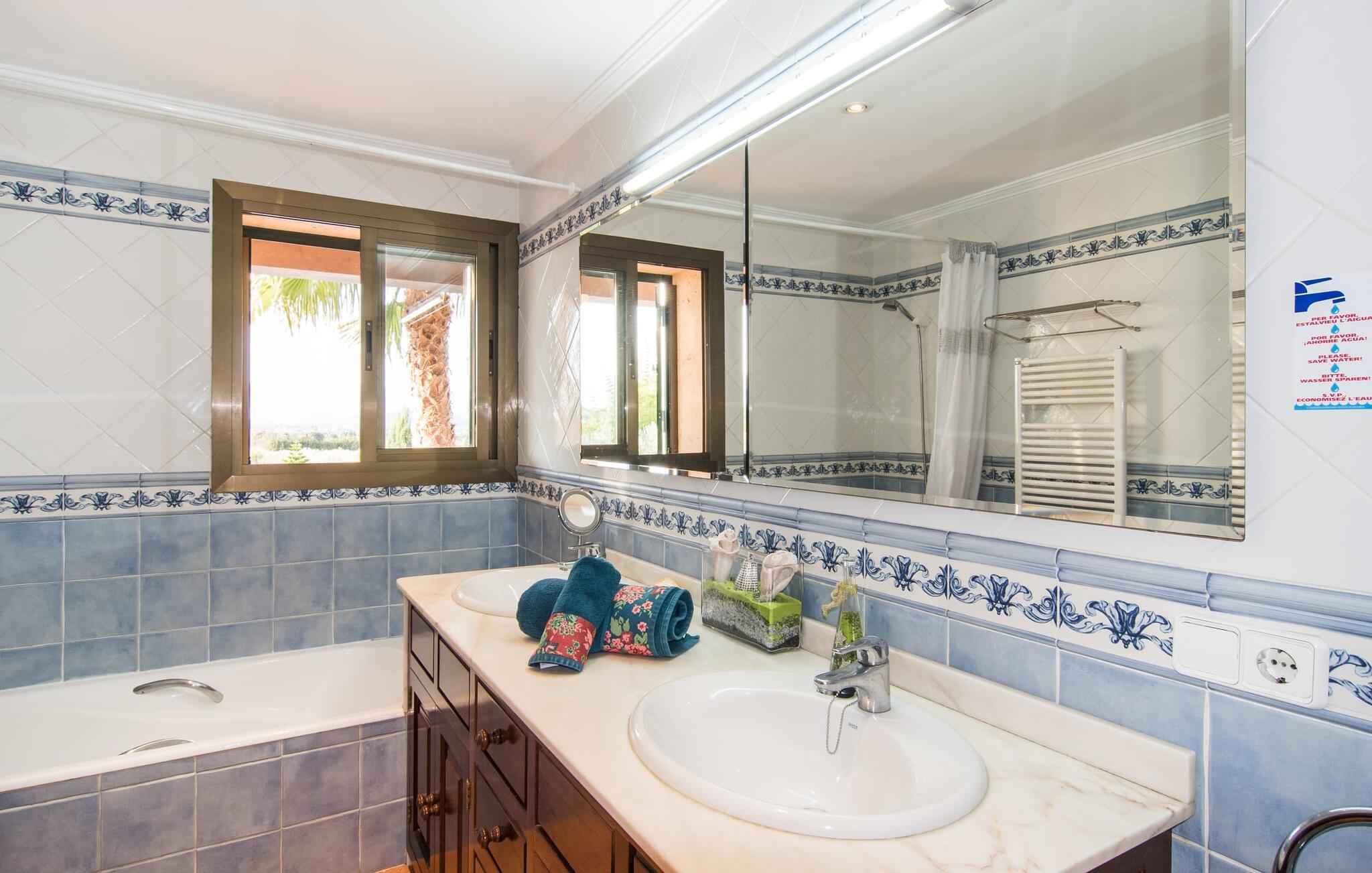 Jeg er lige ankommet og vil gerne blive for evigt. Det er netop den tanke, man kommer i tanke om, når man besøger den statelige villa “Ca Na Siona” med sin støbejernsindgangsport og særdeles velholdte udeareal. Det to-etagers landsted lavet af stenbrud ligger midt i et kunstfærdigt designet havelandskab, der er præget af frodig middelhavsvegetation med store træer, herunder palmer. Det smukke landsted ligger på en smuk, privat grund på 28.000 m². Ud over havelandskabet kan I se nordens bølgende bakker og endda havet, som faktisk ligger få kilometer væk. Det traditionelle feriehus i to etager tilbyder et smukt anlagt udendørsområde med en smuk have. I midten ligger den vidunderligt rummelige 72 m² store pool, som er dekorativt foret med et bugtende mønster. Omkring poolen er der en stor solterrasse med ti liggestole. Her kan I slappe af og nyde den uforlignelige smukke udsigt over de lave bakker og bjerge i den nordlige del af øen. En markise over solterrassen i tilknytning til huset giver af og til lidt skygge. Lad jeres tanker vandre i hængekøjen strakt over forteltet og nyd lyden af palmebladene, der forsigtigt rører i vinden - det er feriens vidunderlige lyde. Palmerne ligger lige ved siden af huset, i tilknytning til den overdækkede terrasse. En del af terrassen er udstyret med afslappende loungemøbler i fletlook; Ved siden af finder I en hyggelig spiseplads. Den smukke villa er perfekt udstyret til at rumme en større gruppe rejsende uanset årstiden. Spisestuen vidner om dette med sin vinterhavestemning og luksuriøse ravlæderlænestole suppleret med hvide læderto-personers sofaer. Når temperaturen falder, giver den en friluftsfølelse takket være gulv-til-loft-vinduer. Nyd udsigten over havelandskabet, som formidler et særligt strejf af individualitet og kreativitet takket være de store metalskulpturer. Det er detaljer som disse, der afspejler denne ejendoms kærlige design. Bag vinterhaven ligger det store køkken, hvis vægge er dekoreret med ægte mallorcanske, håndmalede fliser i øens typiske blå-hvide mønster. Disse harmonerer perfekt med trækøkkenet (fuldt udstyret med italiensk kaffemaskine, opvaskemaskine, elkedel og meget mere) og giver det en maritim charme. Den store stue er udstyret med et vidunderligt sofaområde foran LCD-tv til at tilbringe hyggelige aftener for to. Der er også endnu et spisebord i det store rum, der kan bruges til underholdende aftener med brætspil. Fem soveværelser er fordelt på de to etager. I stueetagen er der et soveværelse med dobbeltseng, der åbner ud til haven; Yderligere to soveværelser på øverste etage har egen altan, de to øvrige soveværelser kan konkurrere på hygge og komfort med en fantastisk udsigt over den smukke natur. Smukke, delvist håndskårne træsenge og masser af opbevaringsplads garanterer en afslappende søvn. De to badeværelser til rådighed for gæsterne er hver udstyret med et badekar. Her finder I også disse yndige mallorcanske fliser, dekoreret med blomsterdekorationer. På den ene side er dette smukke feriehus omgivet af grønne områder, men på den anden side kan I køre til havet på ingen tid. De fine sandstrande omkring Port de Pollença har en lavvandet indgang til vandet, hvilket gør dem særligt behagelige for familier. Beliggenheden gør en tur til de smukke strande i Alcúdia-bugten (som Es Bacares, Can Cap de Bou og Cala Clara) til et rigtigt must. Den lille kystby Port de Pollença byder på en smuk promenade med butikker, barer og restauranter. Både stemningsfulde byer samt den lille by Pollença og den smukke gamle bydel Alcúdia er virkelige højdepunkter og en tur værd. De lokale markeder er særligt værd (i Pollença om tirsdagen; i Alcúdia om onsdagen og endda søndage). Mange gader i den gamle bydel i Alcúdia er lukket om søndagen på grund af markedet. Her kan I ofte opdage smukke unikke stykker og lækre friske råvarer. En gåtur gennem markedet eller gennem de nærliggende små byer skaber en fantastisk kontrast til roligere dage i villaen, hvilket kun forstærker den særlige charme ved villaen “Ca Na Siona”. Den smukke stenbrudsvilla "Ca Na Siona" er en fantastisk ejendom, et meget velholdt feriehus i en rolig, naturlig beliggenhed. Den storslåede villa ligger på en 28.000 m² stor ejendom mellem Pollença og Alcúdia. De nordlige mallorcanske byer ligger kun få kilometer væk og inviterer jer til at shoppe og spadsere. De fine sandstrande nær Pollença og Alcúdia som Es Bacares og Can Cap de Bou er ideelle for familier på grund af deres lavvandede indsejling i vandet.