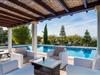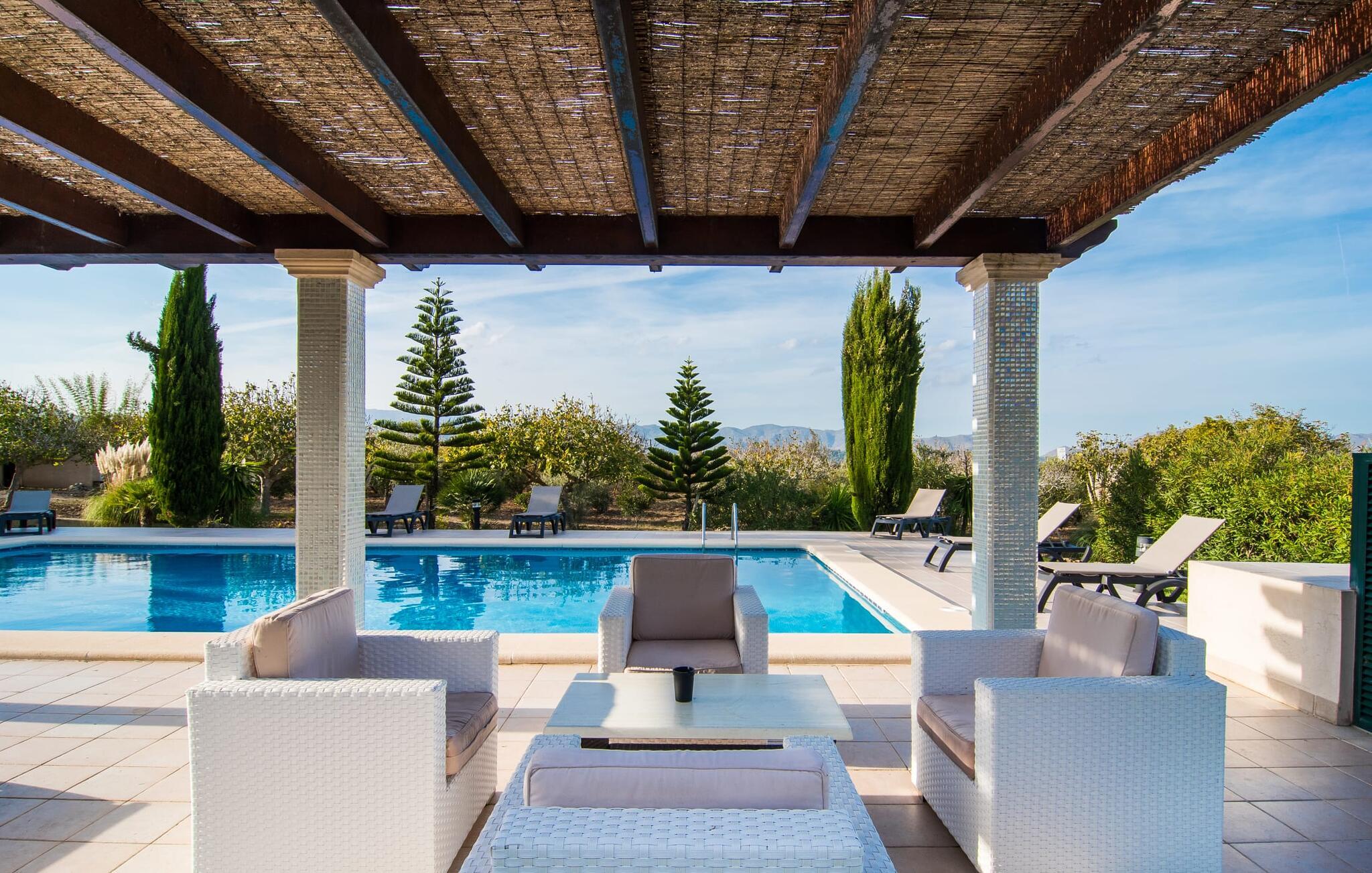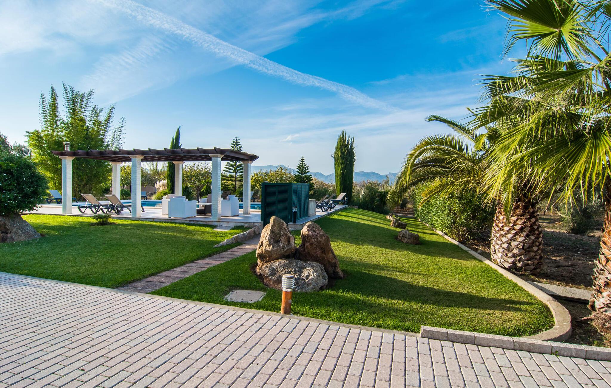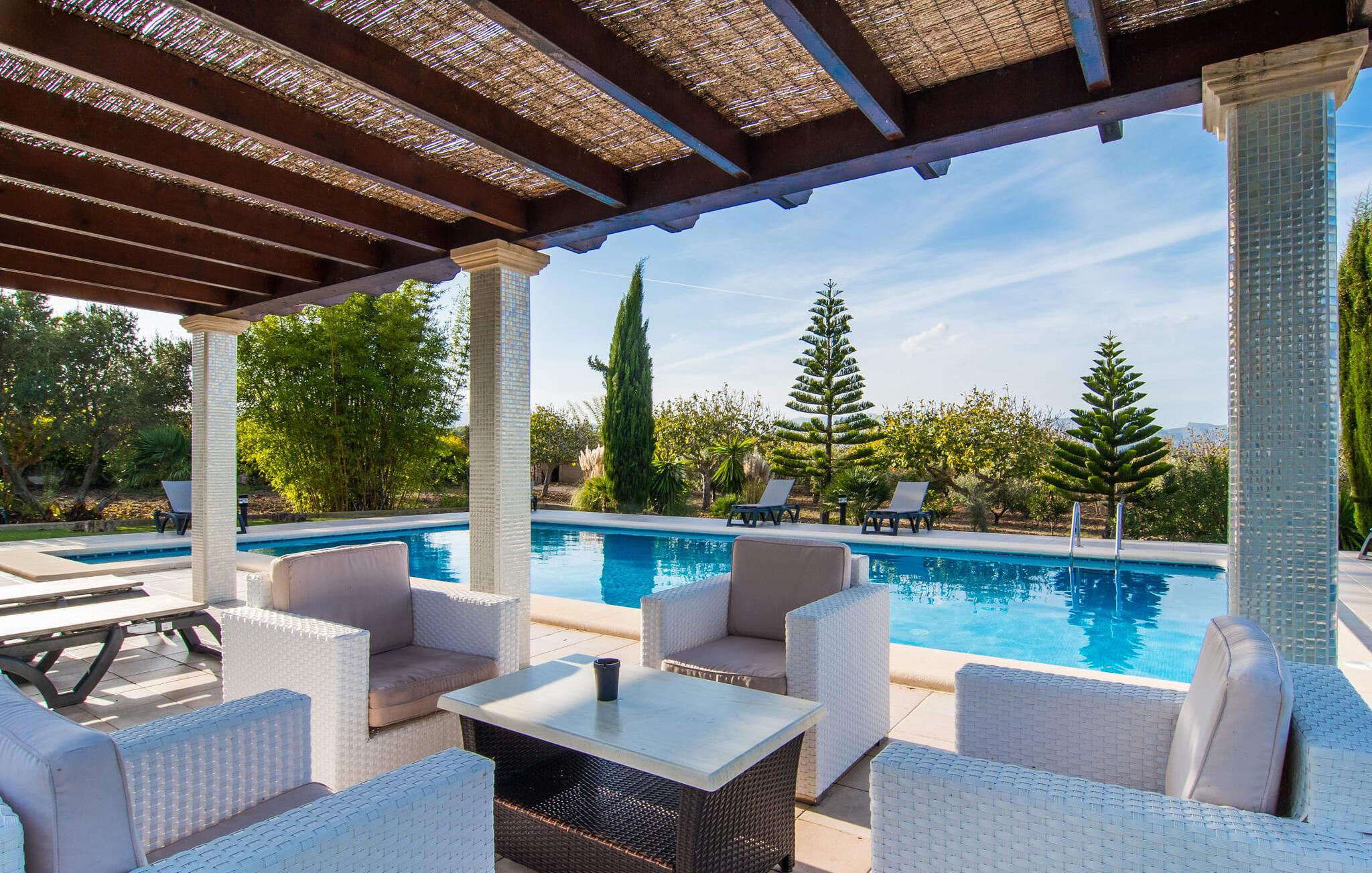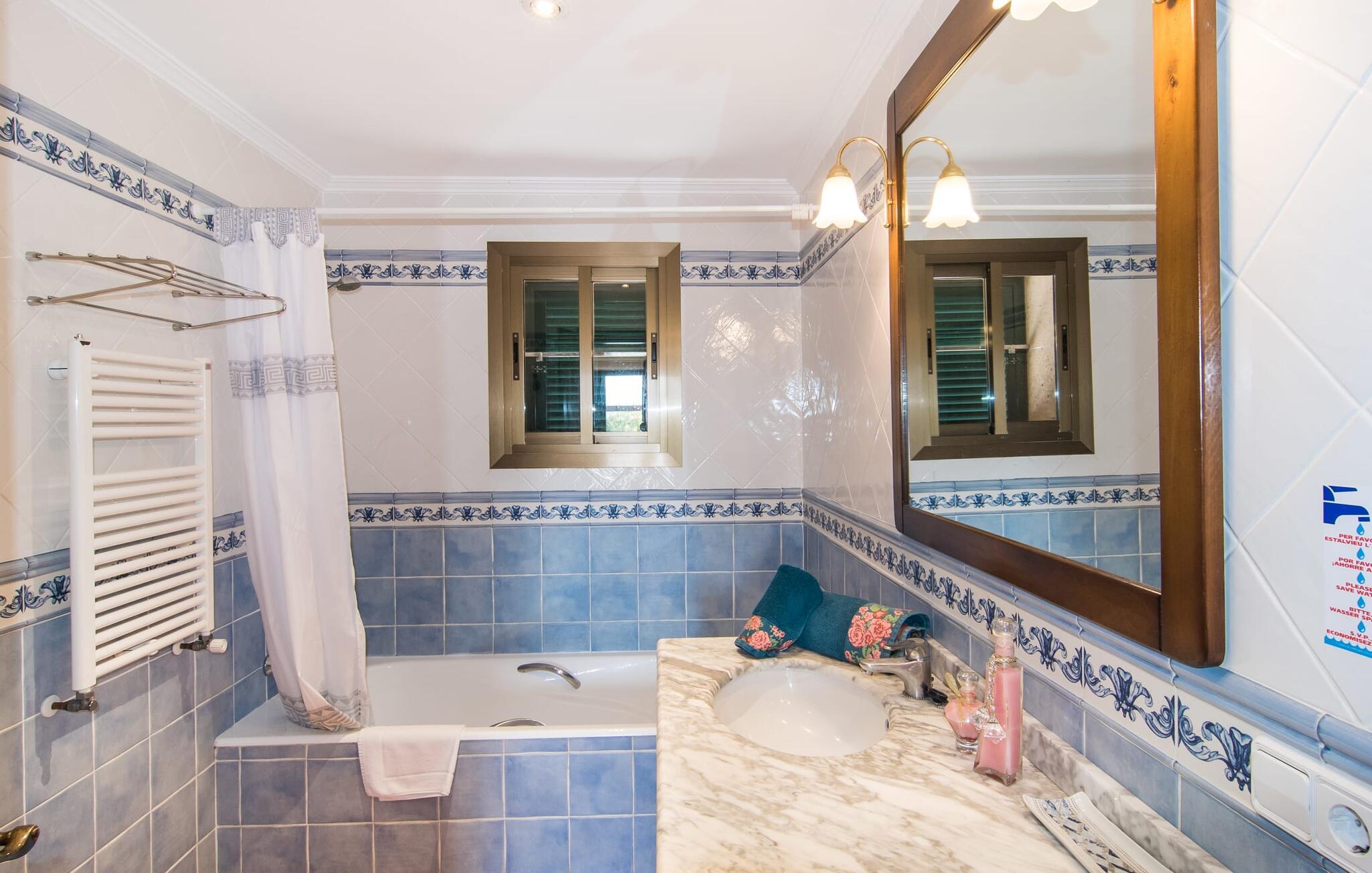 Jeg er lige ankommet og vil gerne blive for evigt. Det er netop den tanke, man kommer i tanke om, når man besøger den statelige villa “Ca Na Siona” med sin støbejernsindgangsport og særdeles velholdte udeareal. Det to-etagers landsted lavet af stenbrud ligger midt i et kunstfærdigt designet havelandskab, der er præget af frodig middelhavsvegetation med store træer, herunder palmer. Det smukke landsted ligger på en smuk, privat grund på 28.000 m². Ud over havelandskabet kan I se nordens bølgende bakker og endda havet, som faktisk ligger få kilometer væk. Det traditionelle feriehus i to etager tilbyder et smukt anlagt udendørsområde med en smuk have. I midten ligger den vidunderligt rummelige 72 m² store pool, som er dekorativt foret med et bugtende mønster. Omkring poolen er der en stor solterrasse med ti liggestole. Her kan I slappe af og nyde den uforlignelige smukke udsigt over de lave bakker og bjerge i den nordlige del af øen. En markise over solterrassen i tilknytning til huset giver af og til lidt skygge. Lad jeres tanker vandre i hængekøjen strakt over forteltet og nyd lyden af palmebladene, der forsigtigt rører i vinden - det er feriens vidunderlige lyde. Palmerne ligger lige ved siden af huset, i tilknytning til den overdækkede terrasse. En del af terrassen er udstyret med afslappende loungemøbler i fletlook; Ved siden af finder I en hyggelig spiseplads. Den smukke villa er perfekt udstyret til at rumme en større gruppe rejsende uanset årstiden. Spisestuen vidner om dette med sin vinterhavestemning og luksuriøse ravlæderlænestole suppleret med hvide læderto-personers sofaer. Når temperaturen falder, giver den en friluftsfølelse takket være gulv-til-loft-vinduer. Nyd udsigten over havelandskabet, som formidler et særligt strejf af individualitet og kreativitet takket være de store metalskulpturer. Det er detaljer som disse, der afspejler denne ejendoms kærlige design. Bag vinterhaven ligger det store køkken, hvis vægge er dekoreret med ægte mallorcanske, håndmalede fliser i øens typiske blå-hvide mønster. Disse harmonerer perfekt med trækøkkenet (fuldt udstyret med italiensk kaffemaskine, opvaskemaskine, elkedel og meget mere) og giver det en maritim charme. Den store stue er udstyret med et vidunderligt sofaområde foran LCD-tv til at tilbringe hyggelige aftener for to. Der er også endnu et spisebord i det store rum, der kan bruges til underholdende aftener med brætspil. Fem soveværelser er fordelt på de to etager. I stueetagen er der et soveværelse med dobbeltseng, der åbner ud til haven; Yderligere to soveværelser på øverste etage har egen altan, de to øvrige soveværelser kan konkurrere på hygge og komfort med en fantastisk udsigt over den smukke natur. Smukke, delvist håndskårne træsenge og masser af opbevaringsplads garanterer en afslappende søvn. De to badeværelser til rådighed for gæsterne er hver udstyret med et badekar. Her finder I også disse yndige mallorcanske fliser, dekoreret med blomsterdekorationer. På den ene side er dette smukke feriehus omgivet af grønne områder, men på den anden side kan I køre til havet på ingen tid. De fine sandstrande omkring Port de Pollença har en lavvandet indgang til vandet, hvilket gør dem særligt behagelige for familier. Beliggenheden gør en tur til de smukke strande i Alcúdia-bugten (som Es Bacares, Can Cap de Bou og Cala Clara) til et rigtigt must. Den lille kystby Port de Pollença byder på en smuk promenade med butikker, barer og restauranter. Både stemningsfulde byer samt den lille by Pollença og den smukke gamle bydel Alcúdia er virkelige højdepunkter og en tur værd. De lokale markeder er særligt værd (i Pollença om tirsdagen; i Alcúdia om onsdagen og endda søndage). Mange gader i den gamle bydel i Alcúdia er lukket om søndagen på grund af markedet. Her kan I ofte opdage smukke unikke stykker og lækre friske råvarer. En gåtur gennem markedet eller gennem de nærliggende små byer skaber en fantastisk kontrast til roligere dage i villaen, hvilket kun forstærker den særlige charme ved villaen “Ca Na Siona”. Den smukke stenbrudsvilla "Ca Na Siona" er en fantastisk ejendom, et meget velholdt feriehus i en rolig, naturlig beliggenhed. Den storslåede villa ligger på en 28.000 m² stor ejendom mellem Pollença og Alcúdia. De nordlige mallorcanske byer ligger kun få kilometer væk og inviterer jer til at shoppe og spadsere. De fine sandstrande nær Pollença og Alcúdia som Es Bacares og Can Cap de Bou er ideelle for familier på grund af deres lavvandede indsejling i vandet.