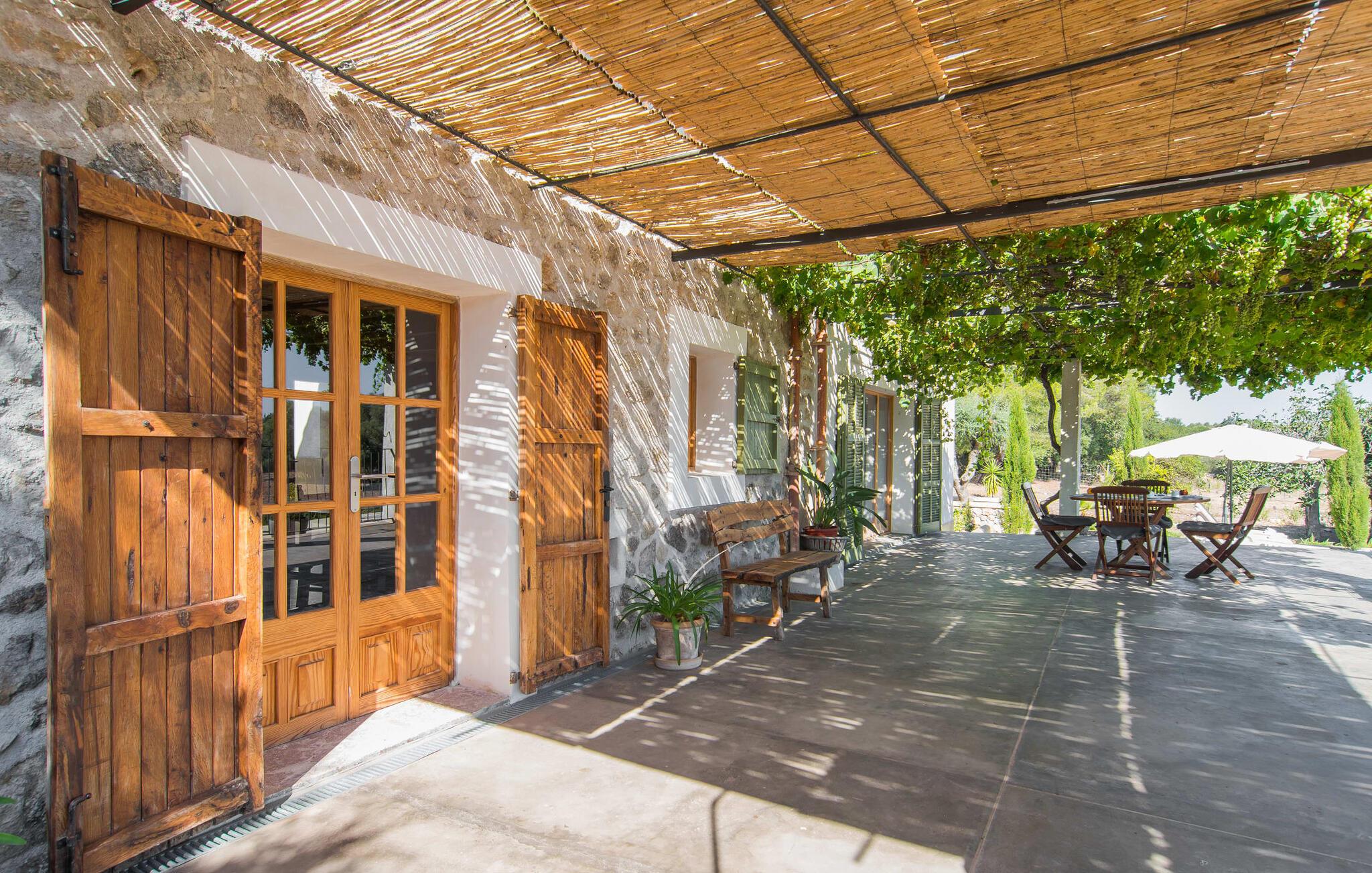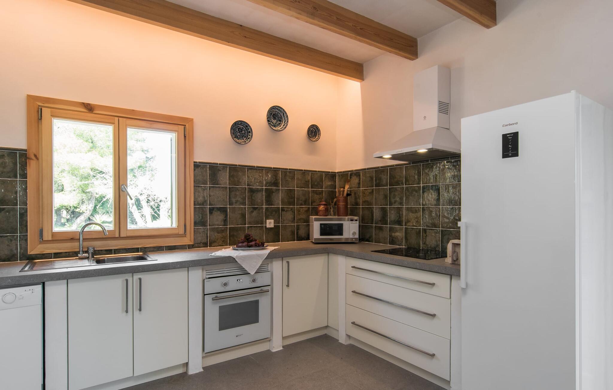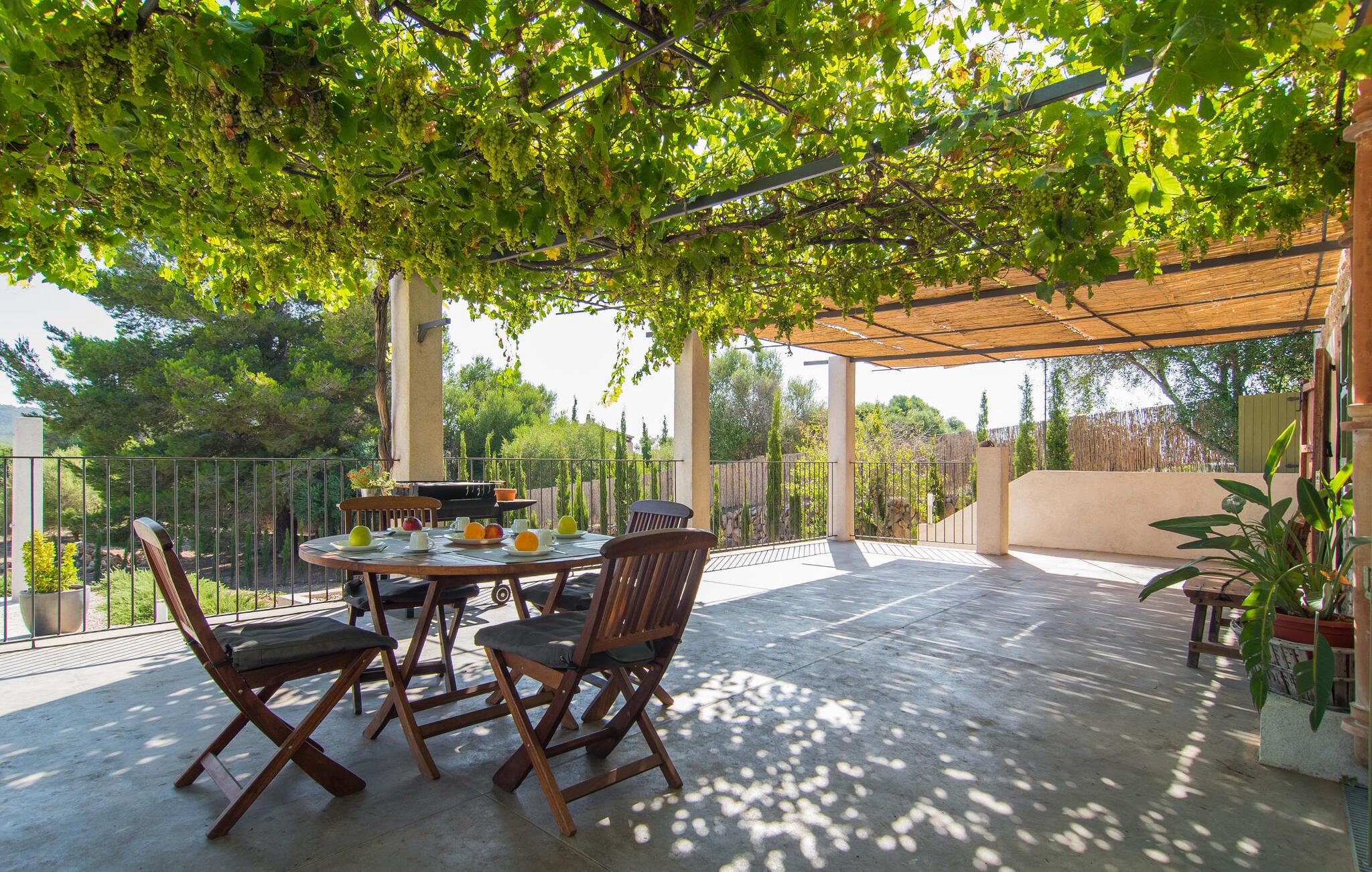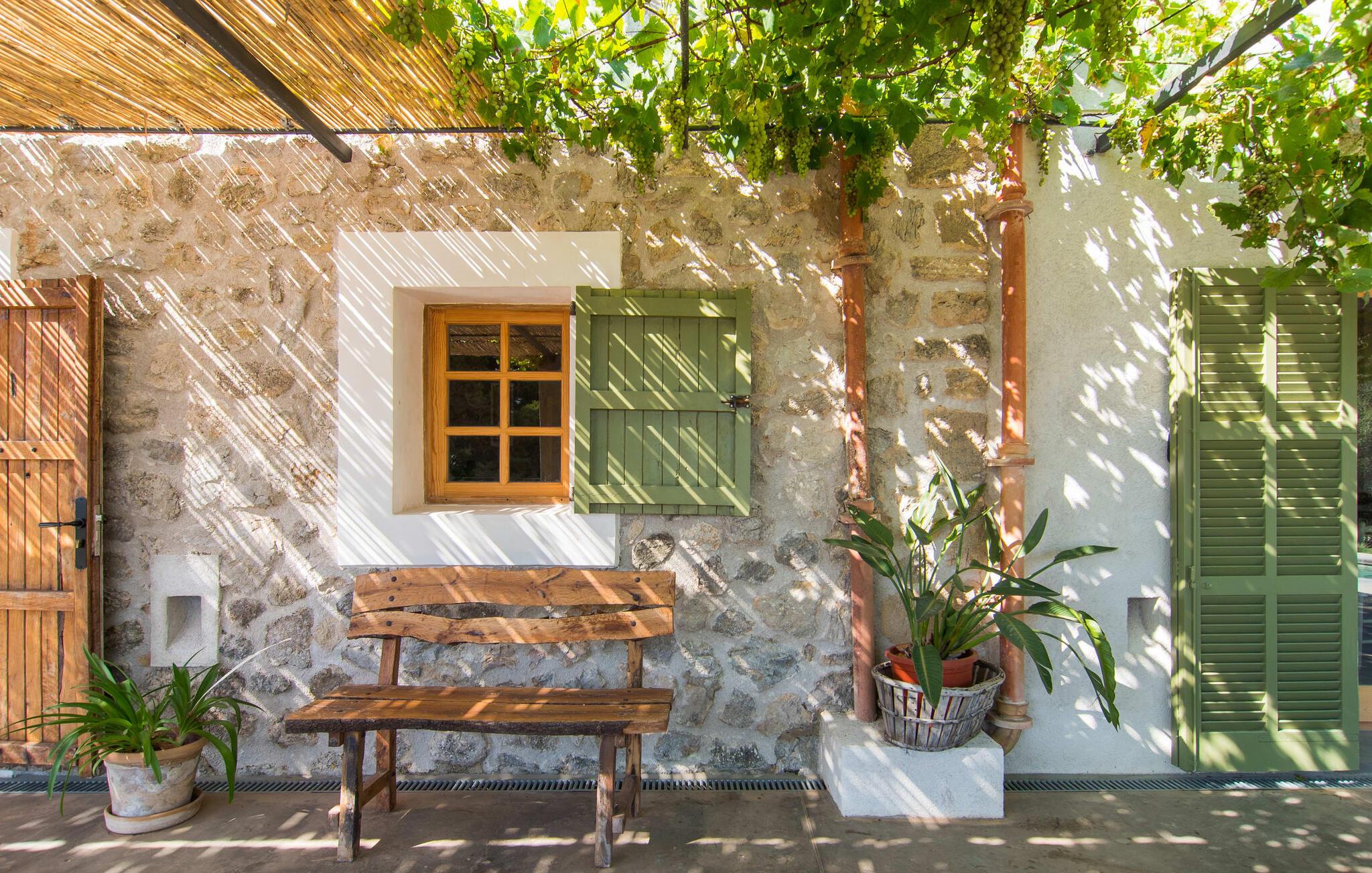 "Can Blai" byder på et rummeligt udendørsområde omgivet af frodige grønne områder, herunder majestætiske gamle træer, som giver de perfekte rammer for afslapning og kvalitetstid. Den charmerende terrasse, i skyggen af en vinstok, har et smukt spisebord, ideelt til morgenmad eller en eftermiddagskaffe med udsigt over poolen, let tilgængelig via en hjørnetrappe. Uanset om I nyder et glas vin på den rustikke bænk eller slapper af efter en tilfredsstillende dag, gør denne finca feriedrømme til virkelighed. Fincaen er stilfuld og rustik og kombinerer træ, smukke gulvfliser og smart belysning for at skabe en sand oase af velvære. Den rummelige stue/spisestue med hyggelig pejs og naturstensvægge byder på flere indbydende opholdssteder. Det fuldt udstyrede køkken med spisebord er perfekt til snacks eller en duftende kaffe. På øverste etage giver to komfortable soveværelser (det ene med enkeltsenge, det andet med en 1,5 m lang dobbeltseng) og to bruserum masser af privatliv og plads. Der er også et gæstetoilet i stueetagen. Nær kysten og i nærheden af indbydende byer som Canyamel, Artà og Cala Ratjada ligger fincaen "Ca'n Blai" i landlige omgivelser og er perfekt forbundet med infrastrukturen ad vej. Daglige indkøb, besøg på strand og caféer samt at gå ud om aftenen kan klares hurtigt og nemt herfra. Den fine sandstrand Canyamels ligger kun 4,6 km væk, og andre strande kan også nås hurtigt.