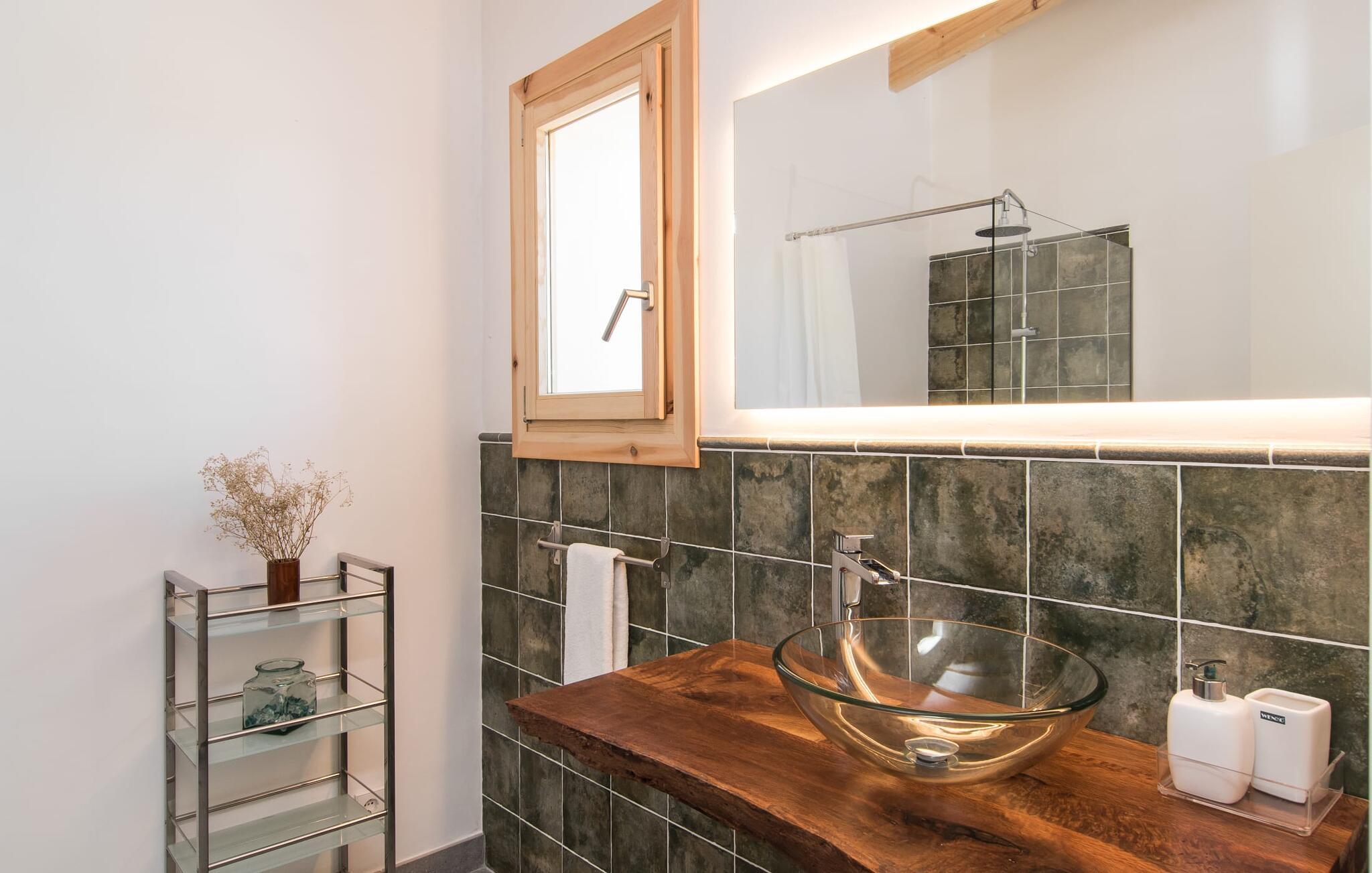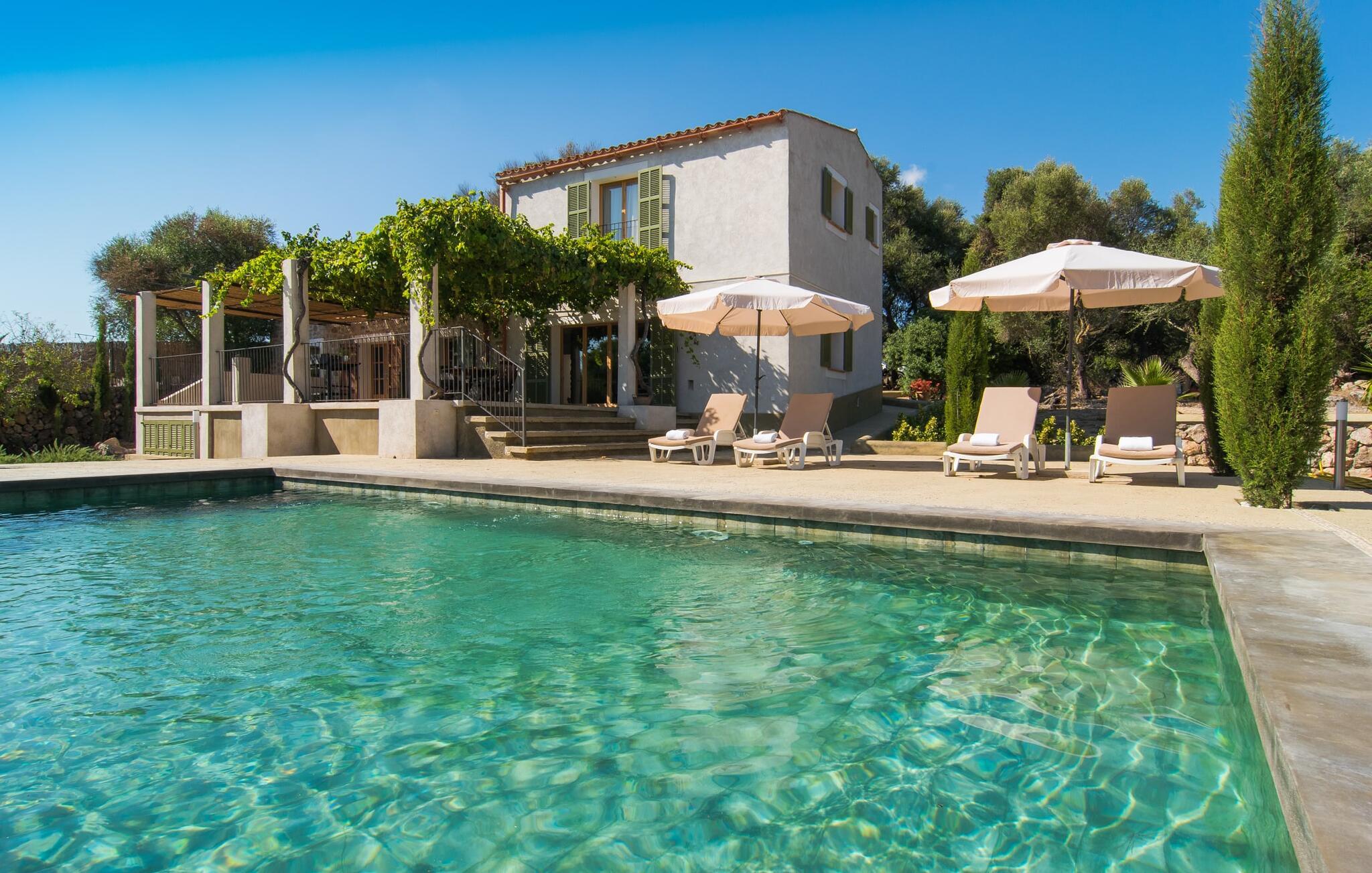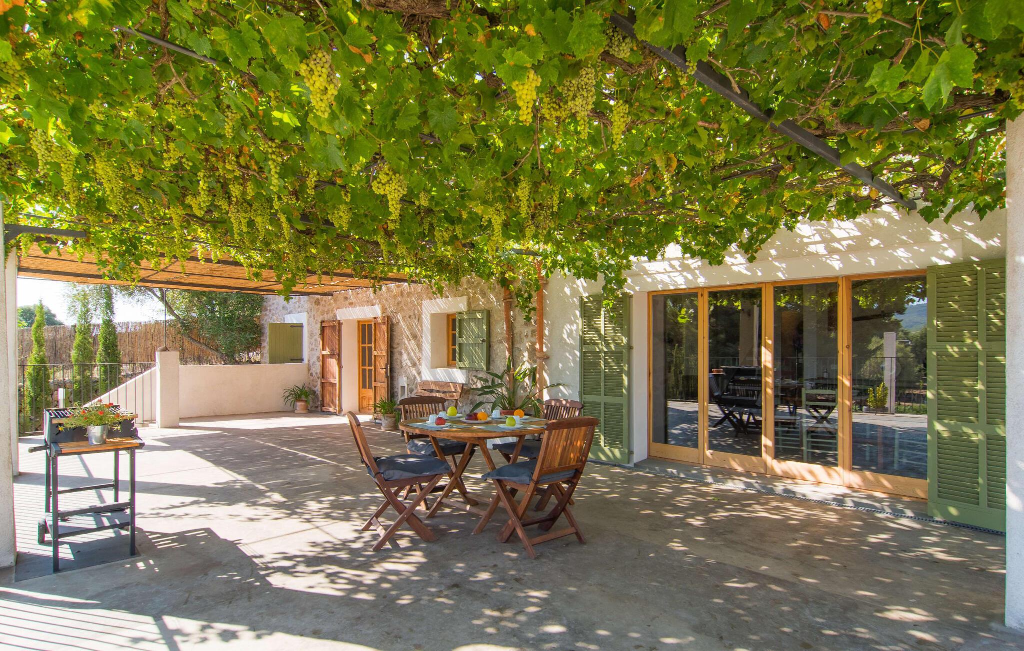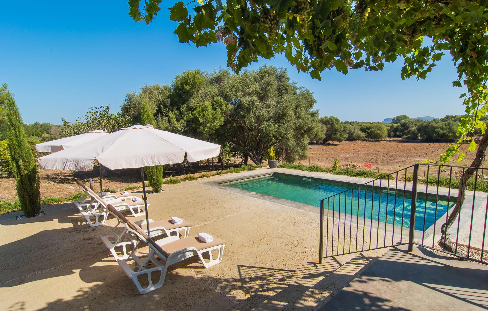 "Can Blai" byder på et rummeligt udendørsområde omgivet af frodige grønne områder, herunder majestætiske gamle træer, som giver de perfekte rammer for afslapning og kvalitetstid. Den charmerende terrasse, i skyggen af en vinstok, har et smukt spisebord, ideelt til morgenmad eller en eftermiddagskaffe med udsigt over poolen, let tilgængelig via en hjørnetrappe. Uanset om I nyder et glas vin på den rustikke bænk eller slapper af efter en tilfredsstillende dag, gør denne finca feriedrømme til virkelighed. Fincaen er stilfuld og rustik og kombinerer træ, smukke gulvfliser og smart belysning for at skabe en sand oase af velvære. Den rummelige stue/spisestue med hyggelig pejs og naturstensvægge byder på flere indbydende opholdssteder. Det fuldt udstyrede køkken med spisebord er perfekt til snacks eller en duftende kaffe. På øverste etage giver to komfortable soveværelser (det ene med enkeltsenge, det andet med en 1,5 m lang dobbeltseng) og to bruserum masser af privatliv og plads. Der er også et gæstetoilet i stueetagen. Nær kysten og i nærheden af indbydende byer som Canyamel, Artà og Cala Ratjada ligger fincaen "Ca'n Blai" i landlige omgivelser og er perfekt forbundet med infrastrukturen ad vej. Daglige indkøb, besøg på strand og caféer samt at gå ud om aftenen kan klares hurtigt og nemt herfra. Den fine sandstrand Canyamels ligger kun 4,6 km væk, og andre strande kan også nås hurtigt.