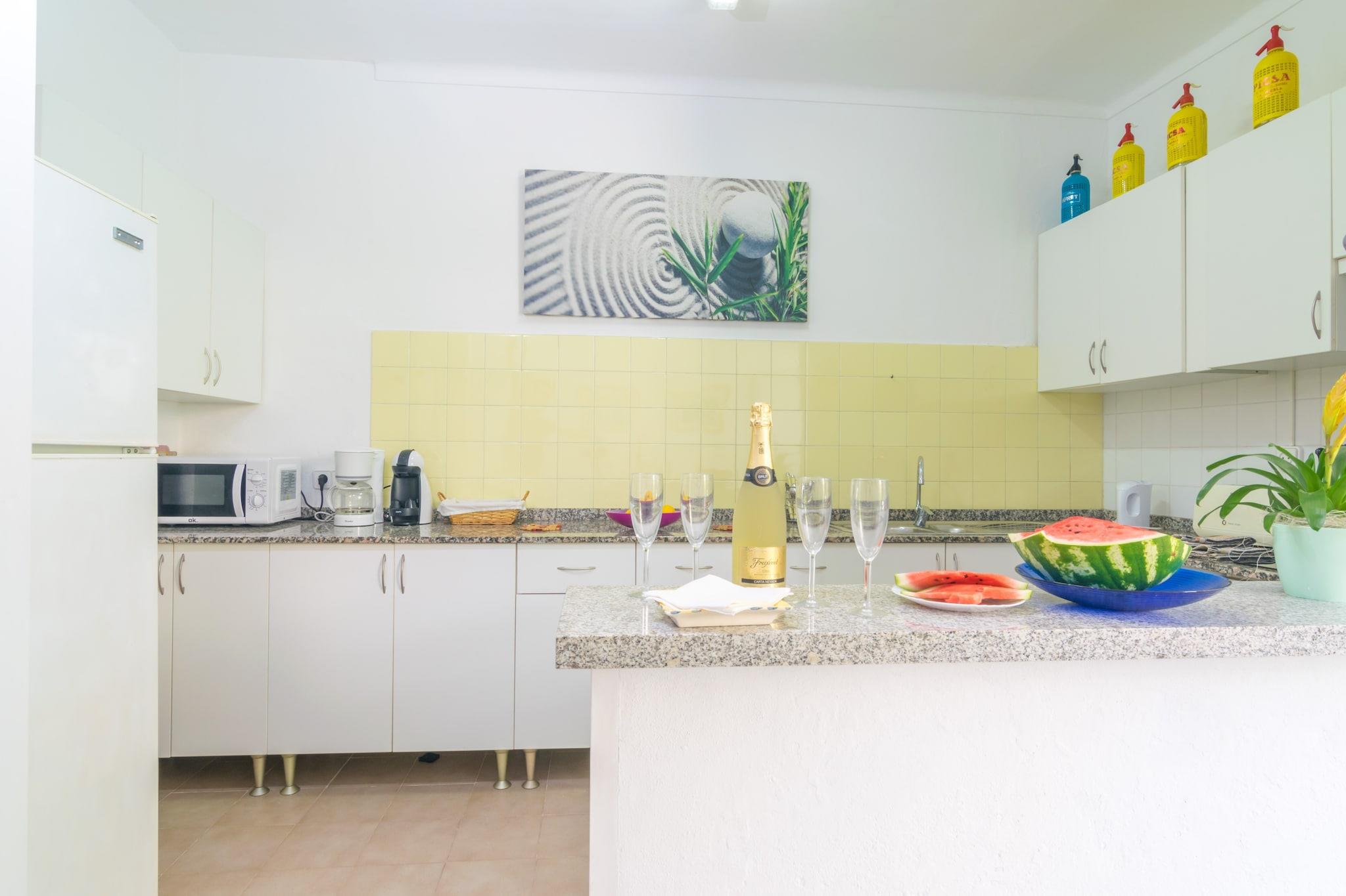 Denne indbydende lejlighed har tre lyse soveværelser og to moderne badeværelser, hvilket gør den ideel til familier eller venner, der rejser sammen. To værelser tilbyder dobbeltsenge, mens det tredje har to singler, hvilket sikrer fleksibilitet for forskellige grupper. Stuen inviterer dig til at sætte farten ned med en bog eller eftermiddagshvil, mens det fuldt udstyrede køkken - komplet med kaffemaskine, ovn, mikroovn og blender - gør madlavningen let. Der er også vaskemaskine, strygejern og strygebræt til længere ophold. To møblerede terrasser skaber de perfekte rammer for at nyde middelhavsklimaet, uanset om det er til udendørs spisning eller en afslappet aftengrill. Placeringen er et af dette hjems højdepunkter. Kun 100 meter fra Can Picaforts sandede kystlinje er stranden særlig sikker for børn takket være dens lave vand og blide bølger. Fra lejligheden kan du gå overalt - restauranter, caféer, butikker, apoteker, supermarkeder og endda det lokale busstoppested med hyppige ruter til Alcudia, Pollensa og Palma. Can Picafort tilbyder en bred vifte af spisemuligheder, fra frisk fisk og skaldyr og tapas til traditionelle mallorcanske retter og internationale favoritter. Strandpromenaden er også fyldt med isbutikker og afslappede barer til en aftenforkælelse. Ud over byen kan du udforske Playa de Muro, Formentor og de historiske gader i Alcudia med dens romerske ruiner og livlige markeder.