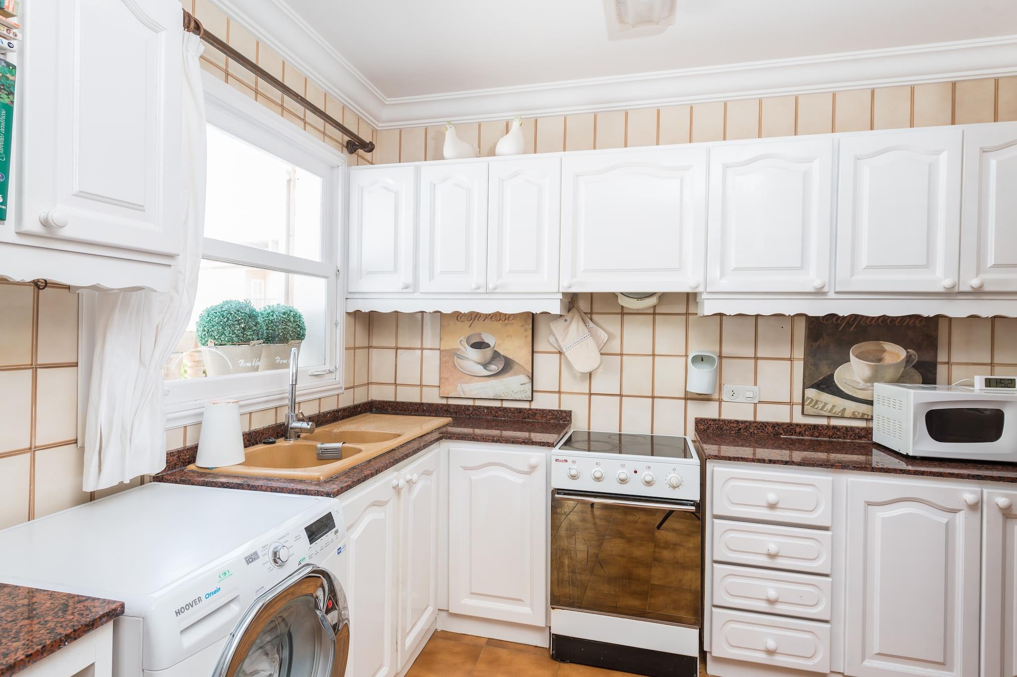 De buitenkant van deze accommodatie is zeer ruim en divers. Afkoelen kan in het heerlijke chloorbad, met een afmeting van 7 x 2 meter en een minimale diepte van 1,60 en maximaal 1,80 meter. Op de twee terrassen kunt u gezellige avonden doorbrengen en genieten van heerlijke barbecues. De veranda is ideaal om rustig een boek te lezen en in de tuin vindt u een ruimte om te zonnebaden in de mediterrane zon. Het huis is verdeeld in twee verdiepingen: begane grond en verdieping -1, hoewel u alleen toegang heeft tot de begane grond waar alle kamers aanwezig zijn die nodig zijn voor een comfortabele vakantie. De ruime woon-eetkamer heeft twee banken en een tafel met stoelen. De vitrokeuken-eetkamer heeft alles wat u nodig heeft. De aparte wasruimte bestaat uit een wasmachine, strijkijzer en strijkplank. Wat de slaapkamers betreft, er zijn er 3 met elk een tweepersoonsbed en één met een eenpersoonsbed. Er zijn twee badkamers met douche die de gehele accommodatie bedienen. Het huis is voorzien van airconditioning met een airconditioner in de gang en een andere in de keuken; Het heeft ook twee open haarden en 3 elektrische radiatoren. Als u met een baby reist, voorzien wij u van een wieg en een kinderstoel. Can Picafort is een kustplaats waar u alle diensten vindt die u nodig heeft tijdens uw vakantie. U vindt twee stranden met fijn zand; Vanaf een daarvan kunt u een wandelexcursie maken naar Son Real of, als u durft, naar Son Serra gaan met een van de beste stranden in de omgeving. Er is ook een breed scala aan watersporten, zoals windsurfen, surfen, duiken, paddle-surfen en vele andere. Voor eventuele extra kosten kunt u contact opnemen met de adverteerder. Wij accepteren geen huisdieren. Het vieren van evenementen is niet toegestaan. Afstanden Strand: 0,4 km - Can Picafort Luchthaven: 63 km - Aeroport Son Sant Joan Golfbaan: 16 km - Golf Alcanada Stad: 0,1 km - Can Picafort Treinstation: 14 km - Sa Pobla Bushalte: 0,2 km - Pg. Mallorca, Can Picafort Veerboot: 8 km - Port d'Alcúdia Ziekenhuis: 4 km - Juaneda Muro ziekenhuis Toeristenvergunning: ETV/7090 Op de Balearen geldt een toeristenbelasting, Ecotasa genaamd, die door de gast moet worden betaald. Het bedrag varieert tussen EURO 0,55 / per nacht per persoon in het laagseizoen en EURO 2,2 / per nacht per persoon in het hoogseizoen. Vanaf de negende dag wordt het met de helft verminderd. Personen onder de 16 jaar uitgesloten.