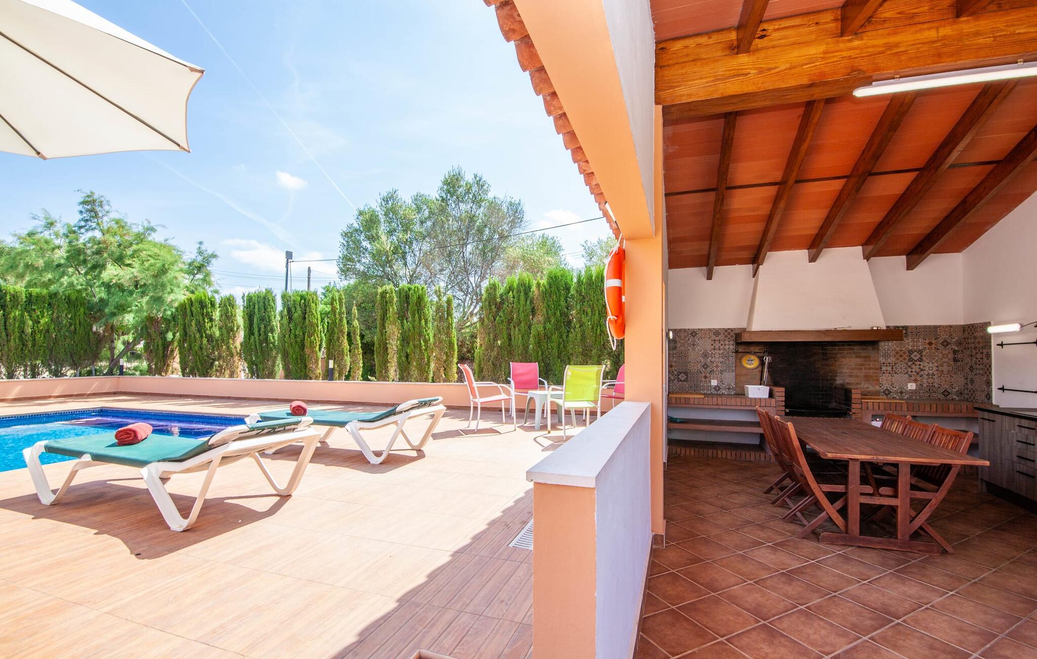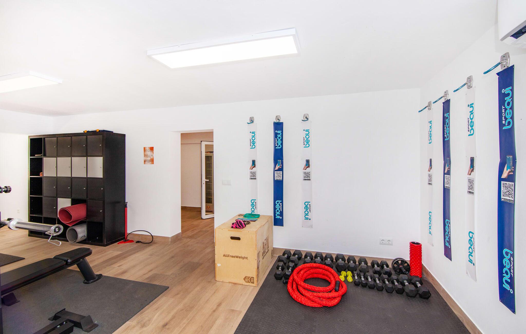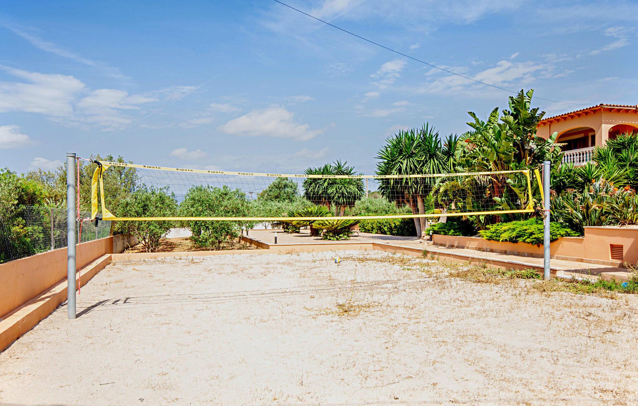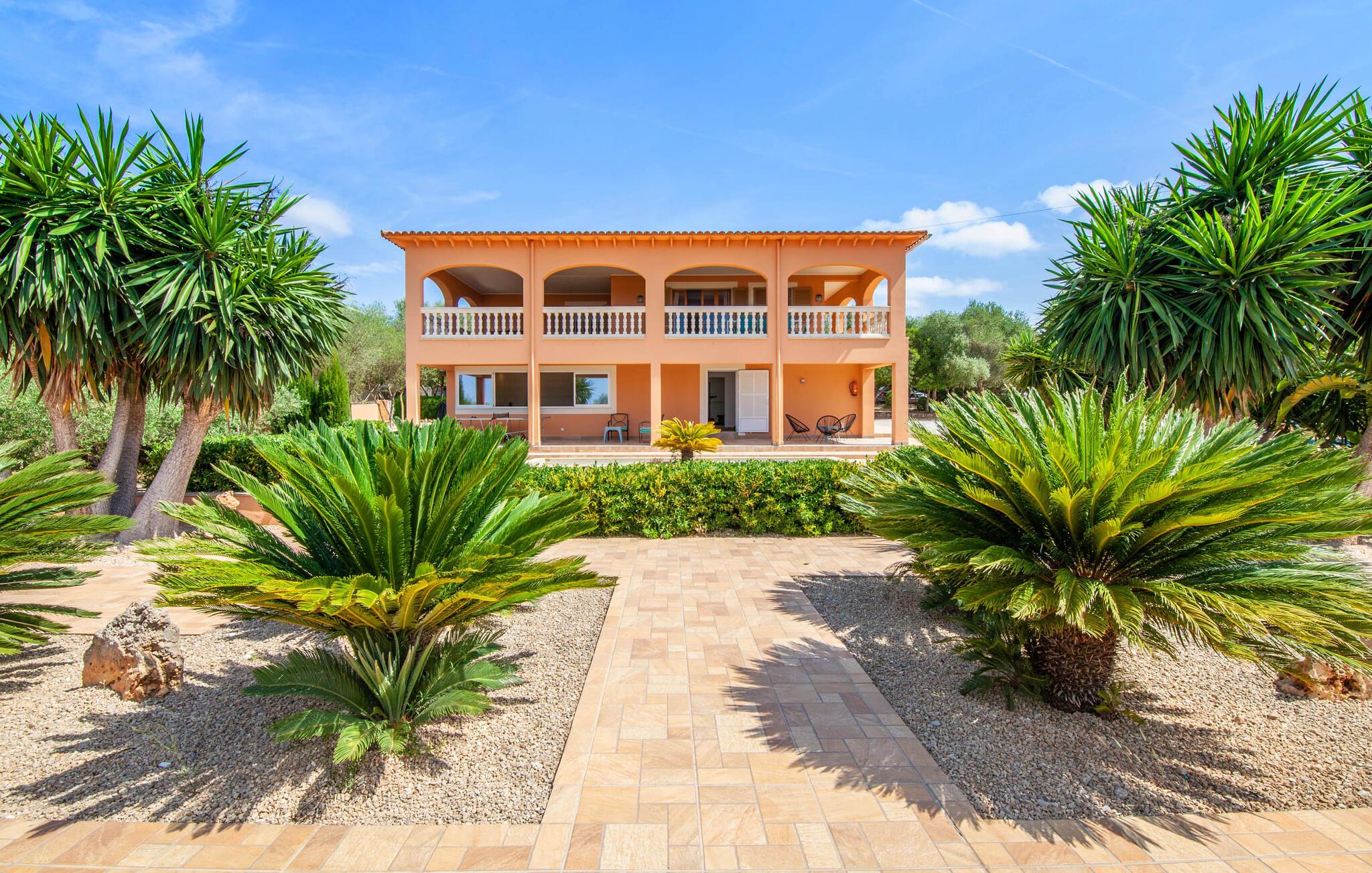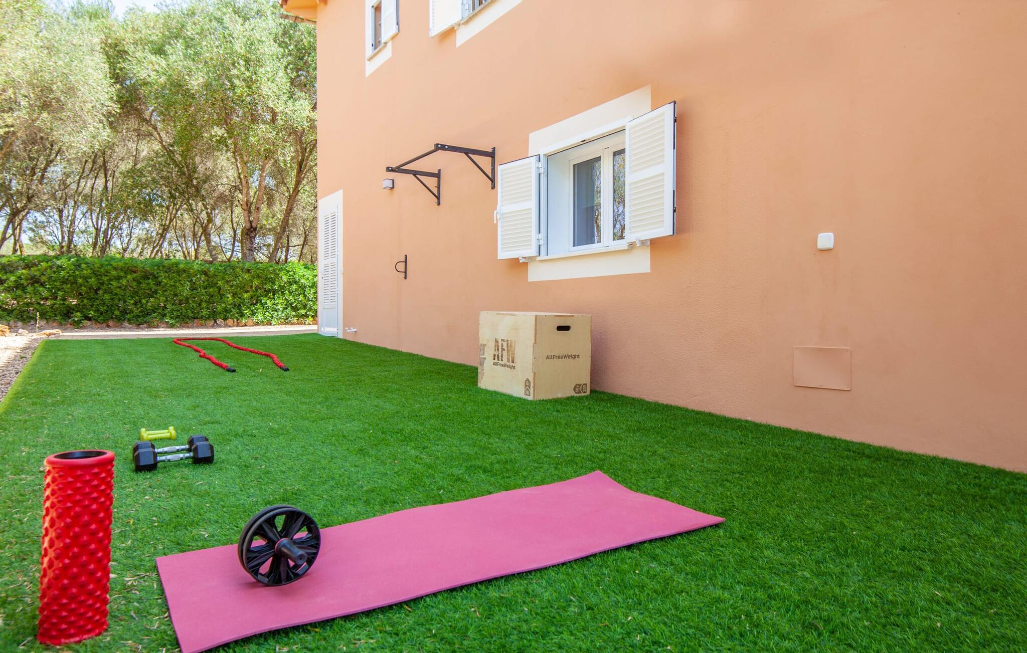 Denne finca, "Ca'n Roser", omgivet af olivenlunde og kun få skridt fra landsbyen, tilbyder et privat og roligt tilflugtssted. Det rummelige, velholdte udendørsareal er beklædt med palmer og skaber en indbydende atmosfære til udeliv. En pool med en stilfuld solterrasse tilbyder det perfekte sted at slappe af med komfortable liggestole. Rummelige, møblerede terrasser, hvoraf mange er overdækkede, tilbyder masser af plads til at slappe af, mens det alsidige udekøkken gør udendørslivet til en leg. Aktive gæster vil sætte pris på de mange forskellige aktiviteter, herunder det udendørs CrossFit-område. Fincaen har også et cykelværksted og er ideelt beliggende nær cykelstier. Indenfor fortsætter de rummelige opholdsområder temaet åbenhed og tilbyder masser af plads til, at større grupper kan slappe af i komfort. Indretningen er afslappet og indbydende, uden en fast stil, hvilket skaber en afslappet atmosfære. Det nederste niveau er totalrenoveret og har et sports- og wellnessområde med sauna, spabad og fitnessrum. Et soveværelse og et badeværelse er også på dette niveau. På øverste etage er der yderligere tre soveværelser og to badeværelser samt en stue/spisestue og et fuldt udstyret køkken. Den charmerende, abrikosfarvede finca ligger kun 9 km sydvest for den maleriske by Santa Maria, i hjertet af Mallorca. Den nærliggende vej forbinder jer nemt med populære destinationer og fremragende faciliteter. Palma, kun 14 km væk, byder på gode shoppingmuligheder, mens de smukke strande langs sydkysten, herunder Passeig de Molinar (13 km) eller Cuidad Jardin (10 km), tilbyder det perfekte sted for en afslappende dag ved havet.