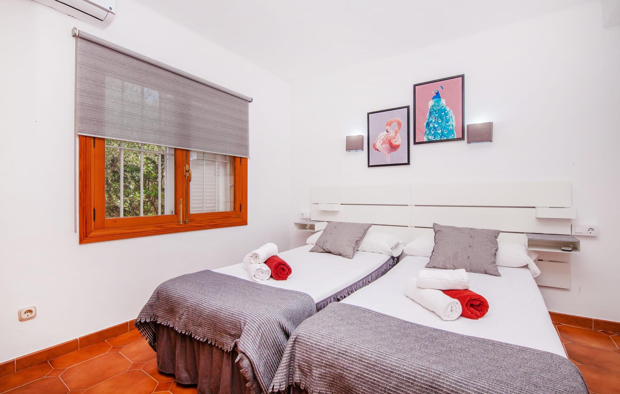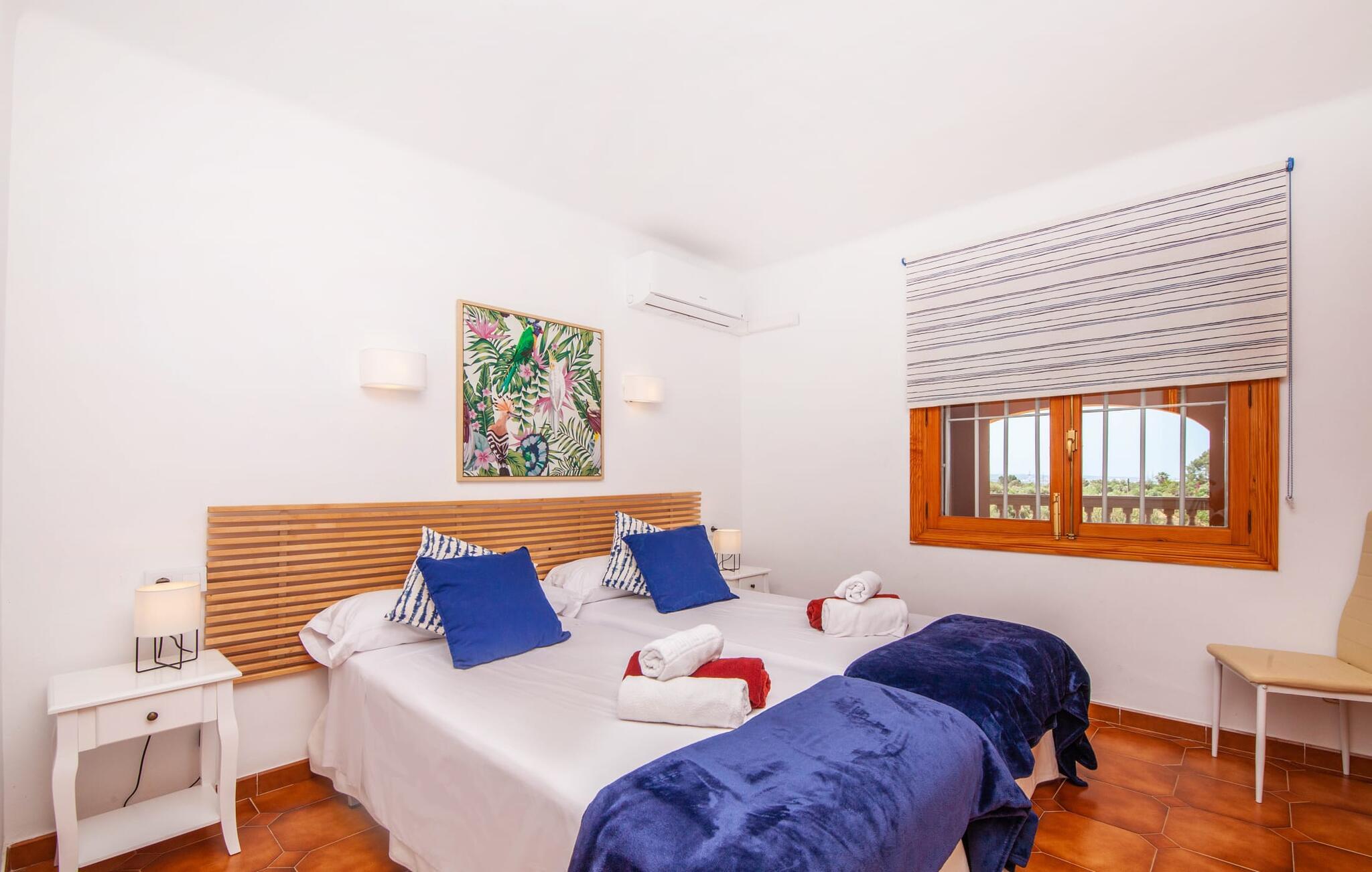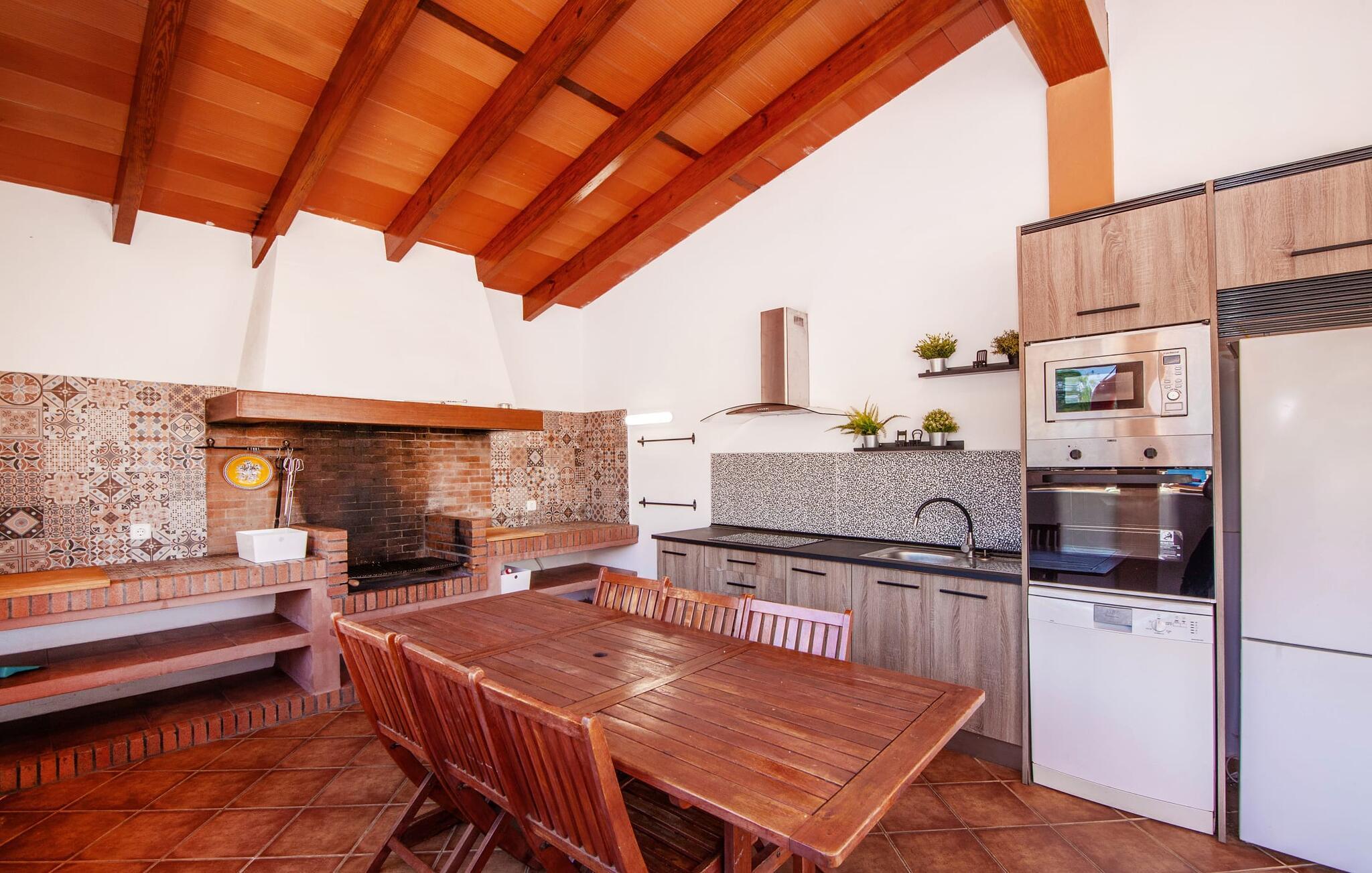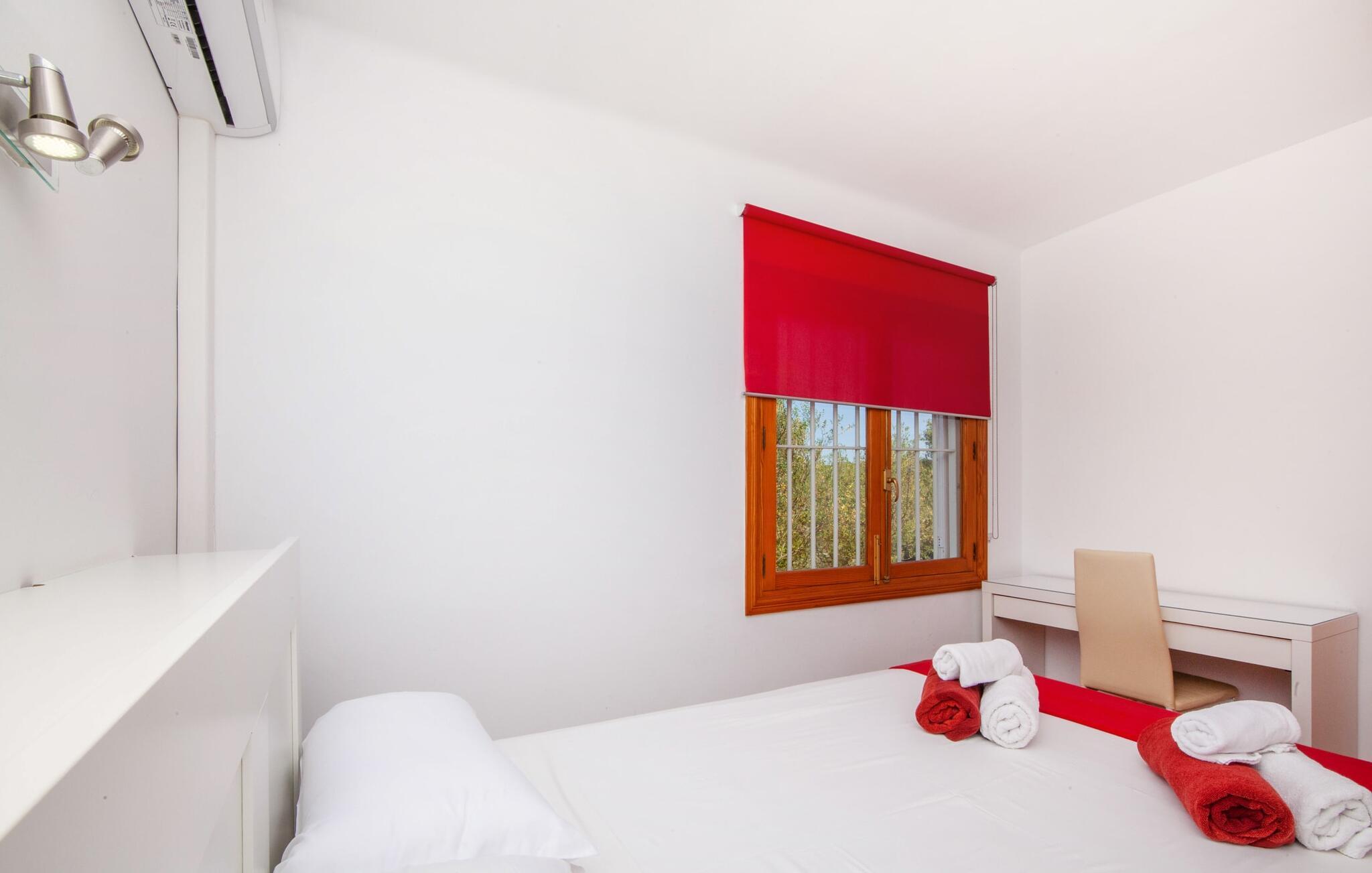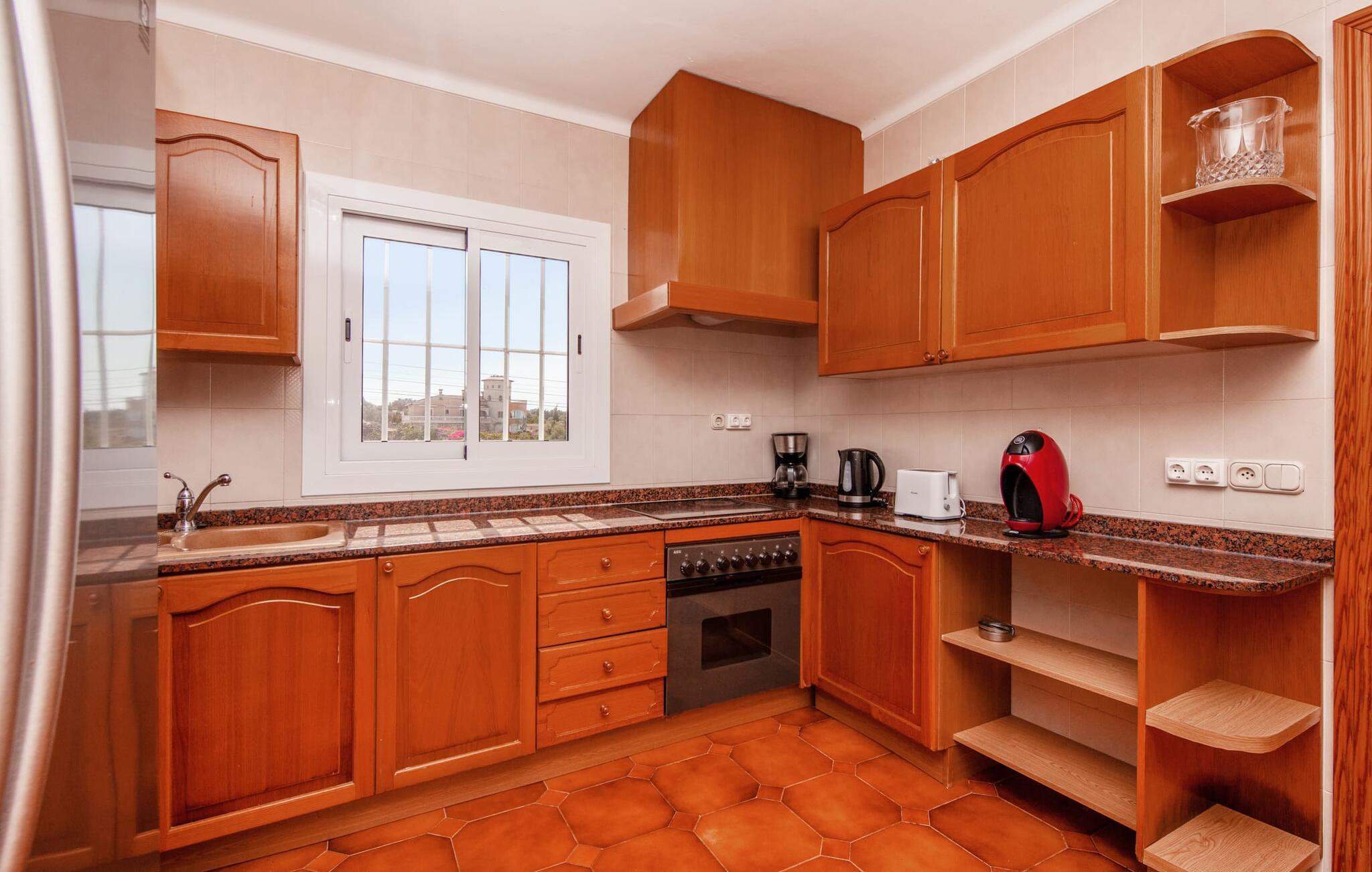 Denne finca, "Ca'n Roser", omgivet af olivenlunde og kun få skridt fra landsbyen, tilbyder et privat og roligt tilflugtssted. Det rummelige, velholdte udendørsareal er beklædt med palmer og skaber en indbydende atmosfære til udeliv. En pool med en stilfuld solterrasse tilbyder det perfekte sted at slappe af med komfortable liggestole. Rummelige, møblerede terrasser, hvoraf mange er overdækkede, tilbyder masser af plads til at slappe af, mens det alsidige udekøkken gør udendørslivet til en leg. Aktive gæster vil sætte pris på de mange forskellige aktiviteter, herunder det udendørs CrossFit-område. Fincaen har også et cykelværksted og er ideelt beliggende nær cykelstier. Indenfor fortsætter de rummelige opholdsområder temaet åbenhed og tilbyder masser af plads til, at større grupper kan slappe af i komfort. Indretningen er afslappet og indbydende, uden en fast stil, hvilket skaber en afslappet atmosfære. Det nederste niveau er totalrenoveret og har et sports- og wellnessområde med sauna, spabad og fitnessrum. Et soveværelse og et badeværelse er også på dette niveau. På øverste etage er der yderligere tre soveværelser og to badeværelser samt en stue/spisestue og et fuldt udstyret køkken. Den charmerende, abrikosfarvede finca ligger kun 9 km sydvest for den maleriske by Santa Maria, i hjertet af Mallorca. Den nærliggende vej forbinder jer nemt med populære destinationer og fremragende faciliteter. Palma, kun 14 km væk, byder på gode shoppingmuligheder, mens de smukke strande langs sydkysten, herunder Passeig de Molinar (13 km) eller Cuidad Jardin (10 km), tilbyder det perfekte sted for en afslappende dag ved havet.