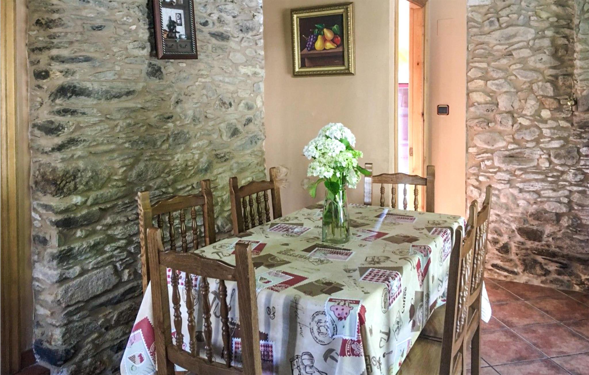 Nyd en behagelig og afslappende ferie med familien i dette autentiske stenhus med moderne standarder og kvalitet. I huset finder I alt, hvad I skal bruge for at tilbringe en behagelig og ubekymret familieferie. Lav mad sammen i køkkenet, spil kort ved spisebordet eller se en film i sofaen om aftenen. I kan nyde dagens måltider udendørs under verandaen og nyde udsigten over det grønne landskab og den store have.