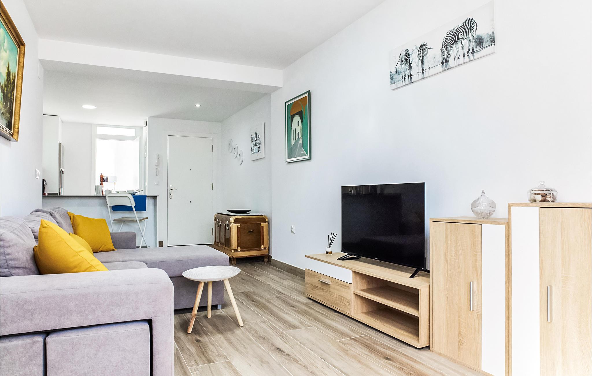 Velkommen til denne skønne ferielejlighed, som tager imod jer med klare, lyse farver. Her kan I får I en god base til at slappe af og blive klar til flere oplevelser.