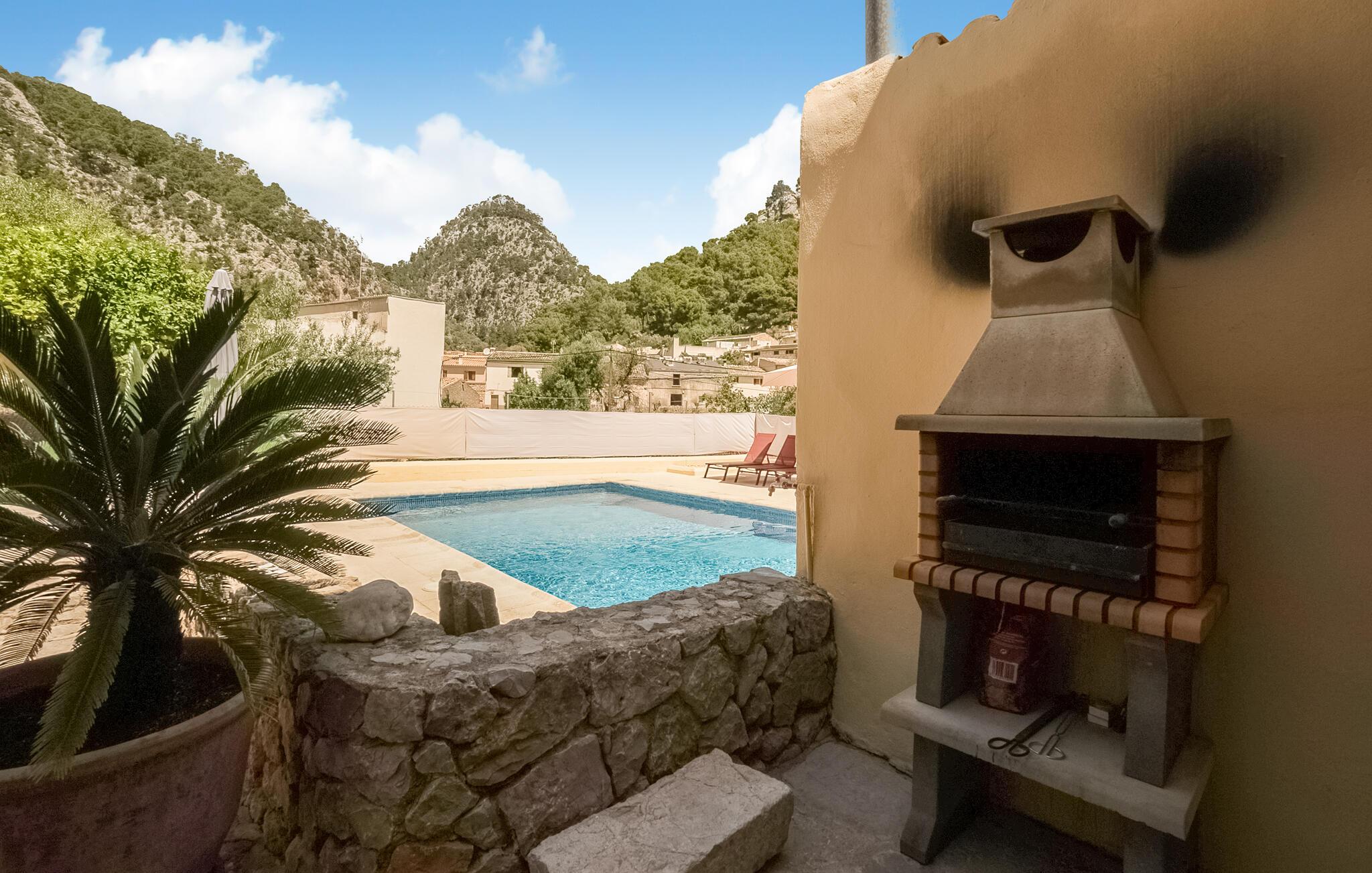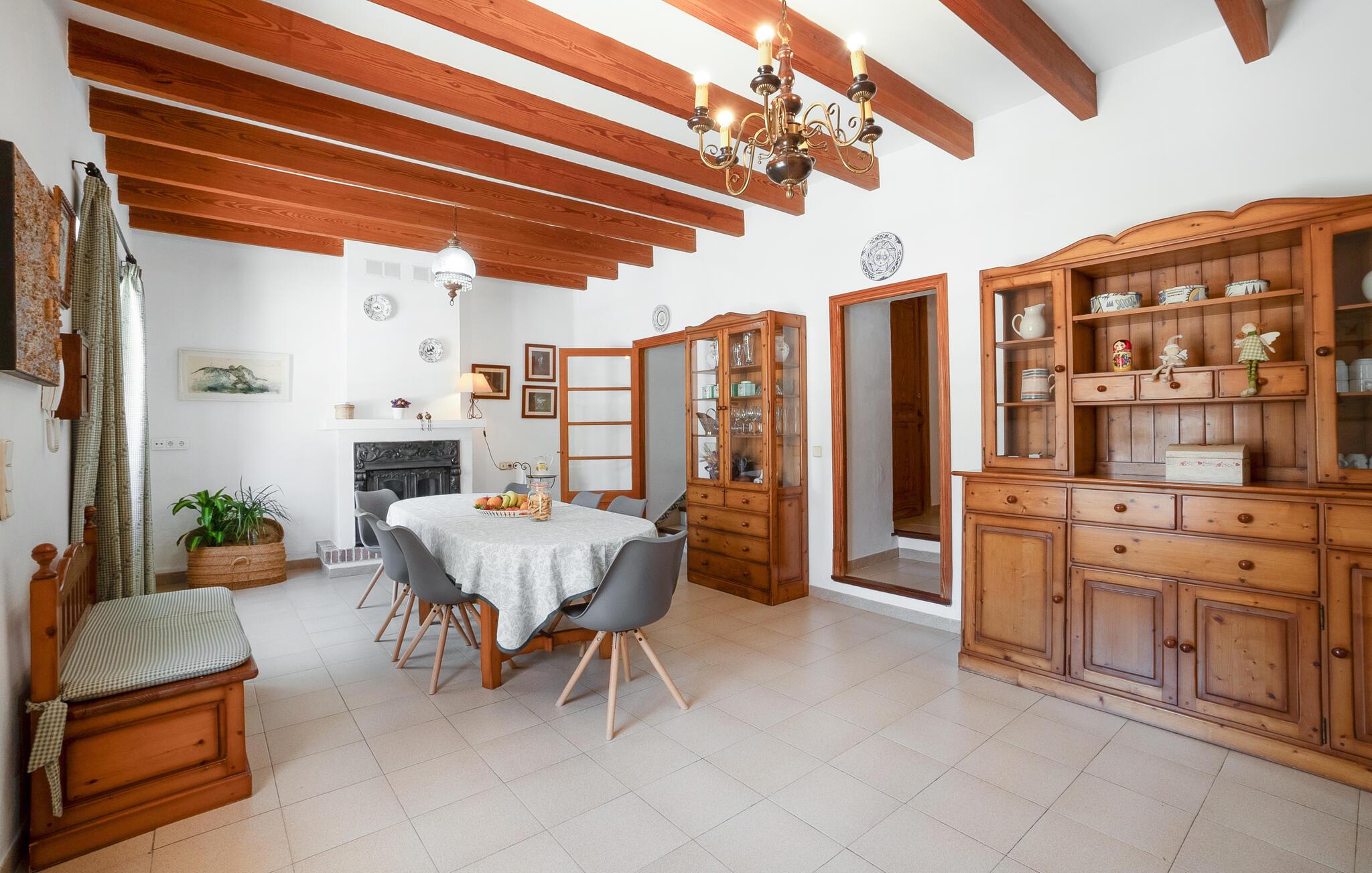 Velkommen til dette dejlige hus, der ligger virkelig smukt ved foden af ??Tramuntana-bjergene, og hvorfra I kan nyde en smuk udsigt over bjergene. Interiøret fremtræder komfortabelt, rustikt og charmerende med alle de faciliteter, I behøver for at kunne lade skuldrene falde og bare slappe af med det samme, I ankommer. lad en herlig feriedag gå på hæld med et lækkert måltid mad, inden I hiver brætspillene frem eller flader ud i sofaerne med snacks og en god film til sent.