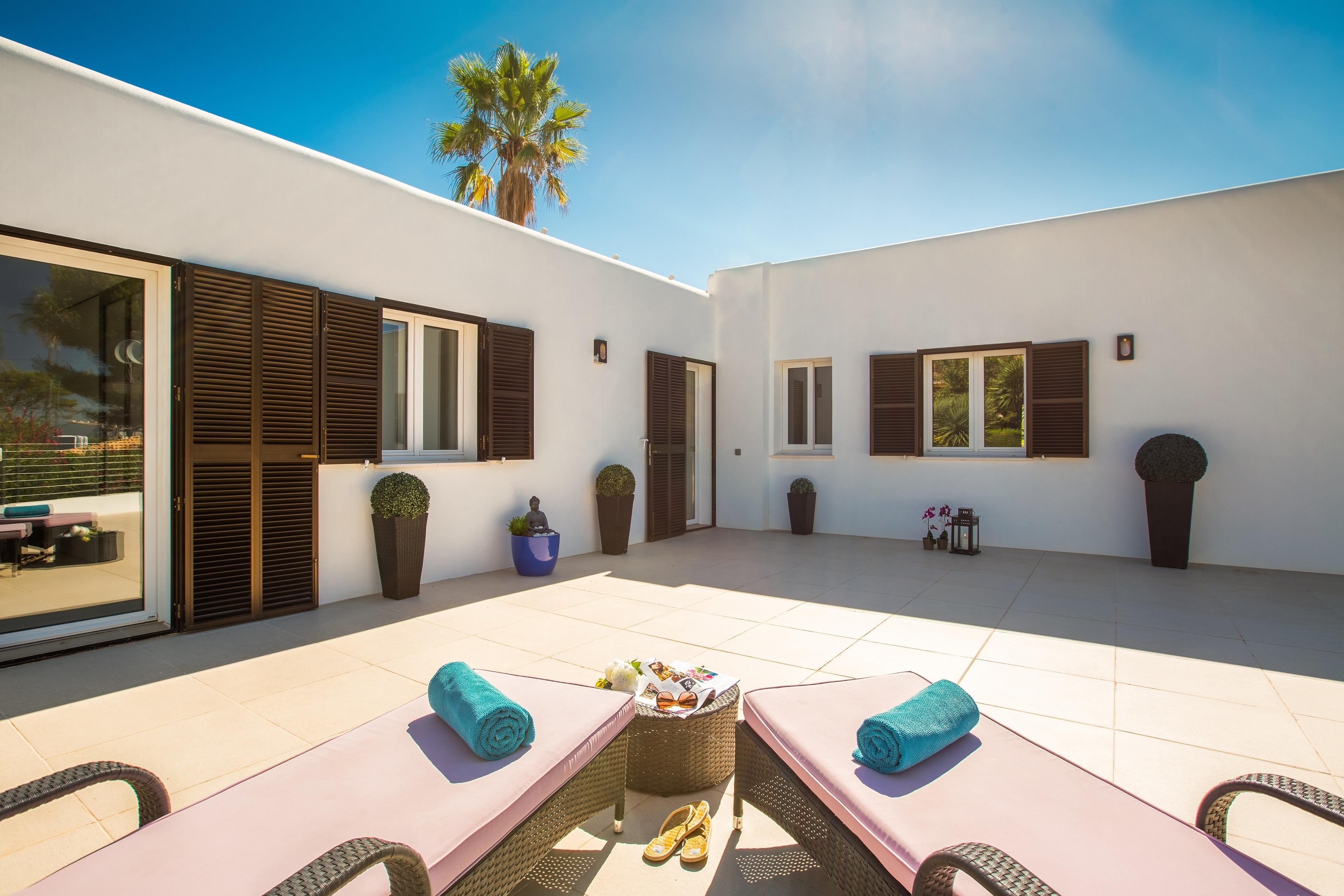 Die Casa Pura ist in der friedlich-noblen Siedlung Cala Blava direkt über dem Meer gelegen und der ideale Ort für bis zu 6 Personen, um einen unbeschwerten Urlaub zu verbringen. Es warten auf Sie 160qm Wohnfläche und 200qm Terrasse mit mehreren Schattenplätzen. Umgeben ist das Ferienhaus von einem gepflegten Garten mit Palmen, Zitronen-, Orangen- und Olivenbäumen und vielen blühenden Sträuchern.