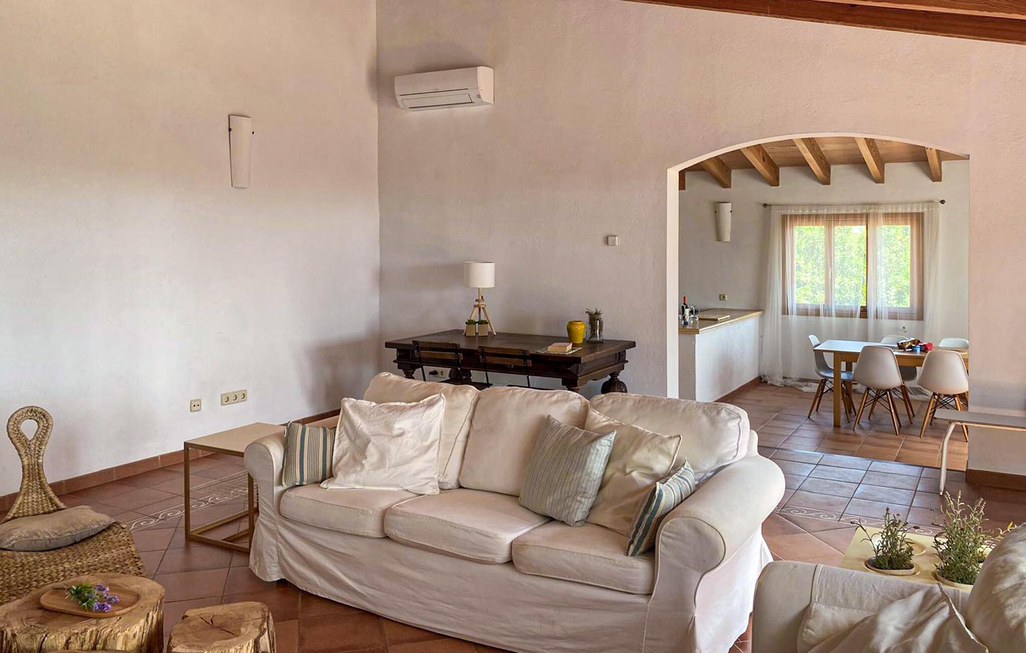 Denne rummelige mallorcanske finca lover idylliske og afslappende dage på Mallorcas fortryllende østkyst. Her bliver den hektiske hverdag hurtigt et fjernt minde. Glæd jer til hyggelige måltider ved spisebordet, hyggelige spilleaftener på de rummelige sofaer og afslappende siestaer, mens den lette brise blæser gennem de rummelige værelser.