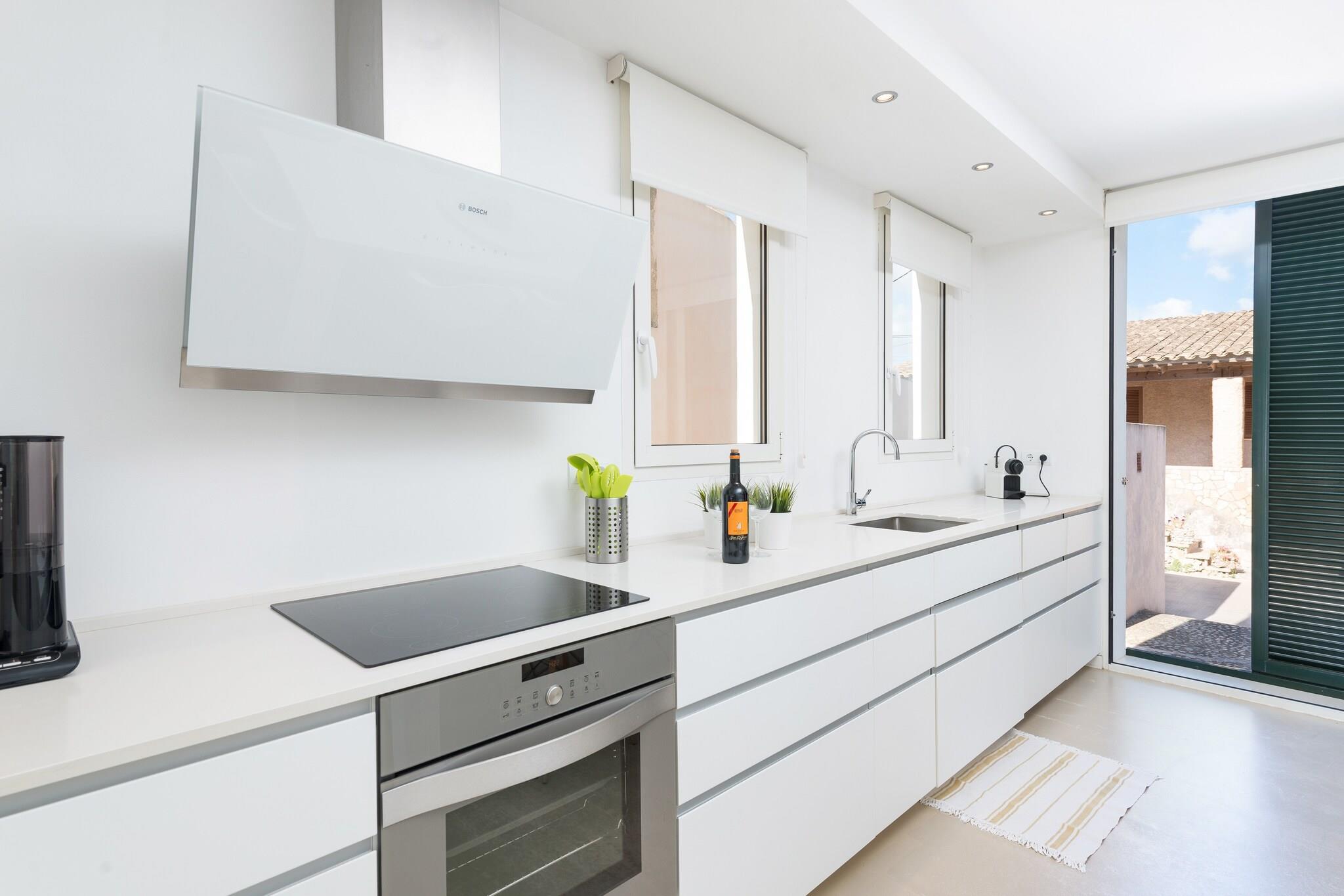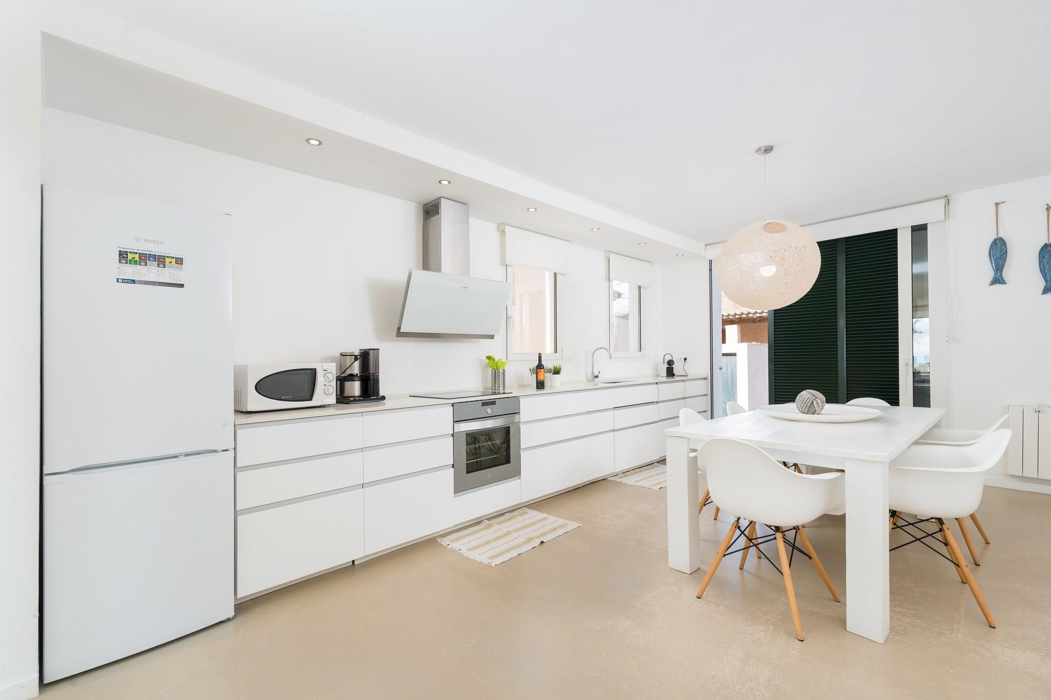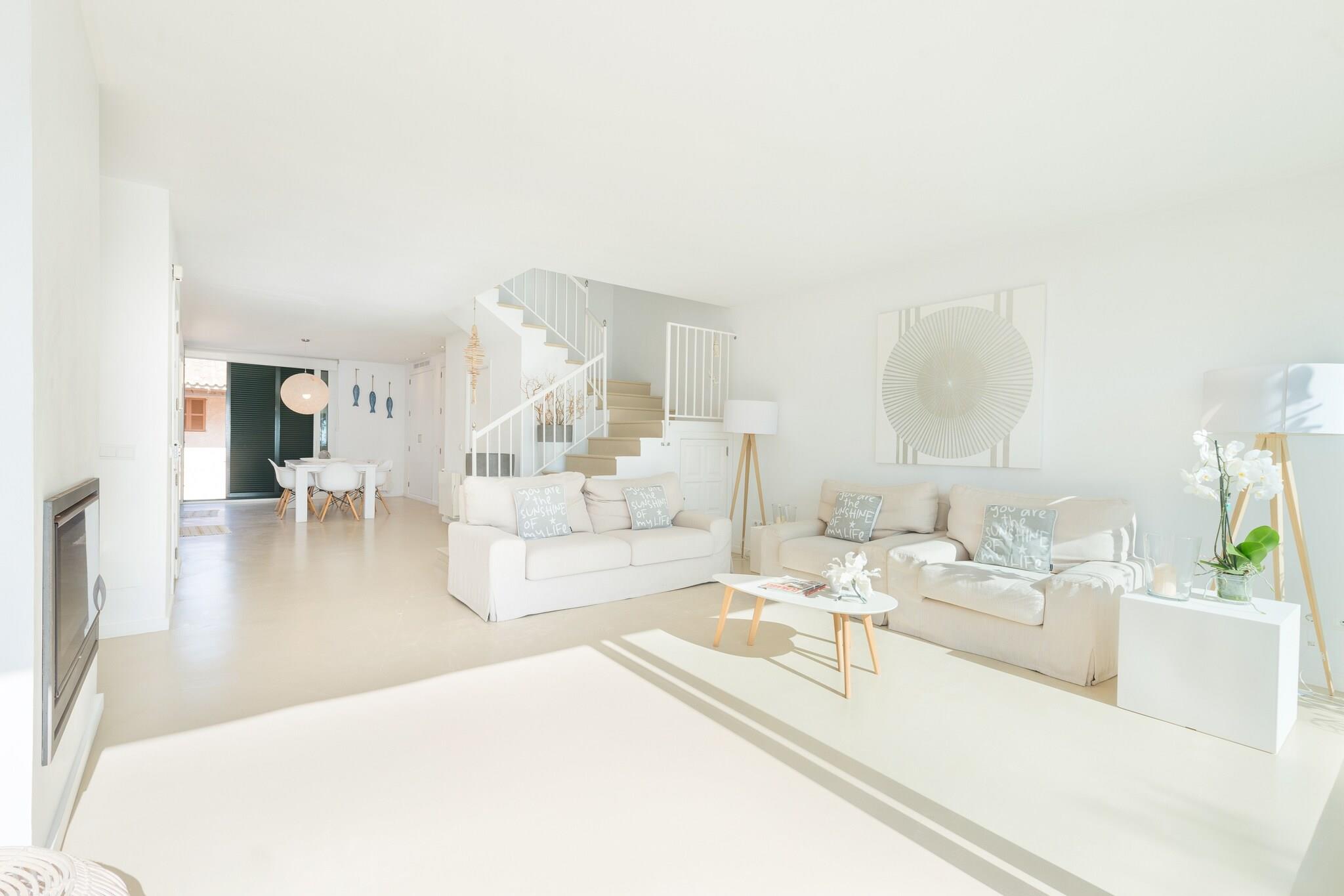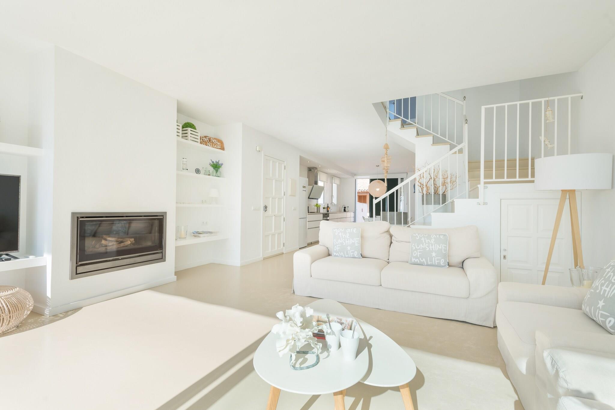 Seaside Ro Vågn op til den blide lyd af bølger i dette moderne rækkehus kun få skridt fra Ses Barreres-stranden. Den forreste terrasse er ideel til morgenmad, frokost eller middag, mens du nyder uhindret havudsigt. Med naboer i nærheden skaber beliggenheden en fredelig balance mellem privatliv og fællesskab, og tilbyder det perfekte kysttilflugtssted for familier eller små grupper. Komfortabelt interiør Indvendigt har opholds- og spisestuen i åbent plan et TV-SAT og et fuldt udstyret køkken med keramisk kogeplade. Vaskehjørnet inkluderer en vaskemaskine, tørretumbler, strygejern og strygebræt. Denne etage har et gæstetoilet, mens et brusebadeværelse ovenpå serverer tre soveværelser, hver med to enkeltsenge, garderobeskabe og balkoner. Yderligere faciliteter inkluderer en barneseng, høj stol og radiatorer for at holde rummet hyggeligt under hele dit ophold. Førsteklasses beliggenhed og spisning Cala Bona, en del af Son Servera, er en fredfyldt destination for strand- og havelskere. Havnepromenaden byder på et udvalg af barer, restauranter og caféer, alle inden for gåafstand. Supermarkeder og væsentlige tjenester er bekvemt tæt på. Golfentusiaster kan nå Son Servera Golfbane på kun 1,7 km. Byen forbinder nemt til Manacor (tog) og Son Sant Joan Lufthavn (66 km). Kæledyr er ikke tilladt, og arrangementer er forbudt, hvilket sikrer et roligt og familievenligt ophold.