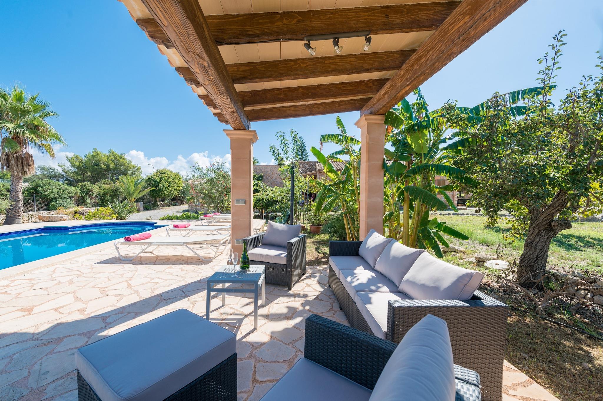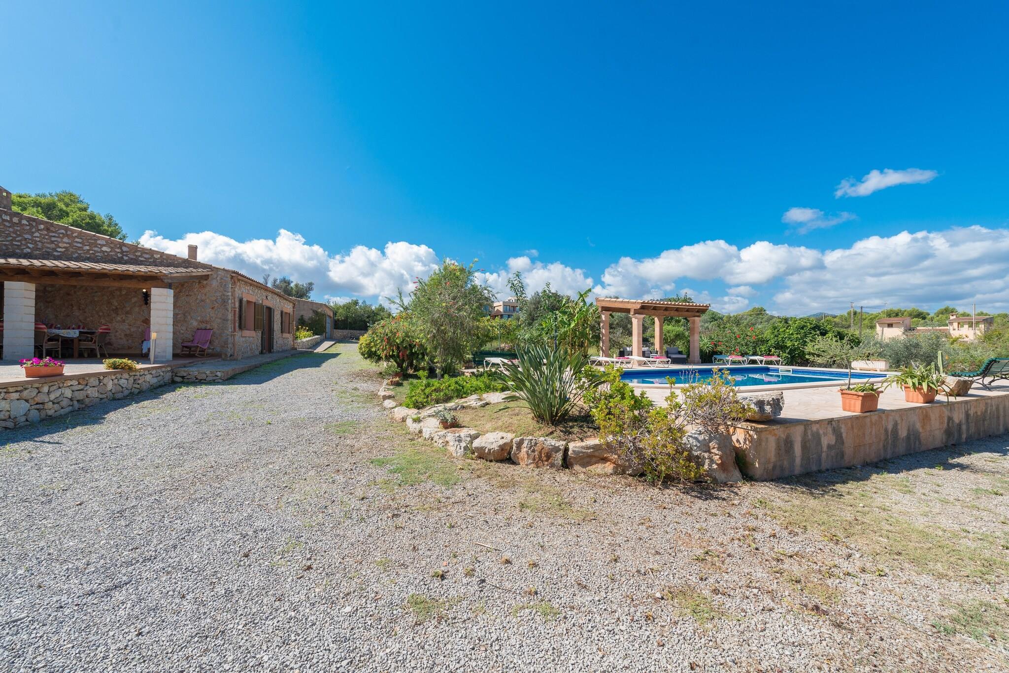 Ydersiden af dette charmerende landsted tilbyder et fredeligt tilflugtssted med en stor privat saltvandspool (10 x 5 m, 1 til 1,8 m dyb) med en fantastisk udsigt over markerne og bjergene. Rundt om poolen inviterer seks liggestole til at slappe af, mens en hyggelig veranda med sofaer er et perfekt sted for en kop kaffe eller et glas vin. Et andet verandaområde er perfekt til at organisere hyggelige udendørs aftener. En tredje veranda fører til det indre af huset. Indenfor finder du et værelse indrettet i traditionel mallorcansk stil, der kombinerer stue og køkken. Køkkenet er udstyret med en keramisk kogeplade, mens opholdsområdet byder på satellit-tv til afslapning. Den rustikke spisestue har plads til seks gæster. Vaskerummet indeholder en vaskemaskine, tørretumbler, strygejern og strygebræt. Der er tre soveværelser, alle med garderobeskabe, en ventilator til vinteren. Et soveværelse har en dobbeltseng andre to har to enkeltsenge, hvoraf den ene har en-suite brusebadeværelse. Et andet badeværelse med badekar betjener huset. En barneseng og høj stol er til rådighed for babyer. Huset ligger i rolige landlige omgivelser, kun 850 meter fra Ses Barreres-stranden og 1,6 km fra Cala Bona, hvor du finder restauranter, barer, supermarkeder og meget mere. Son Servera Golfbane ligger også kun 1,9 km væk. Turistlicens: ETV/118 Kæledyr og arrangementer er ikke tilladt. Der er udvendig parkering til 3 biler. Som reaktion på Coronavirus (COVID-19) er yderligere sikkerheds- og sanitære foranstaltninger i kraft på denne ejendom.