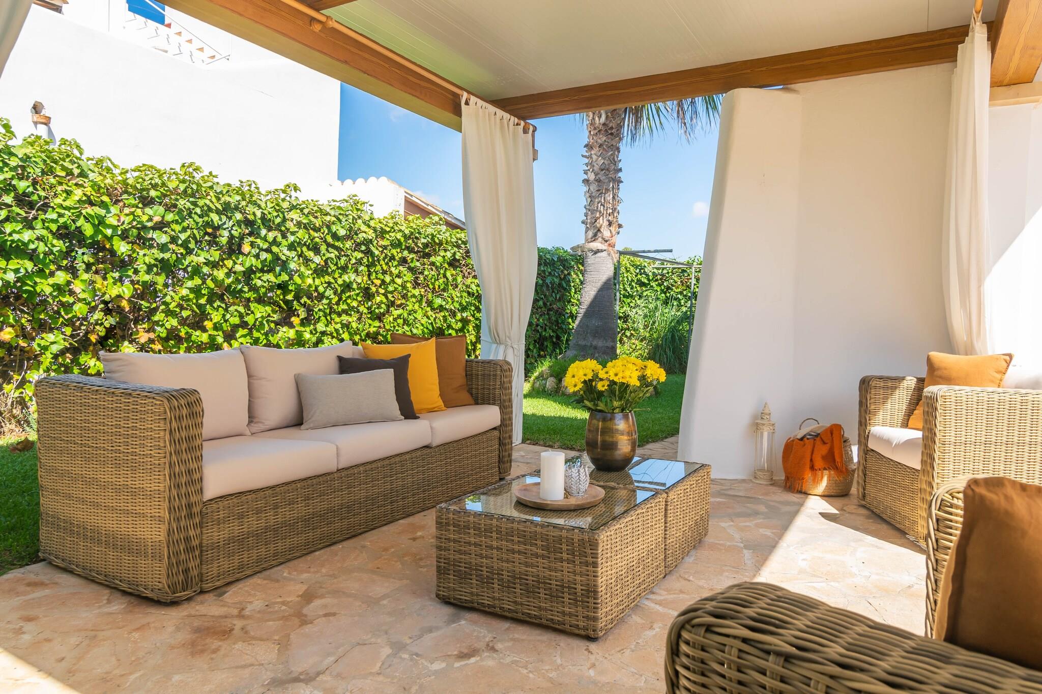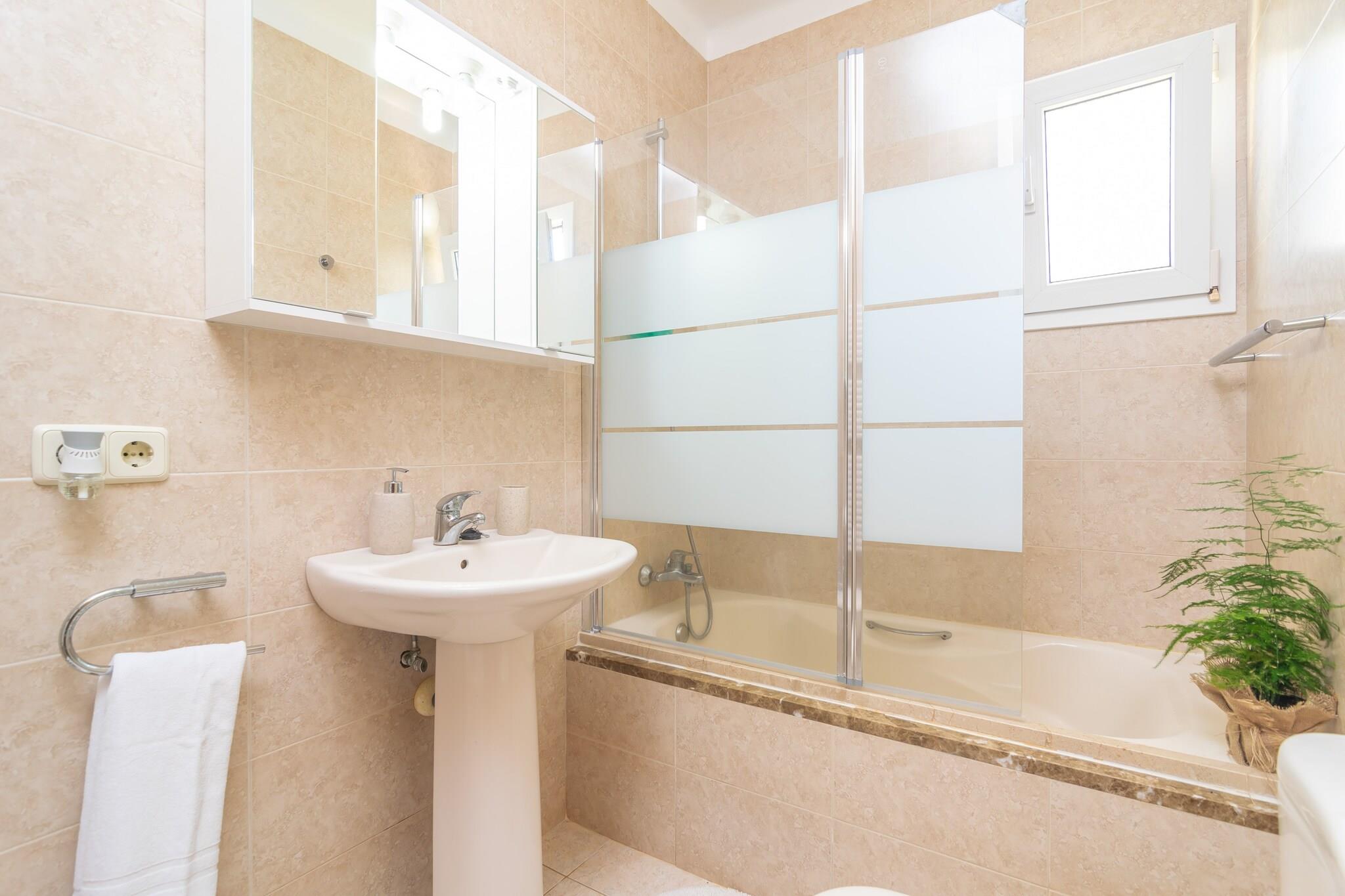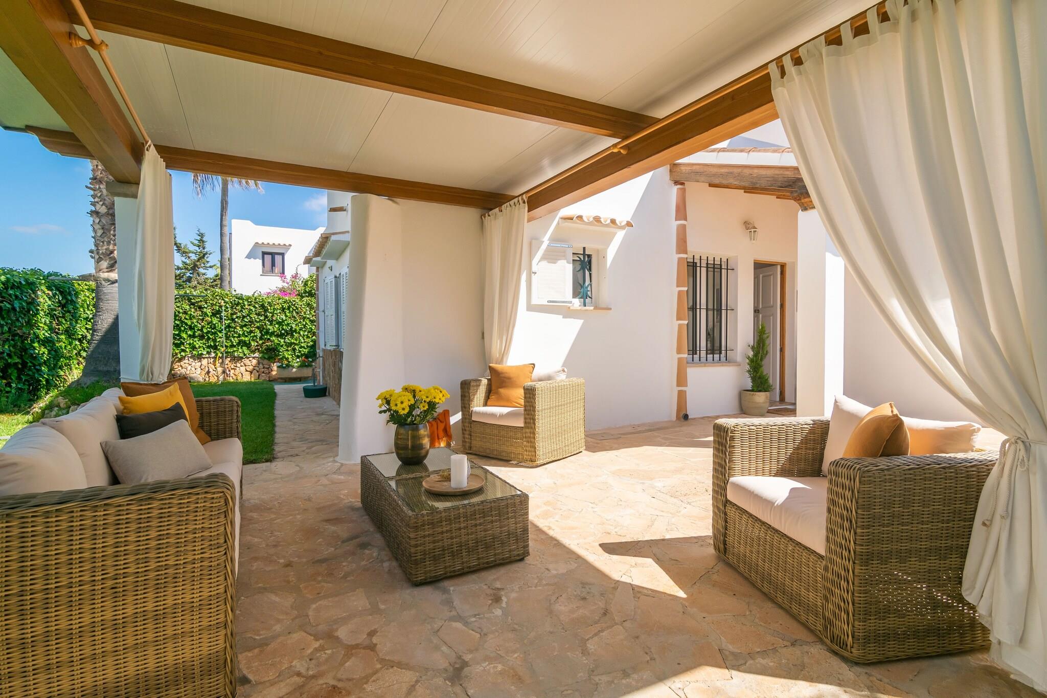Slap af i denne hyggelige villa kun 300 meter fra havet. Nyd solrige dage på liggestolene i haven, grill dine yndlingsretter på grillen, eller nyd en drink på den rummelige veranda. Indvendigt er villaen opdelt i to niveauer og byder på komfort for familier eller grupper. I stueetagen finder du en lys stue med AC og Smart TV, et fuldt udstyret køkken med gaskomfur, en spisestue, to soveværelser (et med dobbeltseng og et med to enkeltsenge og en-suite bruser), plus et badeværelse med badekar. Få adgang til øverste etage via udvendige trapper, hvor du finder en anden lounge, et soveværelse med 2 enkeltsenge med AC og loftsventilator og et stort badeværelse med bruser. Hjemmet har olie centralvarme og inkluderer en vaskemaskine, strygejern, strygebræt, barneseng og høj stol. Beliggende i et roligt boligområde i Cala d'Or, er du tæt på butikker, restauranter og dejlige bugter som Caló des Pou (700 m) og Cala Gran. Kæledyr og arrangementer er ikke tilladt. Ecotasa betales ved check-in.