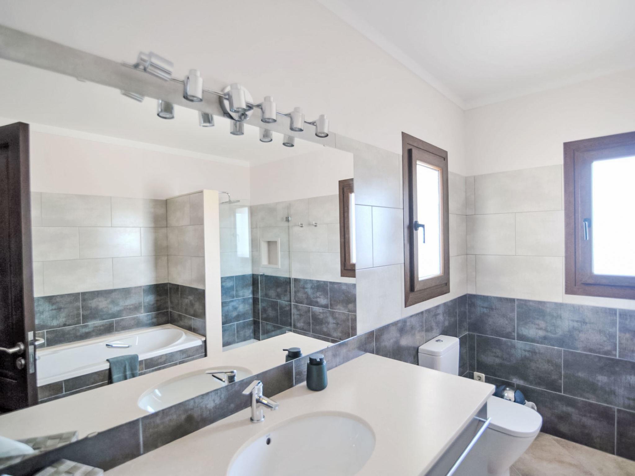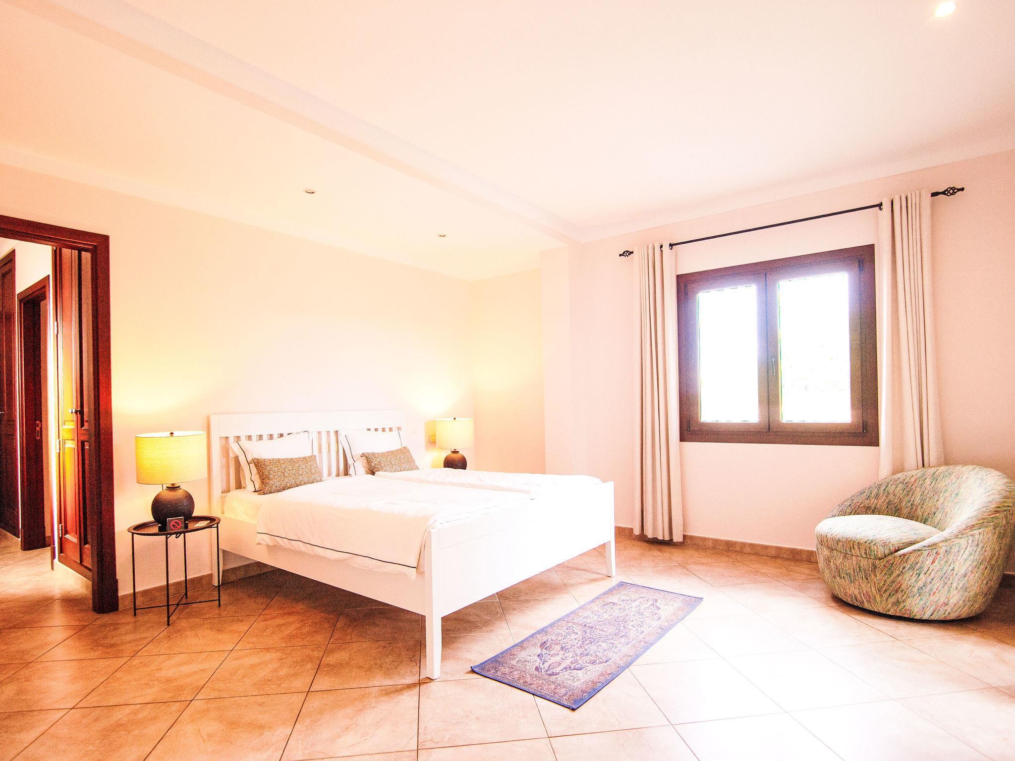 "Finca del Sol", 6-room villa 200 m2. Object suitable for 5 adults + 4 children. Spacious and bright, modern and romantic furnishings: dining room. Exit to the patio, to the swimming pool. Living room with satellite TV. Exit to the garden, to the swimming pool. 1 double bedroom with 1 french bed (1 x 150 cm, length 200 cm), air conditioning and forced-air heating. Exit to the garden. Large kitchen (oven, dishwasher, 4 ceramic glass hob hotplates, toaster, kettle, microwave, electric coffee machine). Exit to the terrace, to the swimming pool. Bathroom, shower/WC. Air-conditioning, forced-air heating. Heating not available in all rooms. Upper floor: 2 double bedrooms, each room with 1 french bed (1 x 150 cm, length 200 cm), air conditioning and forced-air heating. Exit to the terrace. 1 room with 1 bed (90 cm, length 200 cm). 1 double bedroom with 2 beds (90 cm, length 200 cm), air conditioning and forced-air heating. Bath/WC, shower/WC. Air-conditioning, floor heating, forced-air heating. Heating not available in all rooms. Natural stone floors. Terrace furniture, balcony furniture, barbecue, deck chairs (8), covered balcony, sitting area. View of the sea and the mountains. Facilities: washing machine, iron, children's high chair, baby cot for up to 2 year olds (extra), hair dryer. Internet (WiFi, free). Parking at the house. VT/1963