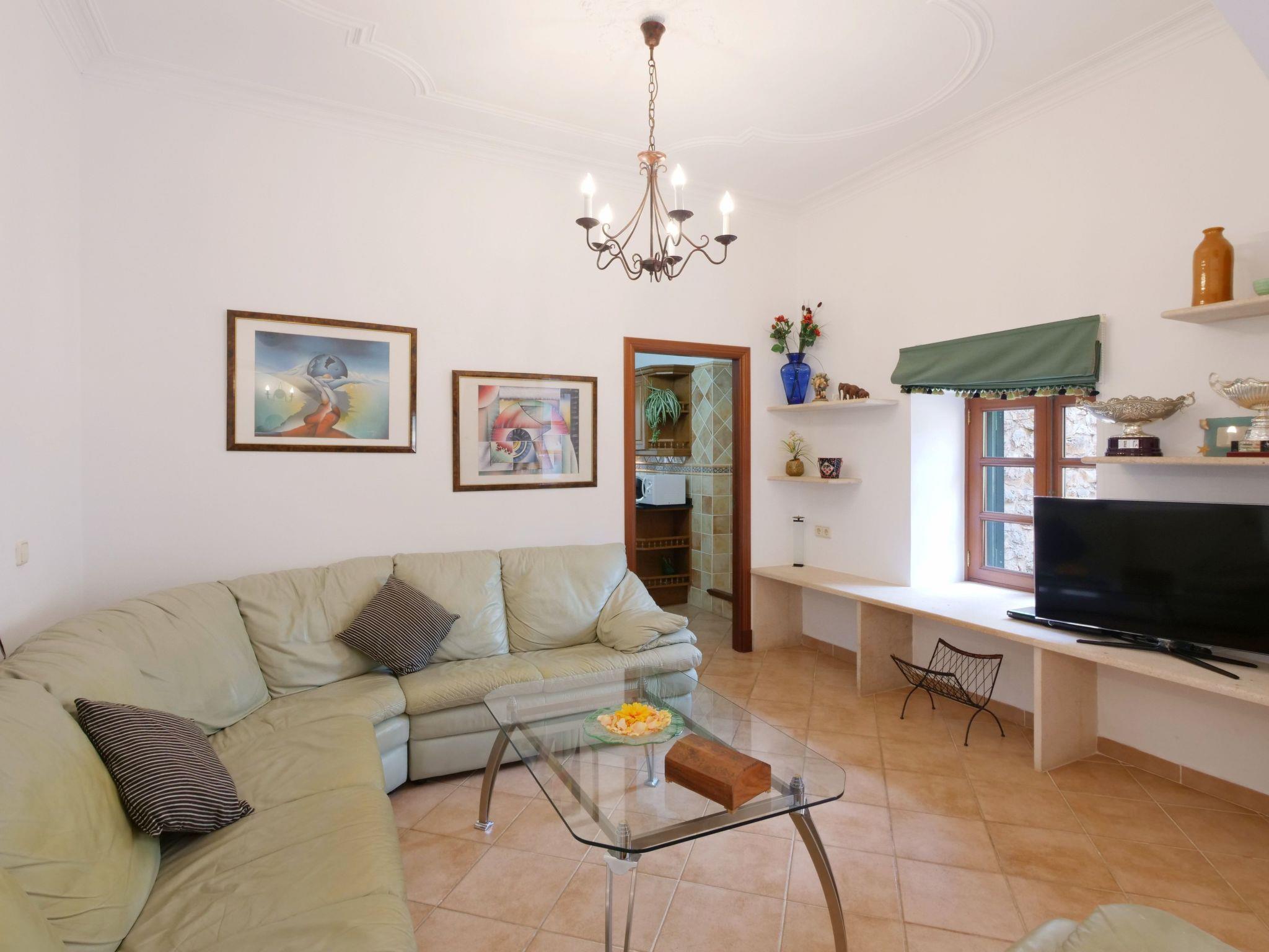 The spacious, one-story finca has been renovated and brought up to a modern standard. The cozy living / dining room has satellite TV / DVD and has access to the terrace - a quiet place that invites you to relax. The rustic kitchen is superbly equipped. The master bedroom with a large double bed has its own dressing area and en-suite bathroom. The other two bedrooms, each with two single beds and one of them with a dressing room, also have en-suite bathrooms. The bedrooms are very individually and lovingly furnished. The washing machine is in a separate service room and there is also a separate guest toilet. Air conditioning with a fixed and limited schedule.
