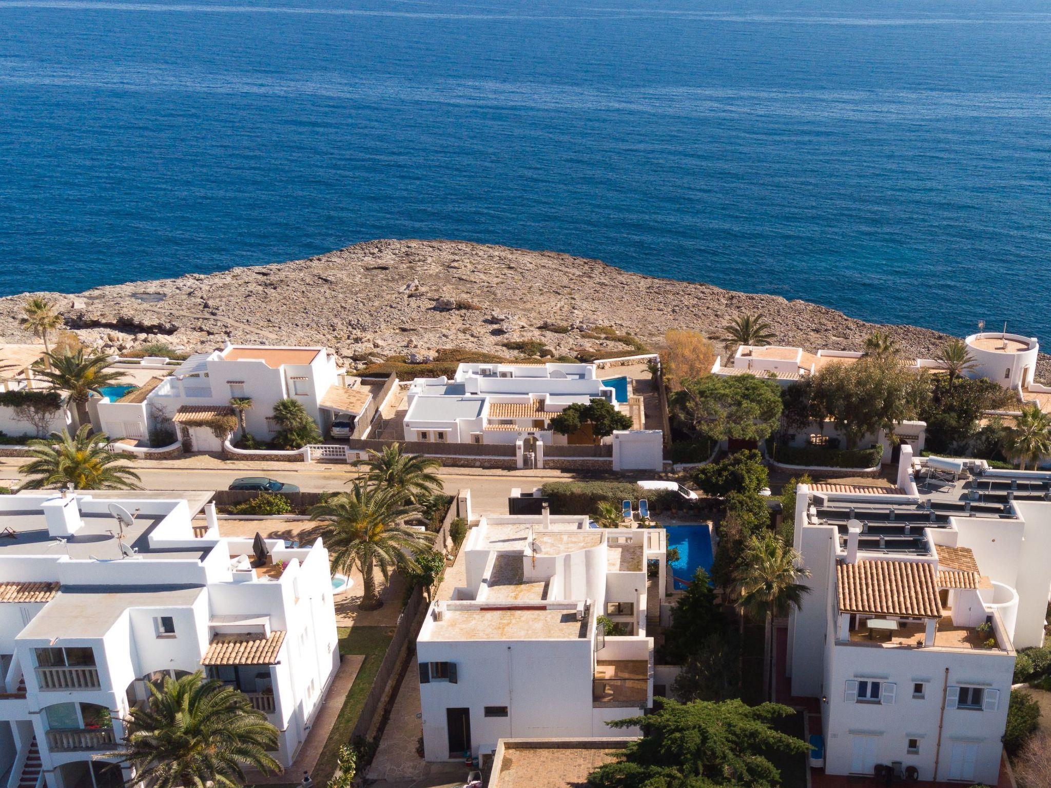 Villa on two floors with lots of natural light. On the ground floor is the living room with dining area. Exit to the terrace and pool area. Spacious kitchen next to the dining room. On this floor there is a bedroom with two single beds and a bathroom with shower. There are 2 bedrooms on the first floor. One bedroom with two single beds with access to the private terrace with unobstructed views of the sea. And a bedroom with a double bed with access to the balcony with partial views of the sea. These bedrooms share a separate bathroom with shower.