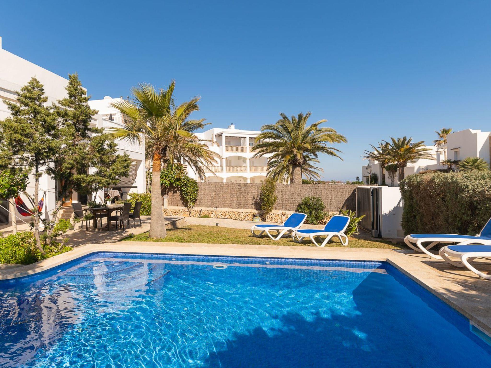 In front of the house is the private pool with sun terrace and sun loungers and another dining table for al fresco dining.