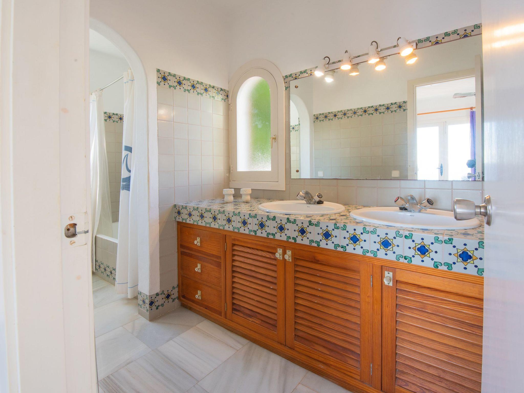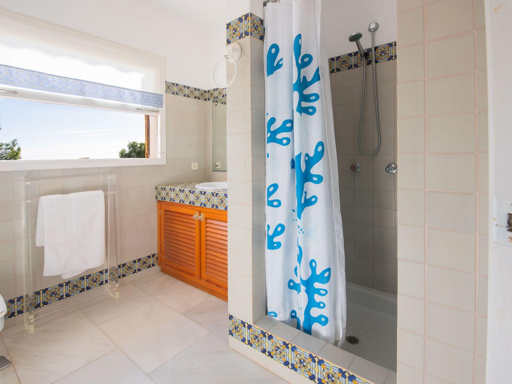 Two-storey villa. From the hallway you enter an open-plan living/dining area with access to a covered terrace with beautiful sea views. The kitchen can be accessed via the dining area as well as from the entrance, adjoining a guest WC with shower and the utility room. There are also two double bedrooms on the ground floor, each with an en suite shower room. The two further bedrooms are located on the first floor. One has a double bed (2 single mattresses) and a full bathroom en suite. The 4th bedroom has two single beds and an en suite shower room. Both bedrooms have access to a terrace with stunning sea views. This first floor is also accessible via an external staircase* From the hallway on the ground floor, 4 steps lead to the living/dining area, the kitchen and the 2 lower bedrooms.