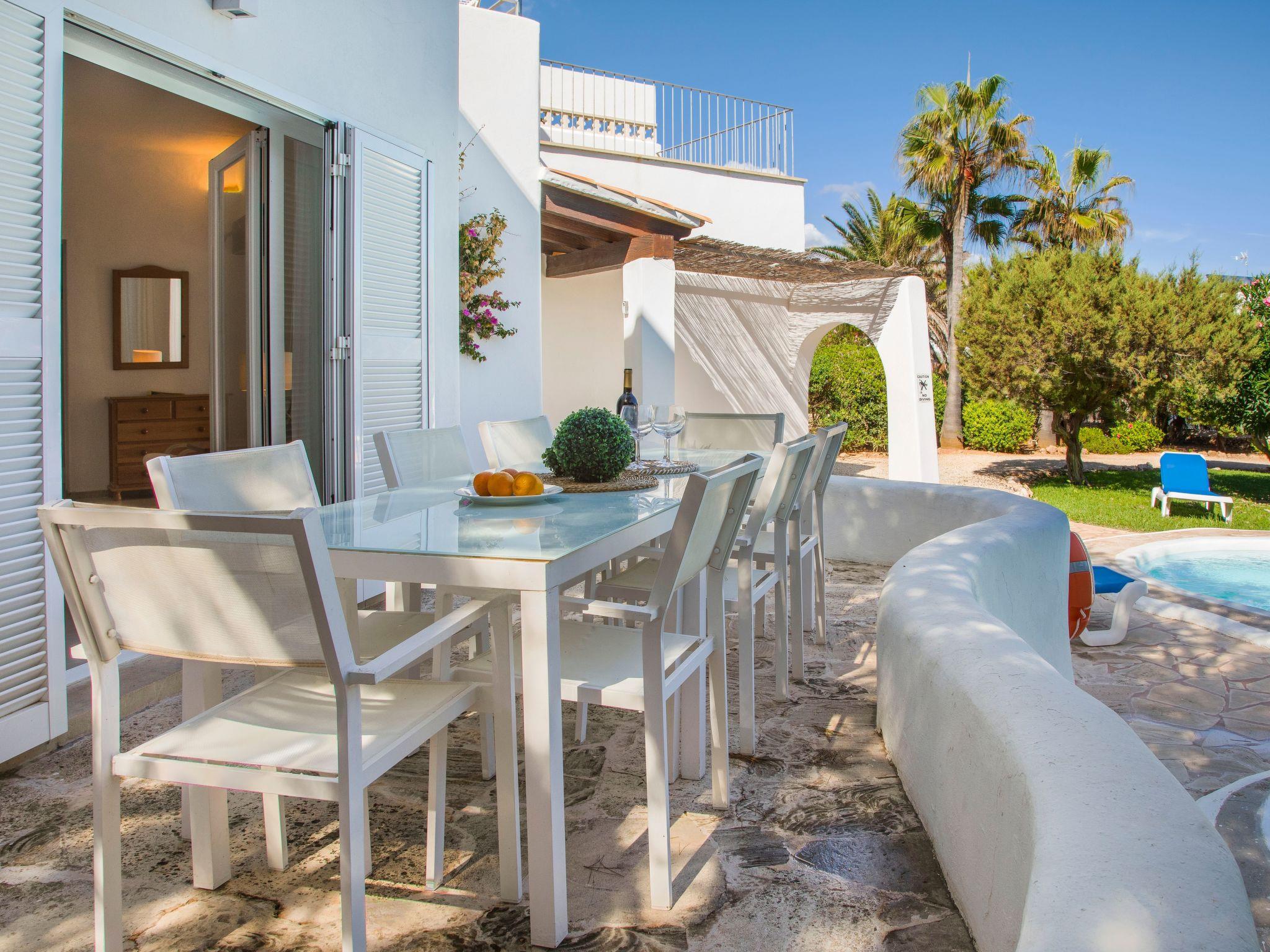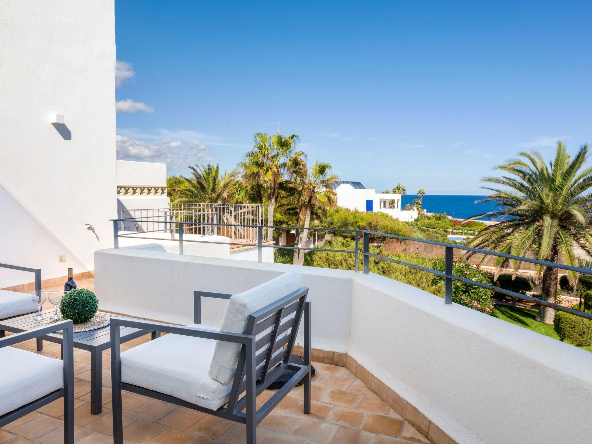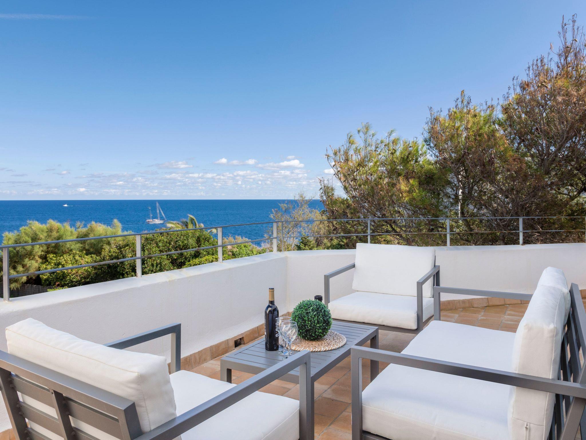 This pretty villa is situated in a privileged location above the bay of Cala Esmeralda and offers wonderful sea views from the roof terrace. A beautiful bay in the holiday resort of Cala Dor on the south-east coast of Mallorca. A walk of less than 10 minutes will take you to two wonderful beaches. In the centre of the small town, just a 12-minute walk away, there is a pedestrian zone with shops, open-air bars, restaurants and cafés. The famous fashionable marina is also worth a visit