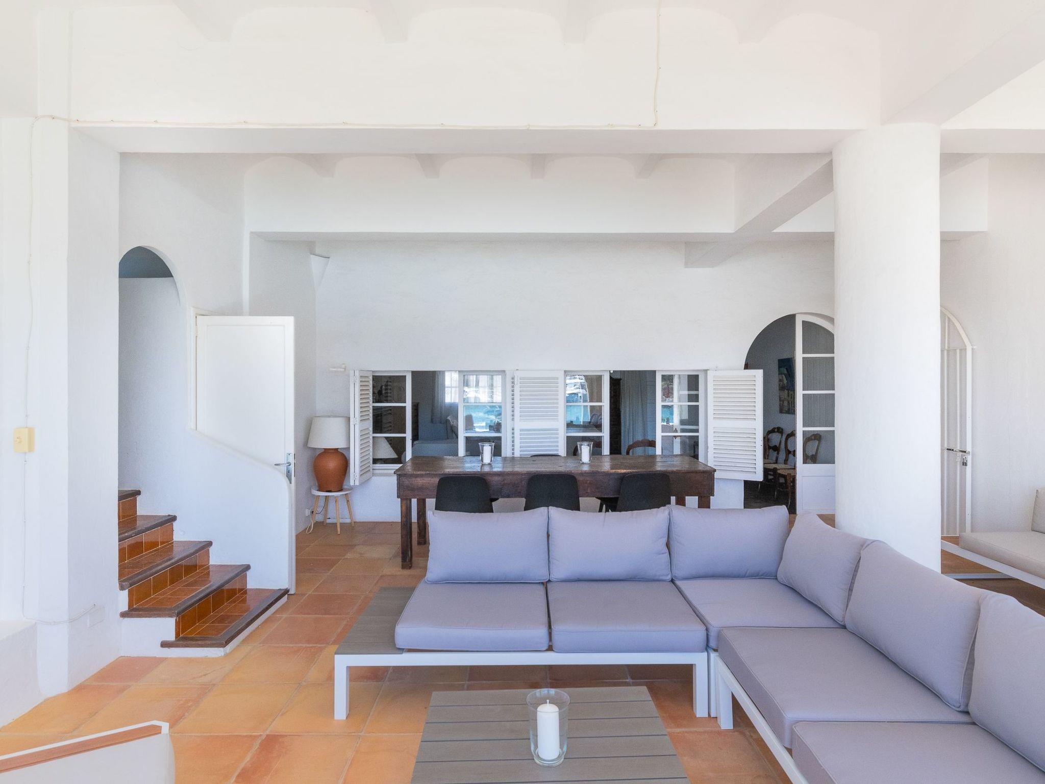 From the entrance we reach a beautiful living room with a view of the marina. Next to it is the fully equipped kitchen with a Dolce Gusto capsule coffee machine. In the summer dining room there are sofas and a large table to enjoy the marvellous view. From this living room you have access to the bedrooms. The first bedroom has a double bed and an en-suite bathroom with bathtub. Several steps lead us to a further three bedrooms. Two with two single beds and en-suite bathrooms. Finally, the master bedroom with a double bed and en-suite bathroom with shower. This bedroom has a marvellous view and a charming balcony with a table and two chairs.