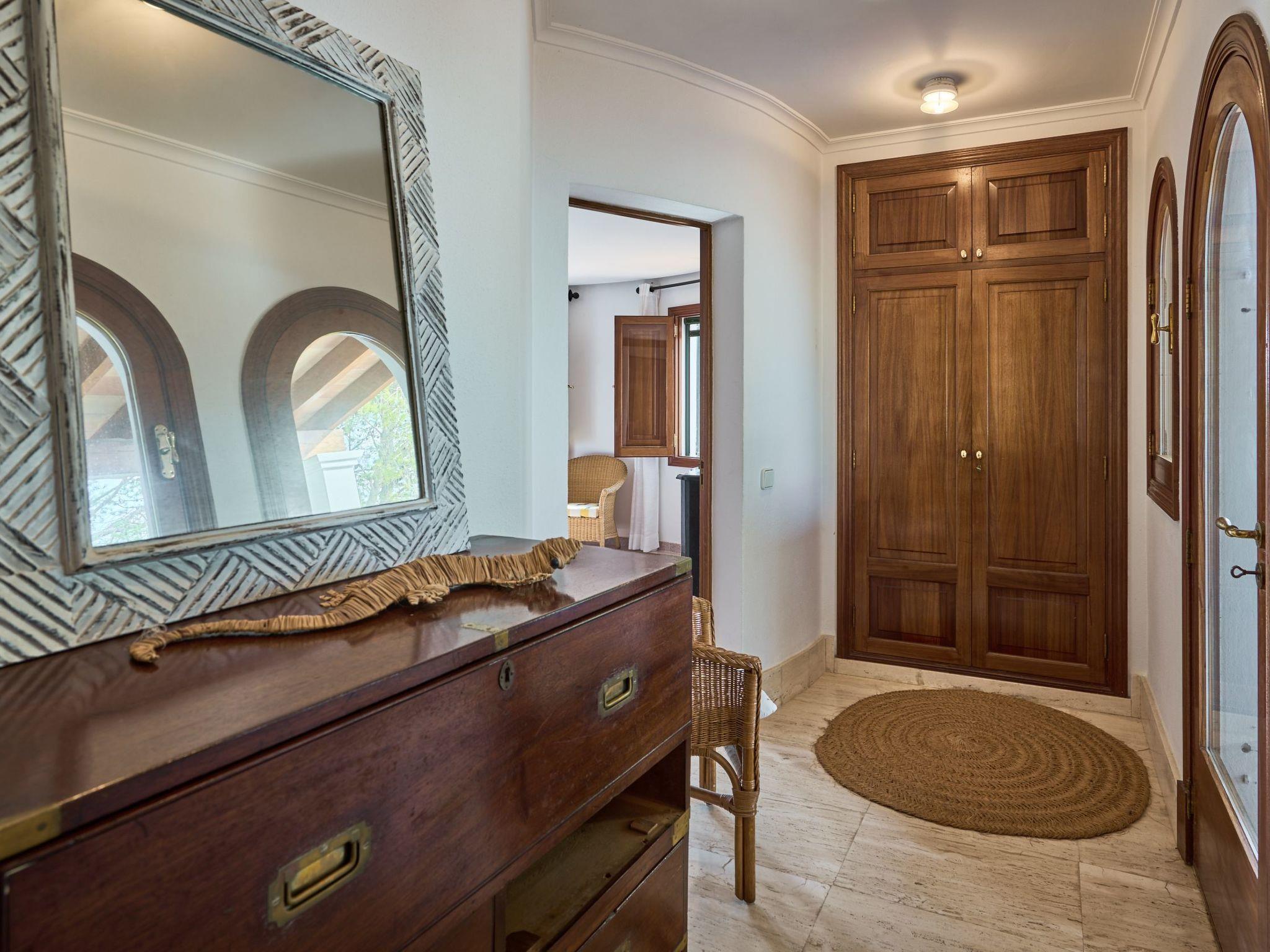On the ground floor there is a living room with access to a veranda with a dining table and views of the pool and the sea. Also on this floor is a spacious kitchen with pantry and access to the utility room. The dining room, located between the kitchen and living room, also opens onto the veranda. A double bedroom with en-suite bathroom leads to a small terrace with sea views. There is a guest WC next to the kitchen.