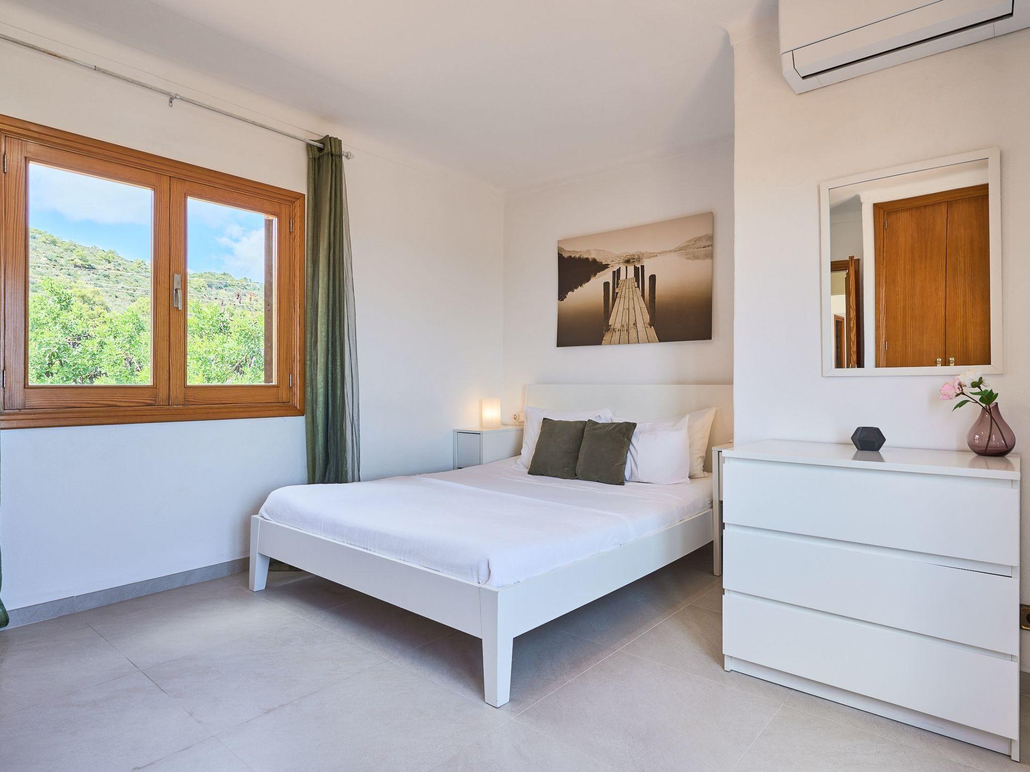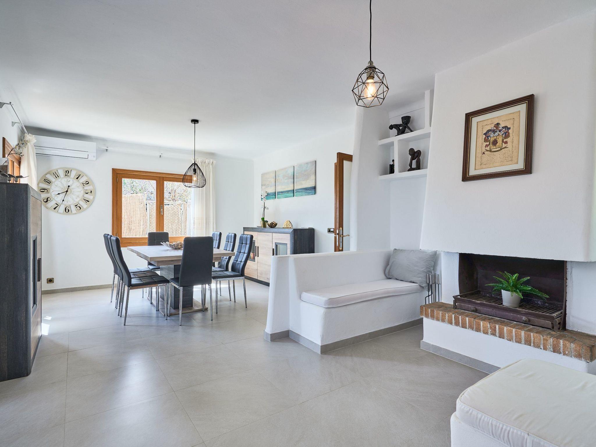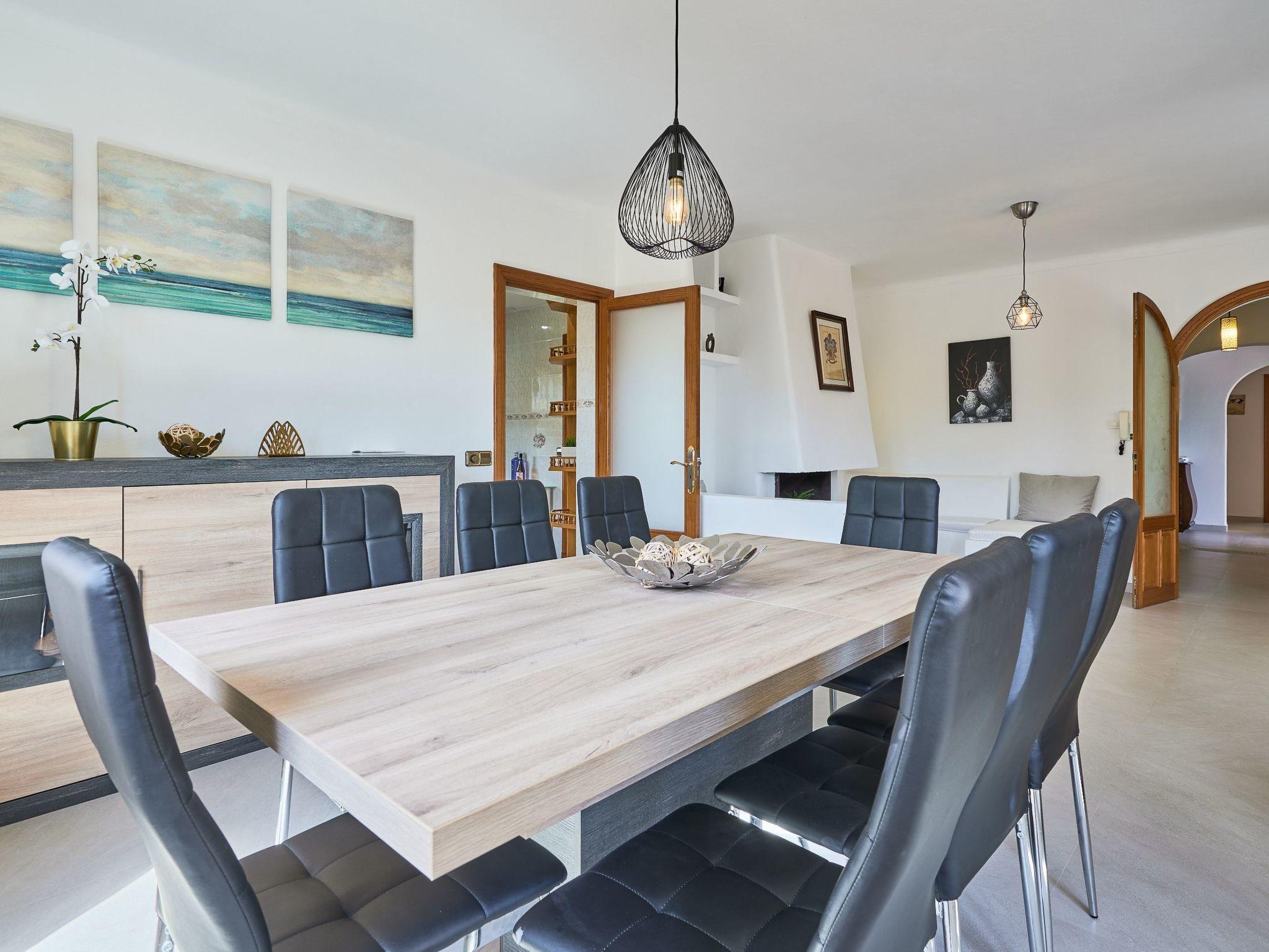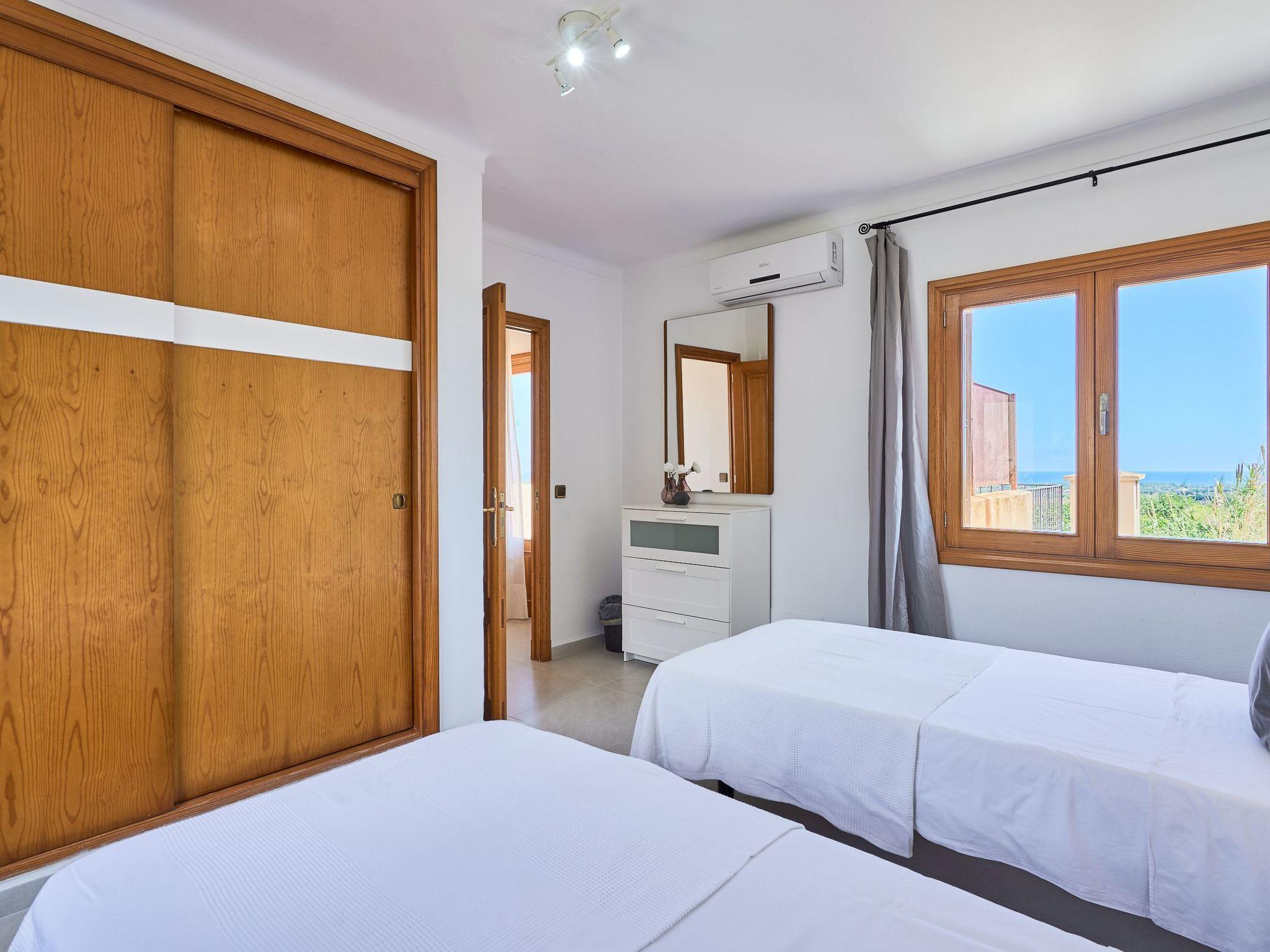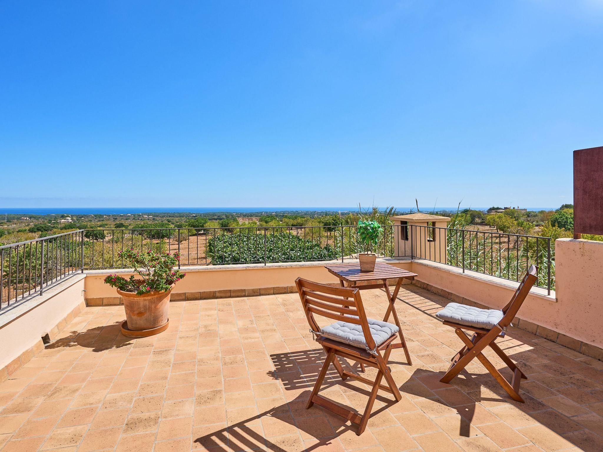 Die Garrovers de S'Horta, a two-storey, spacious house in the countryside. On the ground floor is the open-plan living and dining area with a charming corner fireplace. From the living area there is access to a terrace with marvellous views over the fields to the sea on the horizon. The kitchen is spacious, with a breakfast table and access to the outside area. On the ground floor there are two double bedrooms, one with an en-suite shower room, the other has a separate bathroom with a corner Jacuzzi bath. One of the bedrooms leads to a utility room with washing machine. On the upper floor there is a further double bedroom and a shower room. Each has its own terrace overlooking the pool.