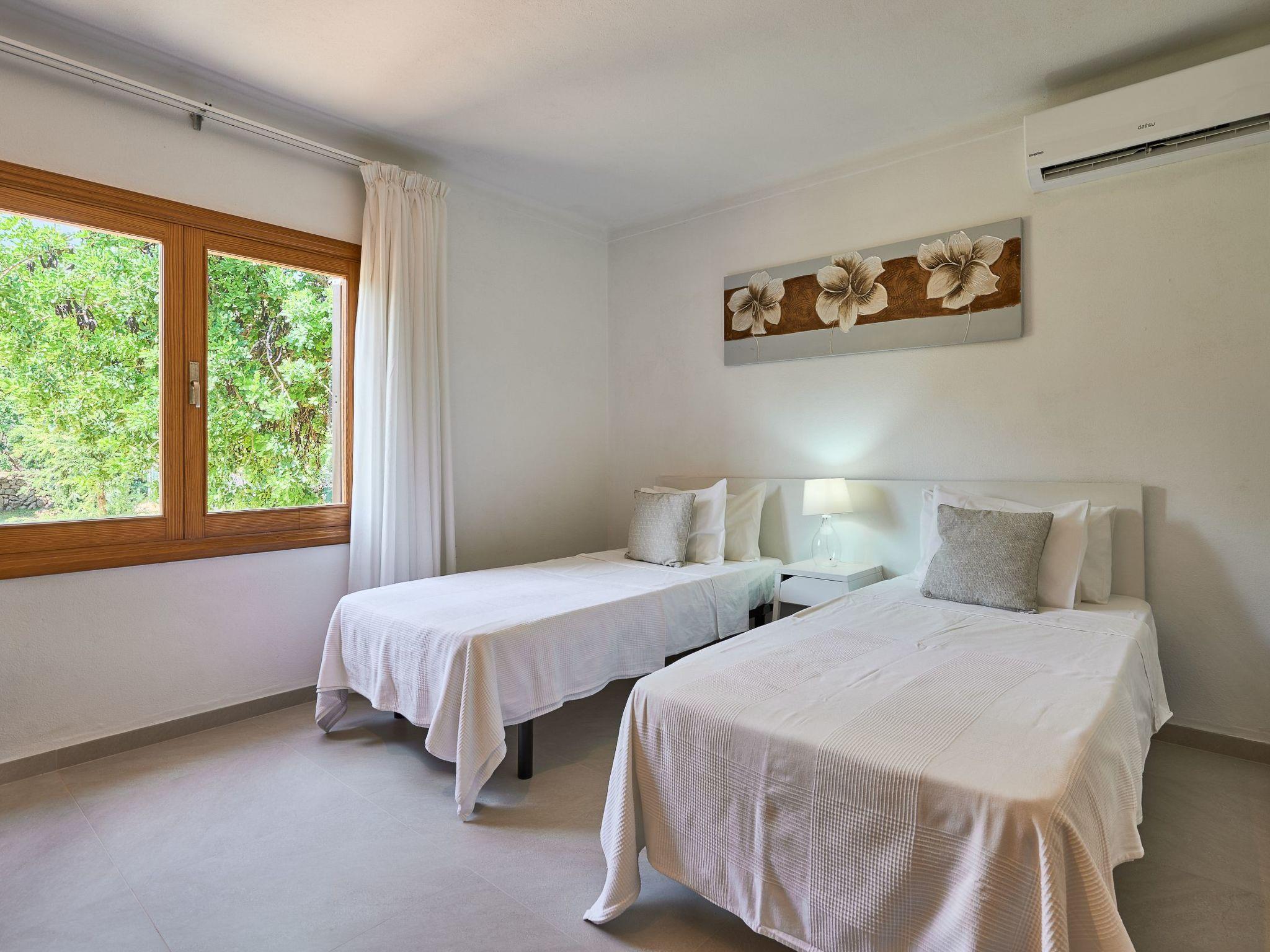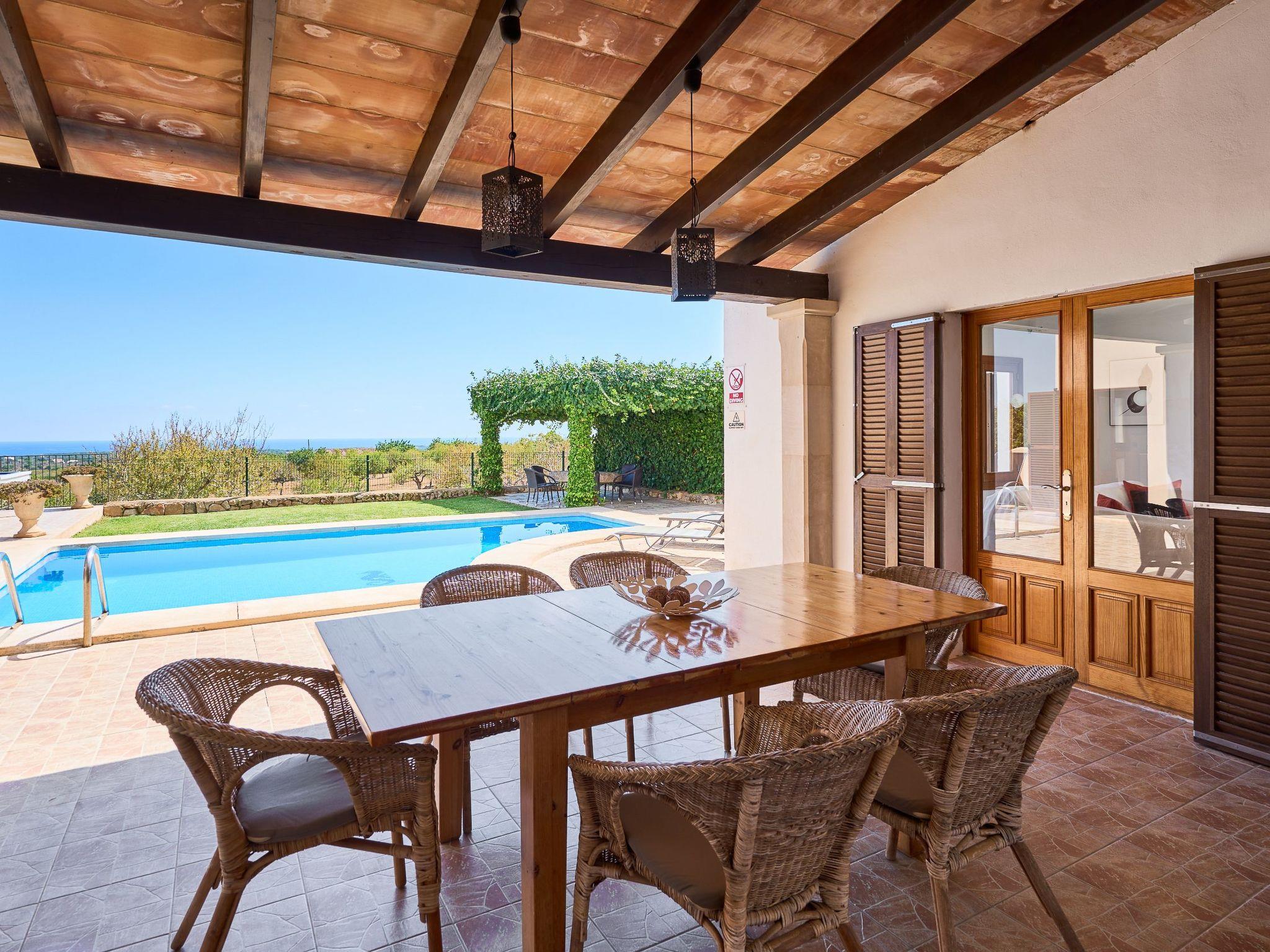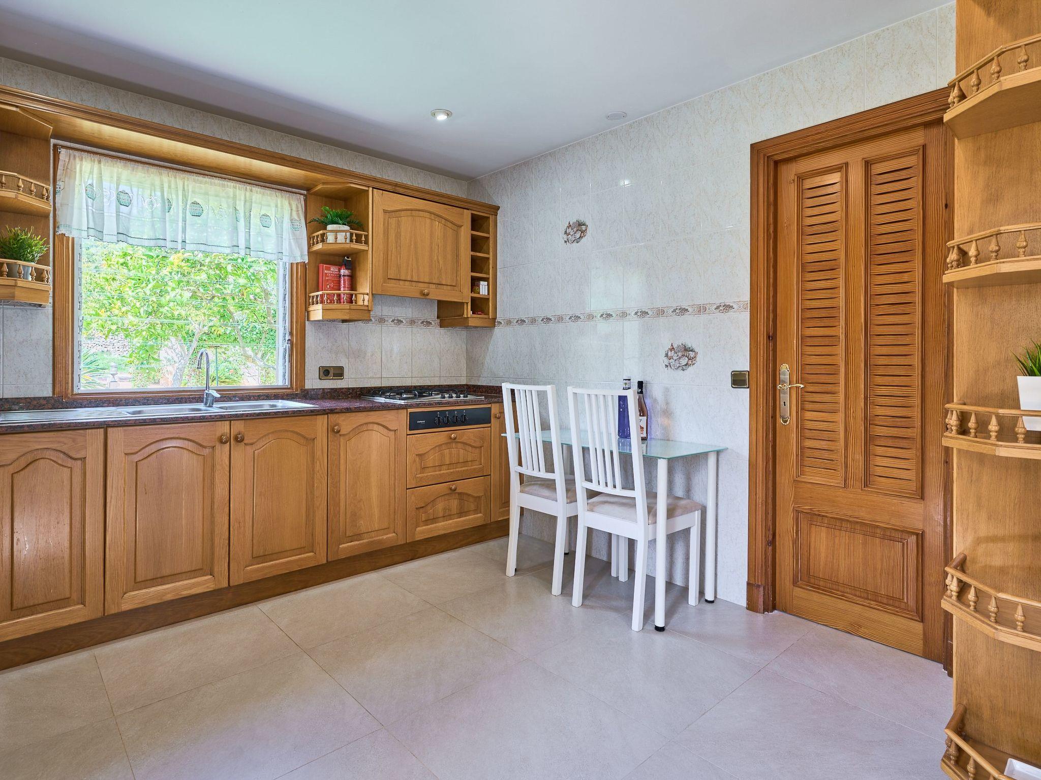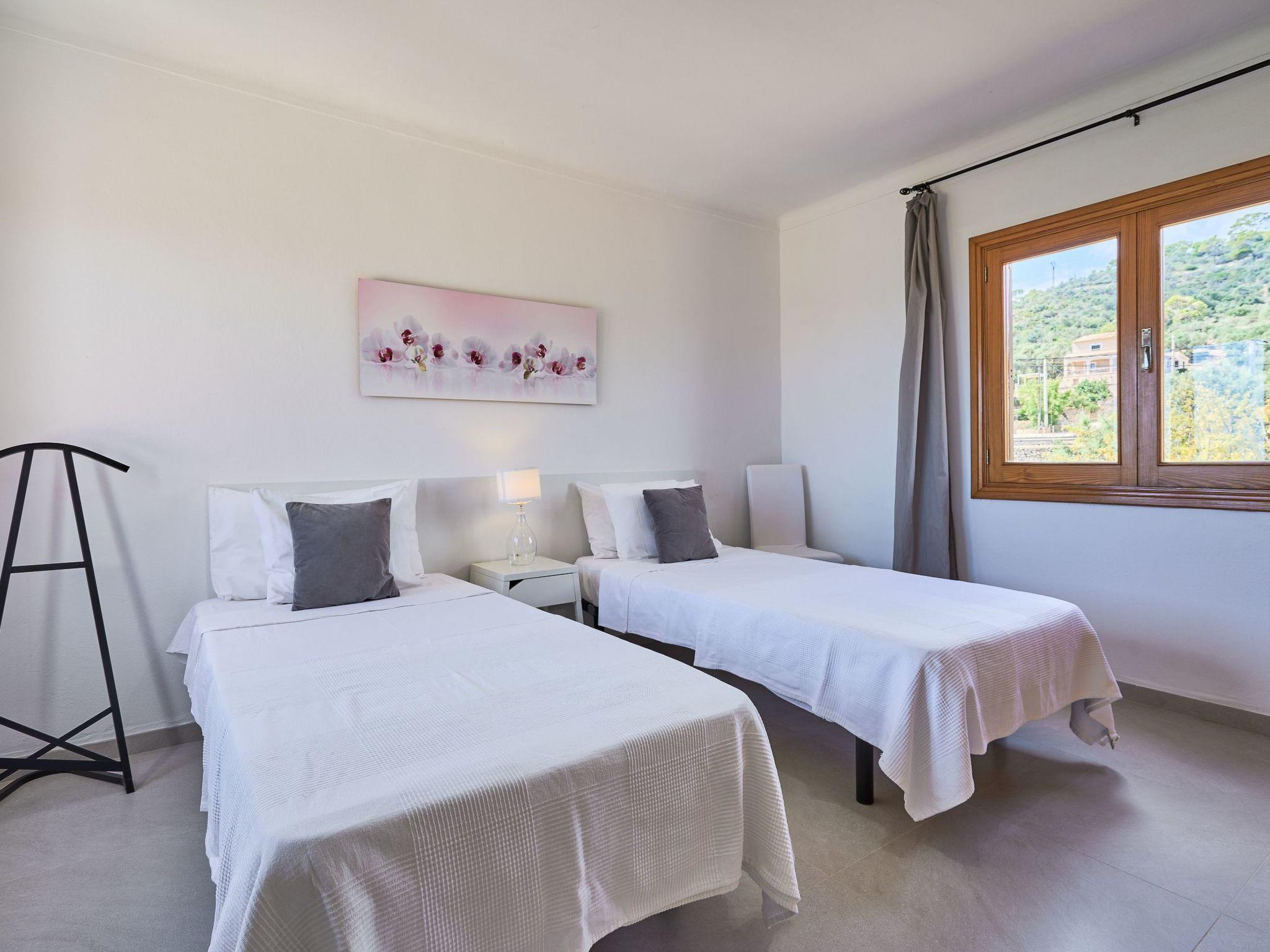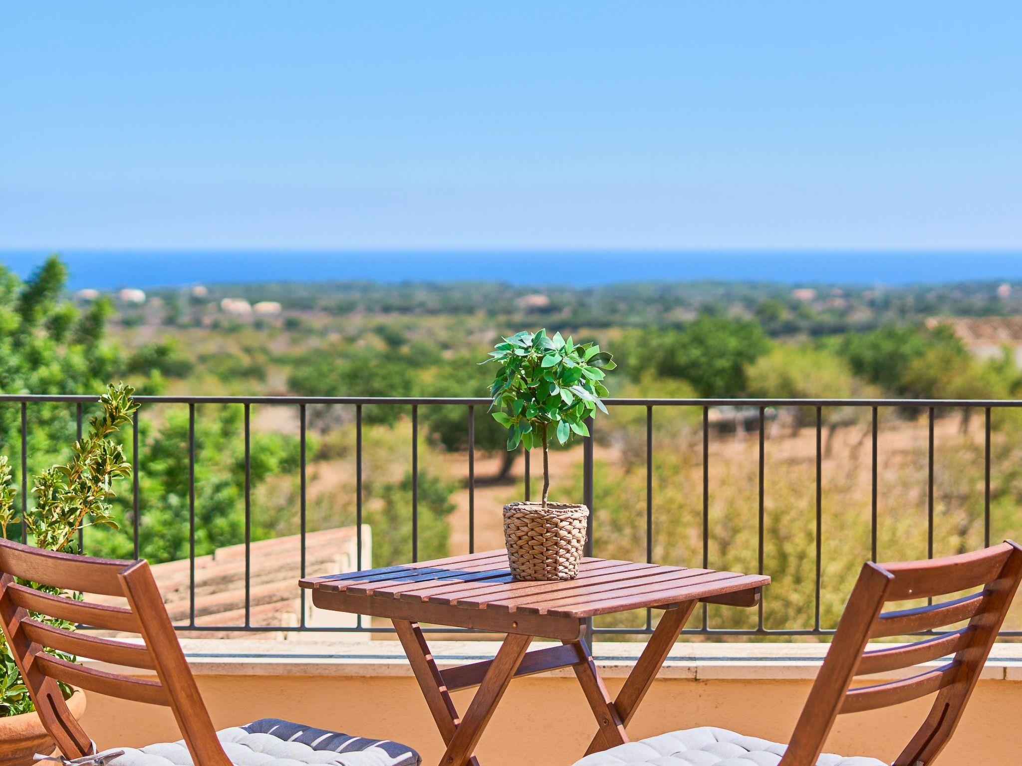 Die Garrovers de S'Horta, a two-storey, spacious house in the countryside. On the ground floor is the open-plan living and dining area with a charming corner fireplace. From the living area there is access to a terrace with marvellous views over the fields to the sea on the horizon. The kitchen is spacious, with a breakfast table and access to the outside area. On the ground floor there are two double bedrooms, one with an en-suite shower room, the other has a separate bathroom with a corner Jacuzzi bath. One of the bedrooms leads to a utility room with washing machine. On the upper floor there is a further double bedroom and a shower room. Each has its own terrace overlooking the pool.