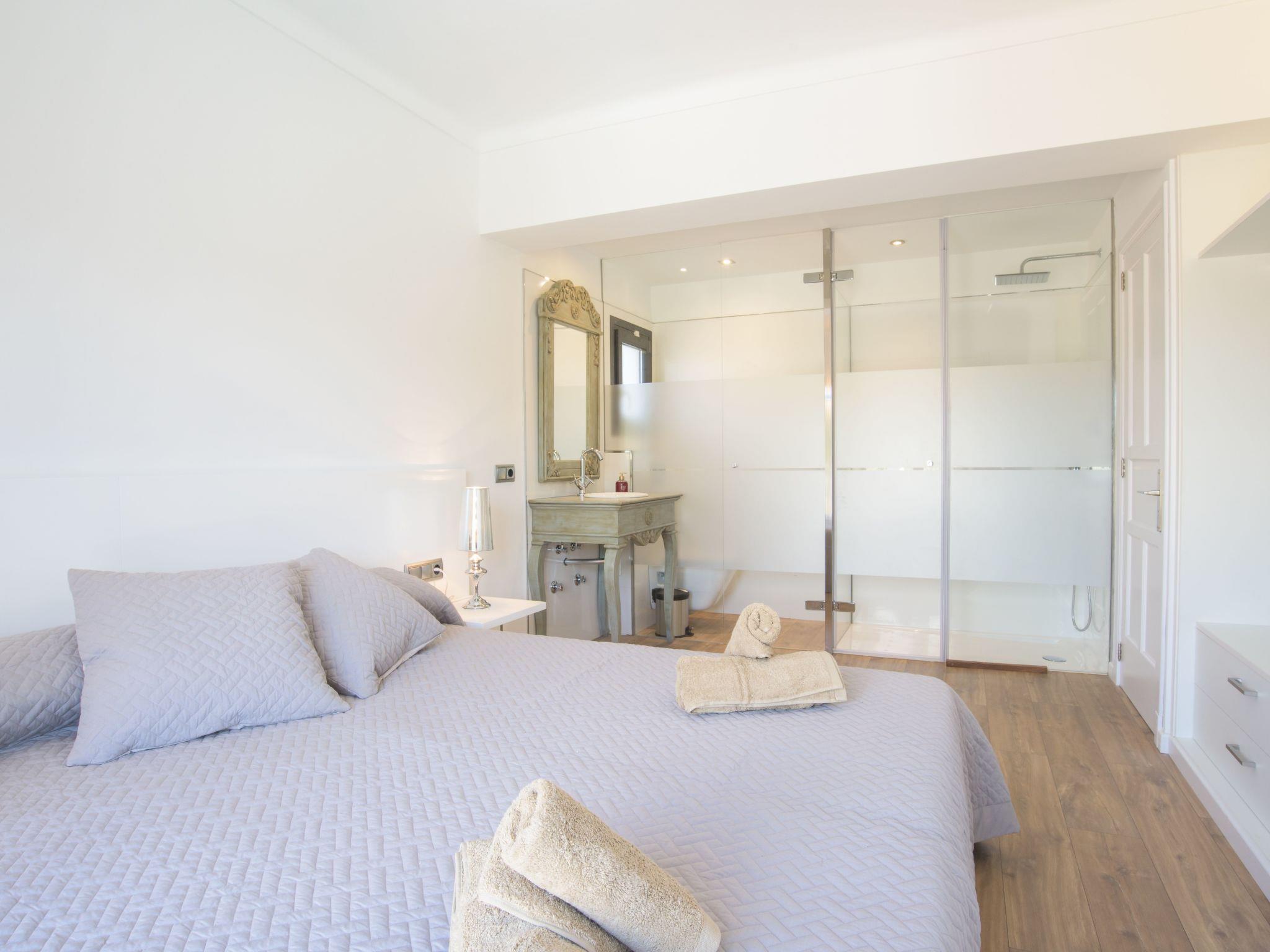 Finca Can Batlet is a renovated and newly furnished finca. The outdoor area is beautifully laid out and offers a garden, a lovely terrace and a private pool. An external staircase leads to the entrance on the first floor. From the entrance you enter directly into the living-dining room, which is open-plan in the American style. The 3 bedrooms are all equipped with double beds and each has an en suite bathroom, some of which are completely open-plan. The ground floor is unoccupied and locked.