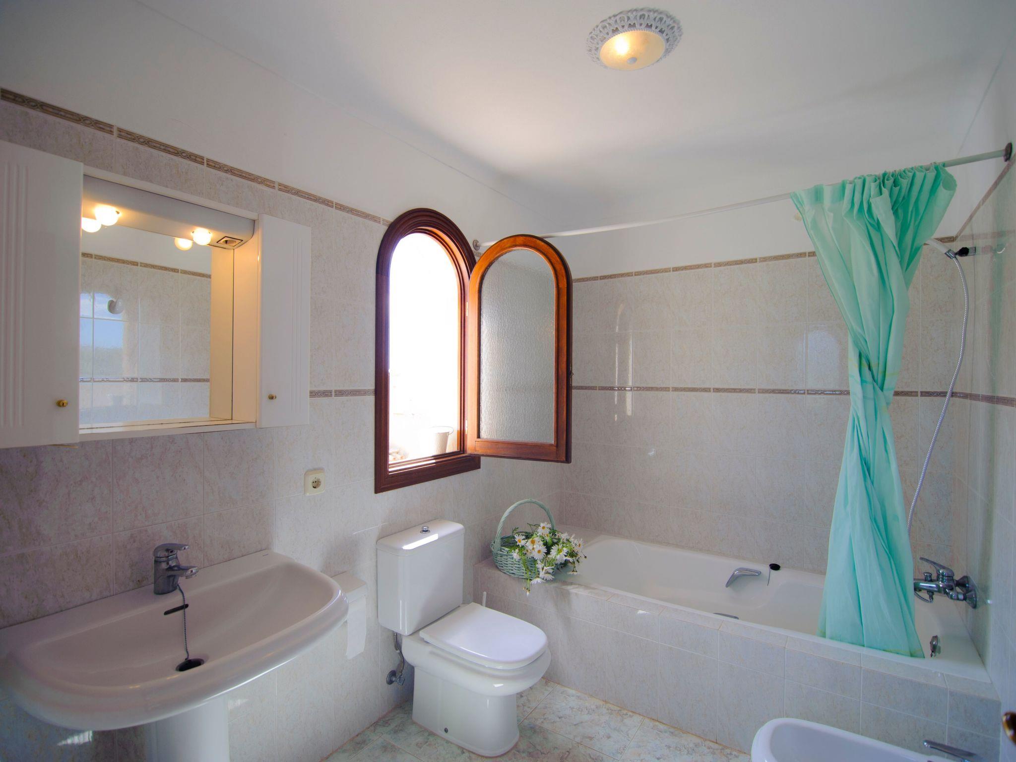 Finca Pleta de Sa Punta is a two-storey finca with plenty of natural light. The bedrooms are spacious and have en suite bathrooms. From the bright entrance, we reach the spacious living room with glass doors leading to the covered terrace and the pool. A door at the side leads into the inner courtyard. On the other side of the entrance is the dining room, which also leads onto the covered terrace. From the dining room we reach the kitchen with breakfast table and the utility room with washing machine. Access to the patio. There are two bedrooms in the inner courtyard. One with a double bed, the other with two single beds. Both bedrooms have en suite bathrooms with bathtub. From the inner courtyard, a staircase leads to the first floor, where there are two further bedrooms. One with a double bed and en suite bathroom with a corner bathtub, the other bedroom has two single beds and en suite bathroom with bathtub. These two bedrooms each have their own terrace.