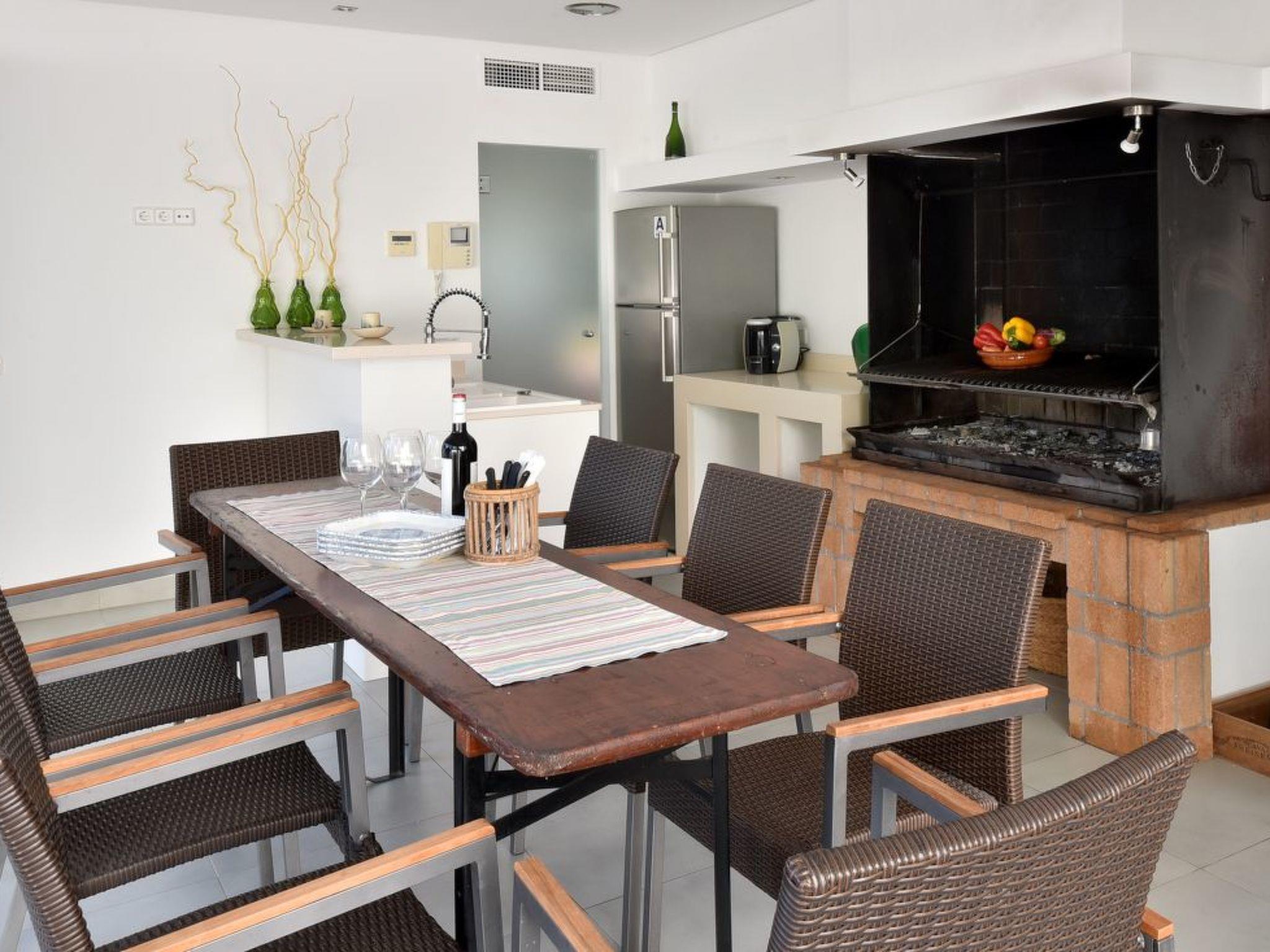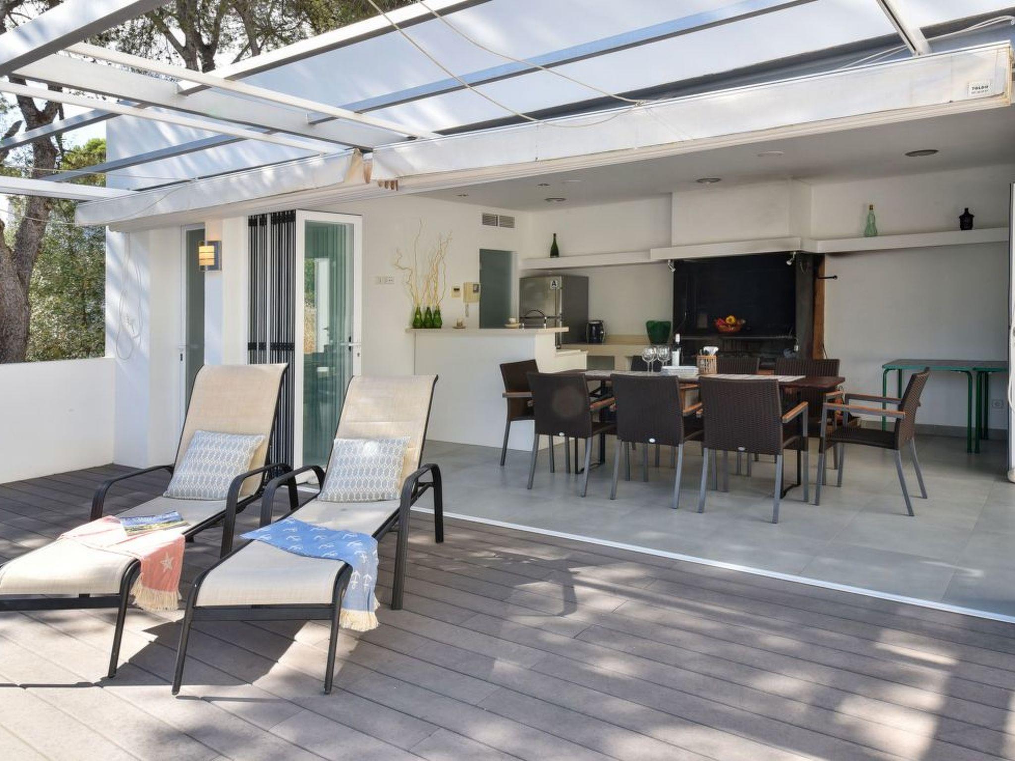 On the lower level is the infinity pool and a cosy covered barbecue area with a table, pantry, fridge and outdoor sink. Outdoor shower available. The sandy cove can be reached from the pool area through the garden.