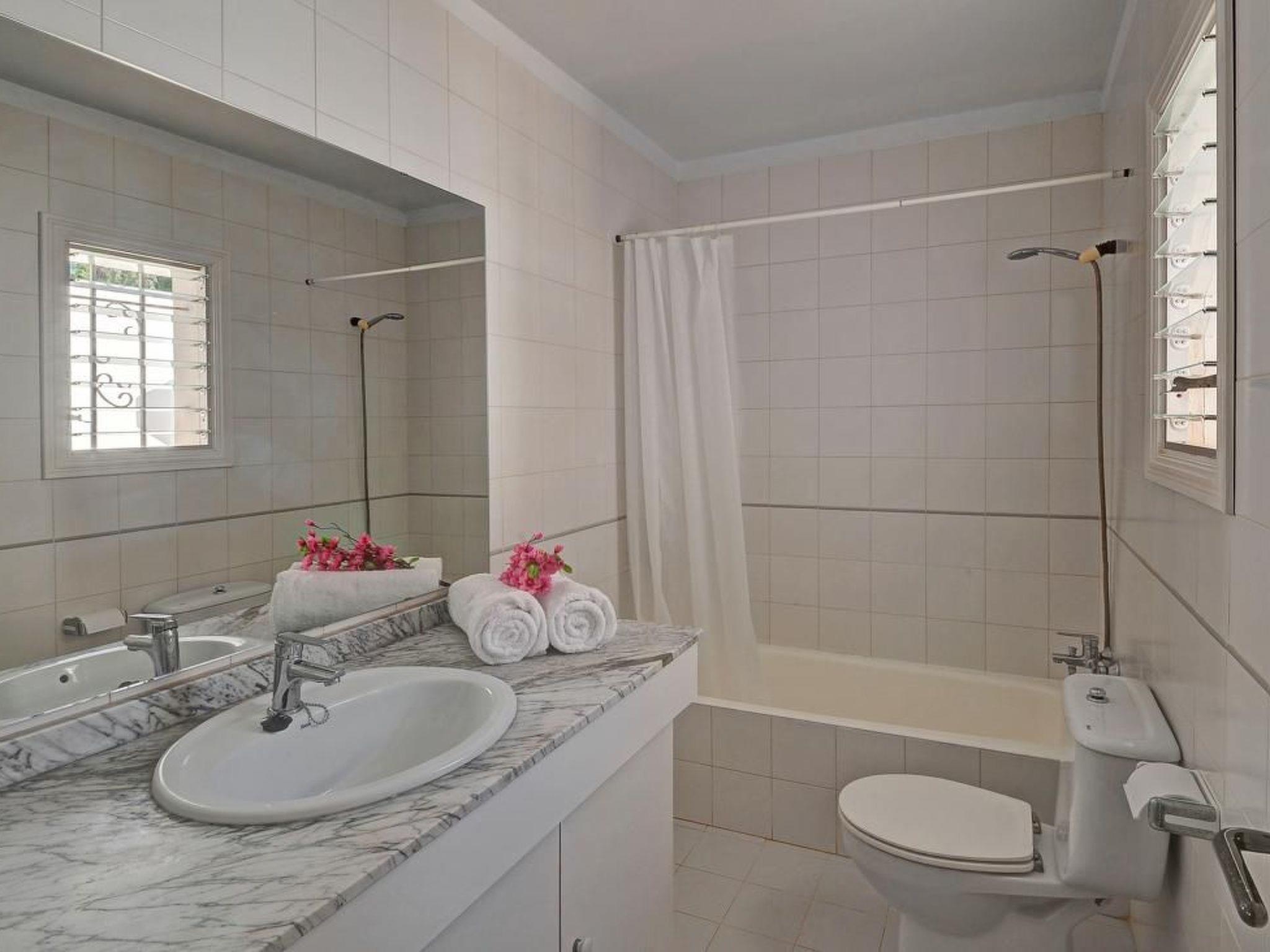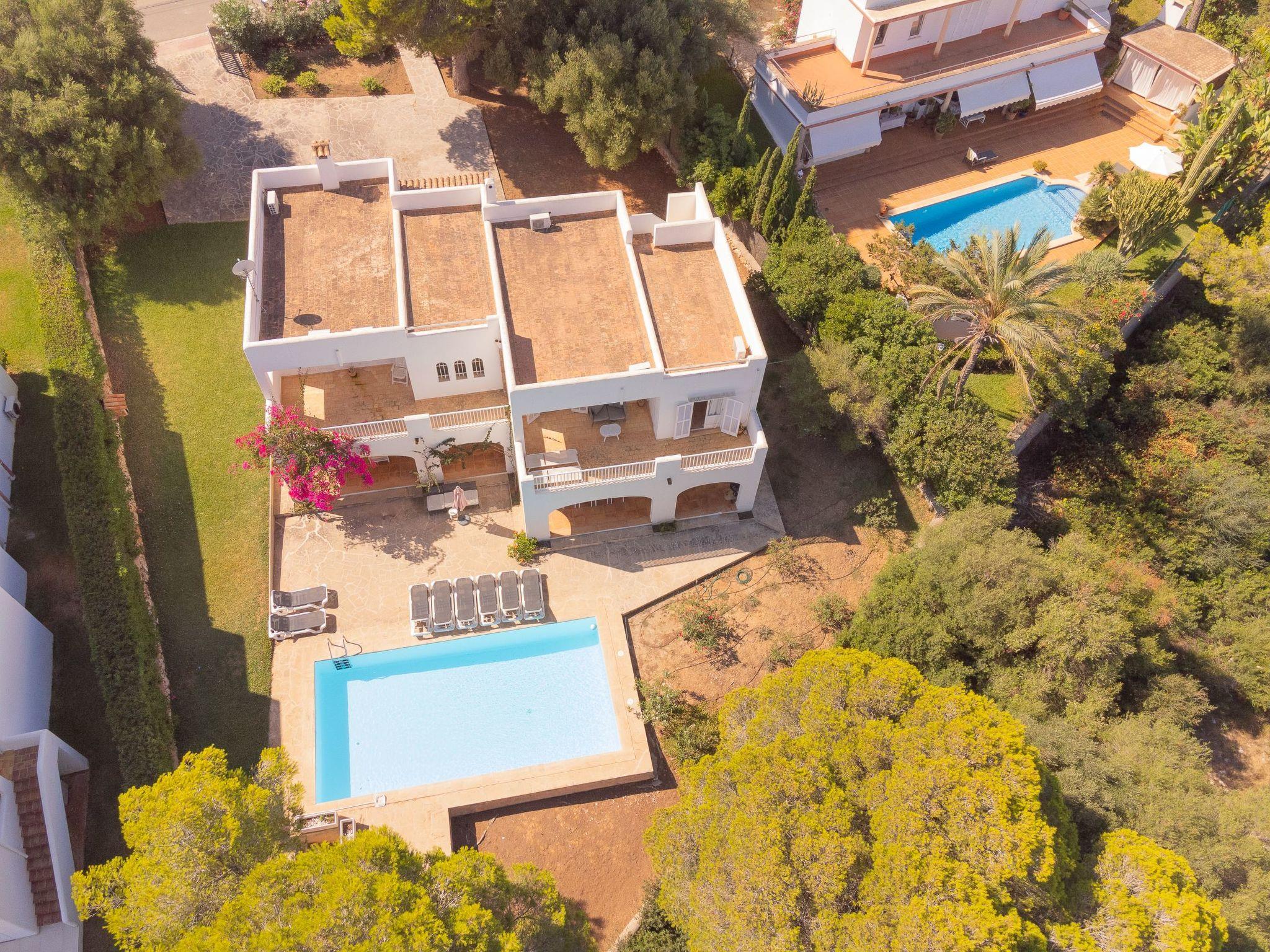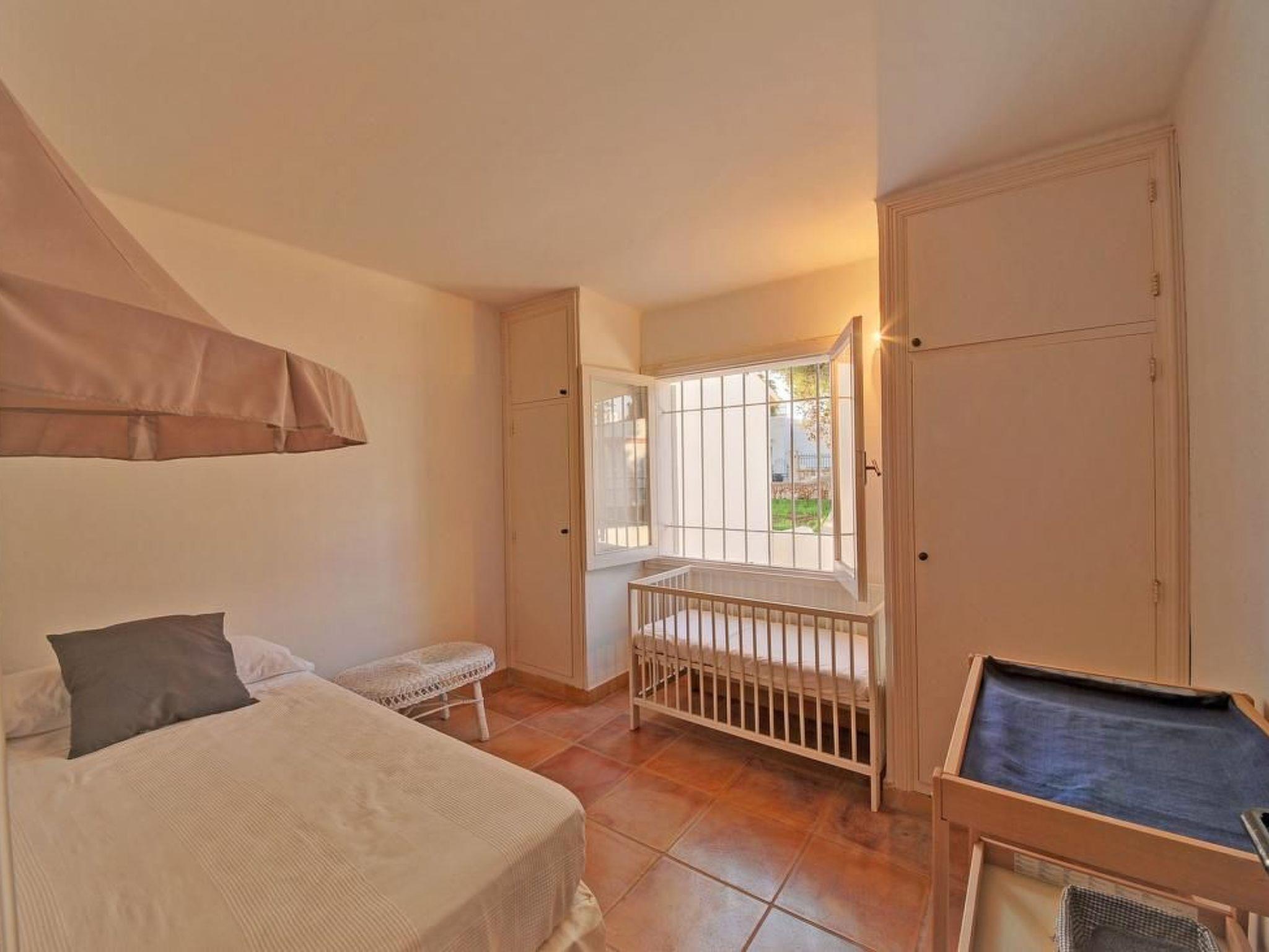 Two-storey villa. The bedrooms and bathrooms are on the ground floor. To the right of the entrance hall there are two double bedrooms -one with access to a terrace-, a single bedroom and a bathroom. To the left of the hall there is a single bedroom, a twin bedroom with access to a terrace and a separate bathroom as well as a bedroom with a double bed, en suite bathroom and access to a terrace. Straight ahead of the hall, steps lead down to the lower ground floor where the spacious living room and dining room are located, both with access to the covered terrace and pool. Here there is another bathroom with a bathtub. The modern spacious kitchen also has access to the terrace area and from the covered terrace area a step leads down to the beautiful 10m. x 5m. pool with partial views of the marina. The divided terrace offers this beautiful view from both the dining and chill out area. Mobile barbecue available. Parking possible on the property.