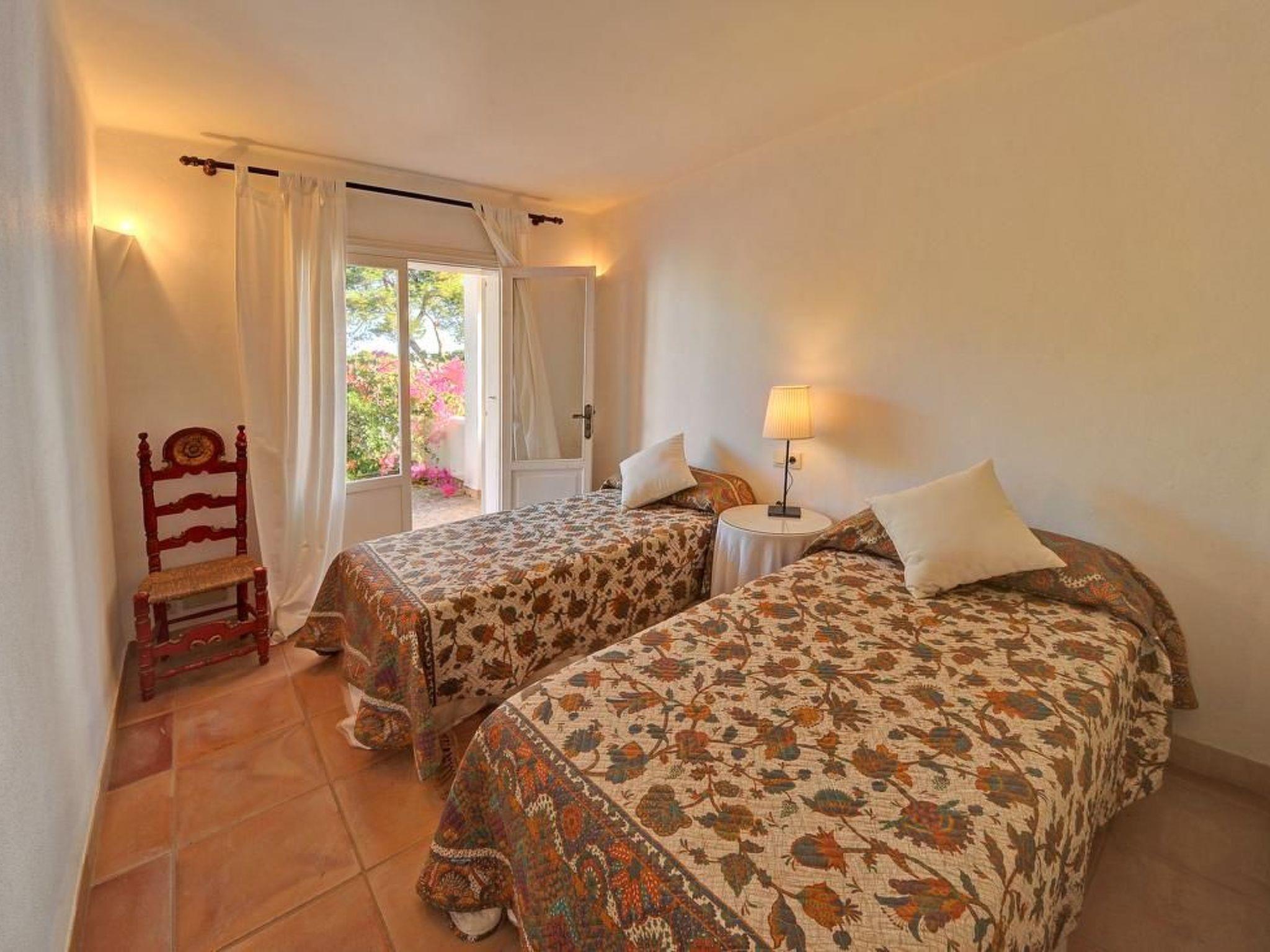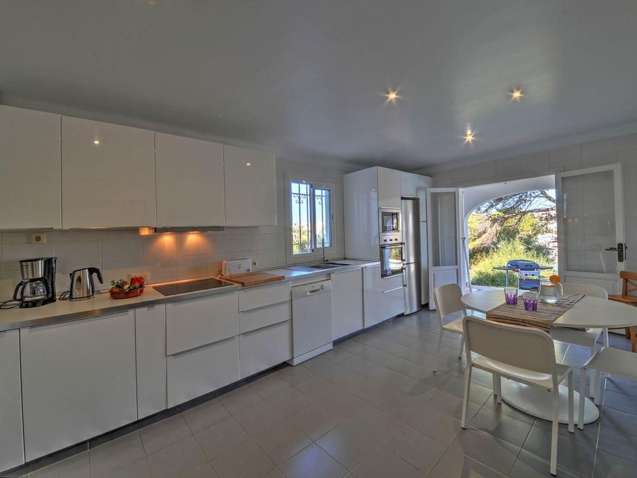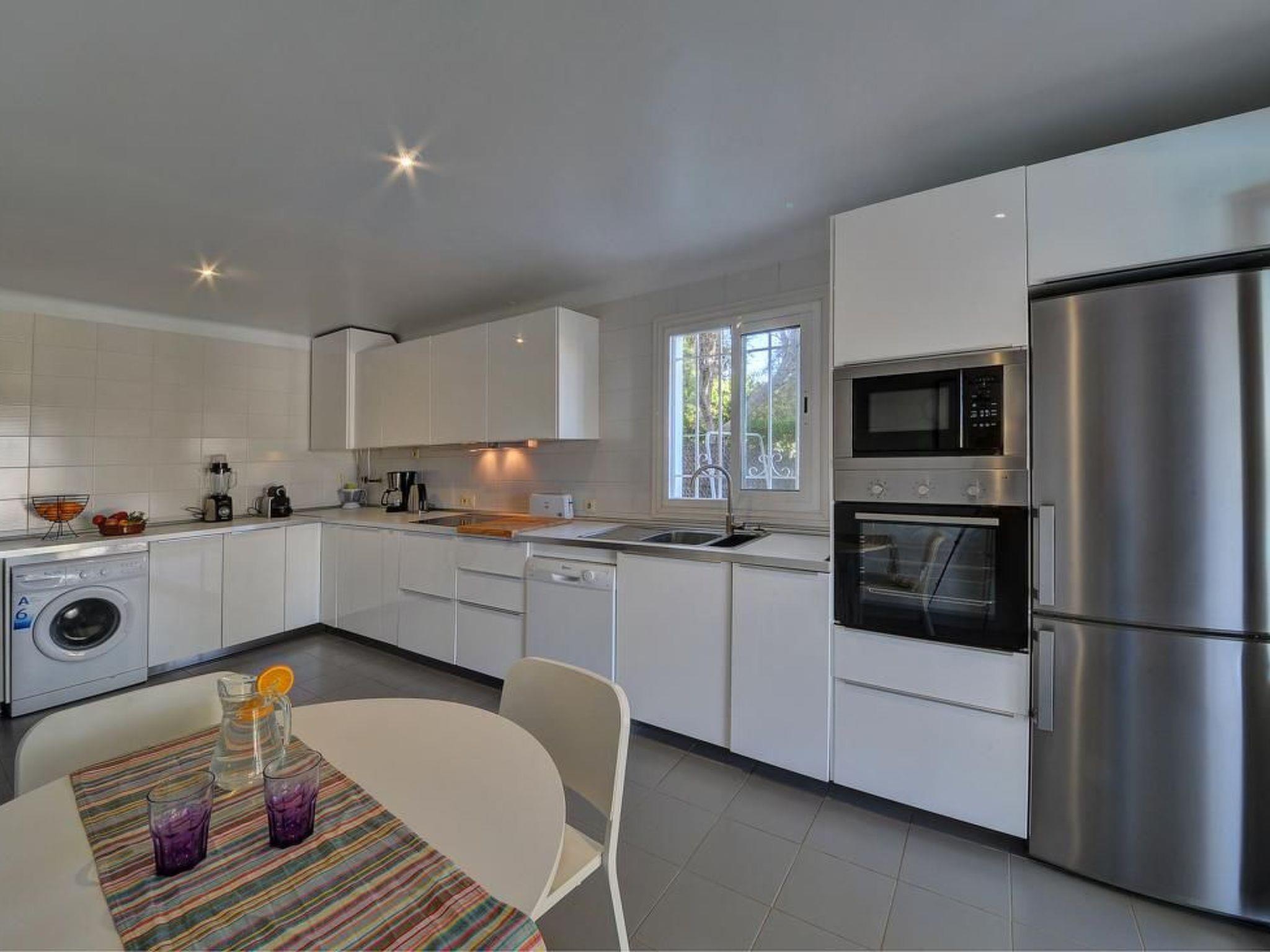 Two-storey villa. The bedrooms and bathrooms are on the ground floor. To the right of the entrance hall there are two double bedrooms -one with access to a terrace-, a single bedroom and a bathroom. To the left of the hall there is a single bedroom, a twin bedroom with access to a terrace and a separate bathroom as well as a bedroom with a double bed, en suite bathroom and access to a terrace. Straight ahead of the hall, steps lead down to the lower ground floor where the spacious living room and dining room are located, both with access to the covered terrace and pool. Here there is another bathroom with a bathtub. The modern spacious kitchen also has access to the terrace area and from the covered terrace area a step leads down to the beautiful 10m. x 5m. pool with partial views of the marina. The divided terrace offers this beautiful view from both the dining and chill out area. Mobile barbecue available. Parking possible on the property.