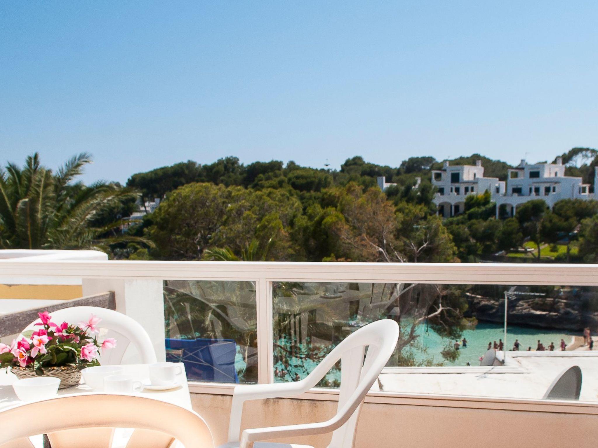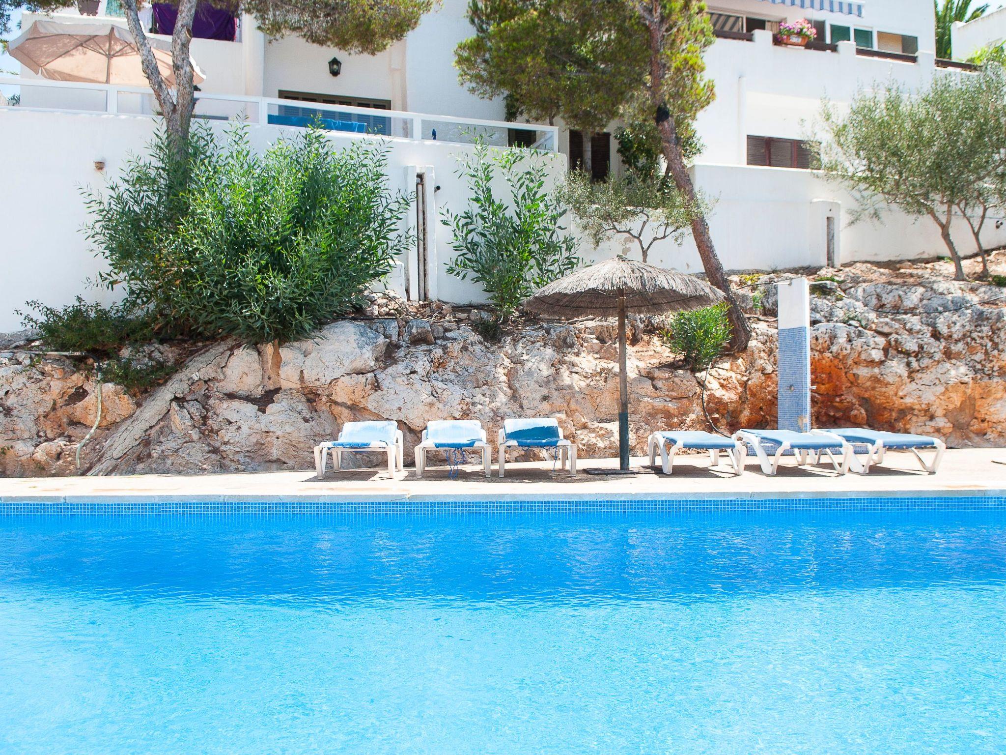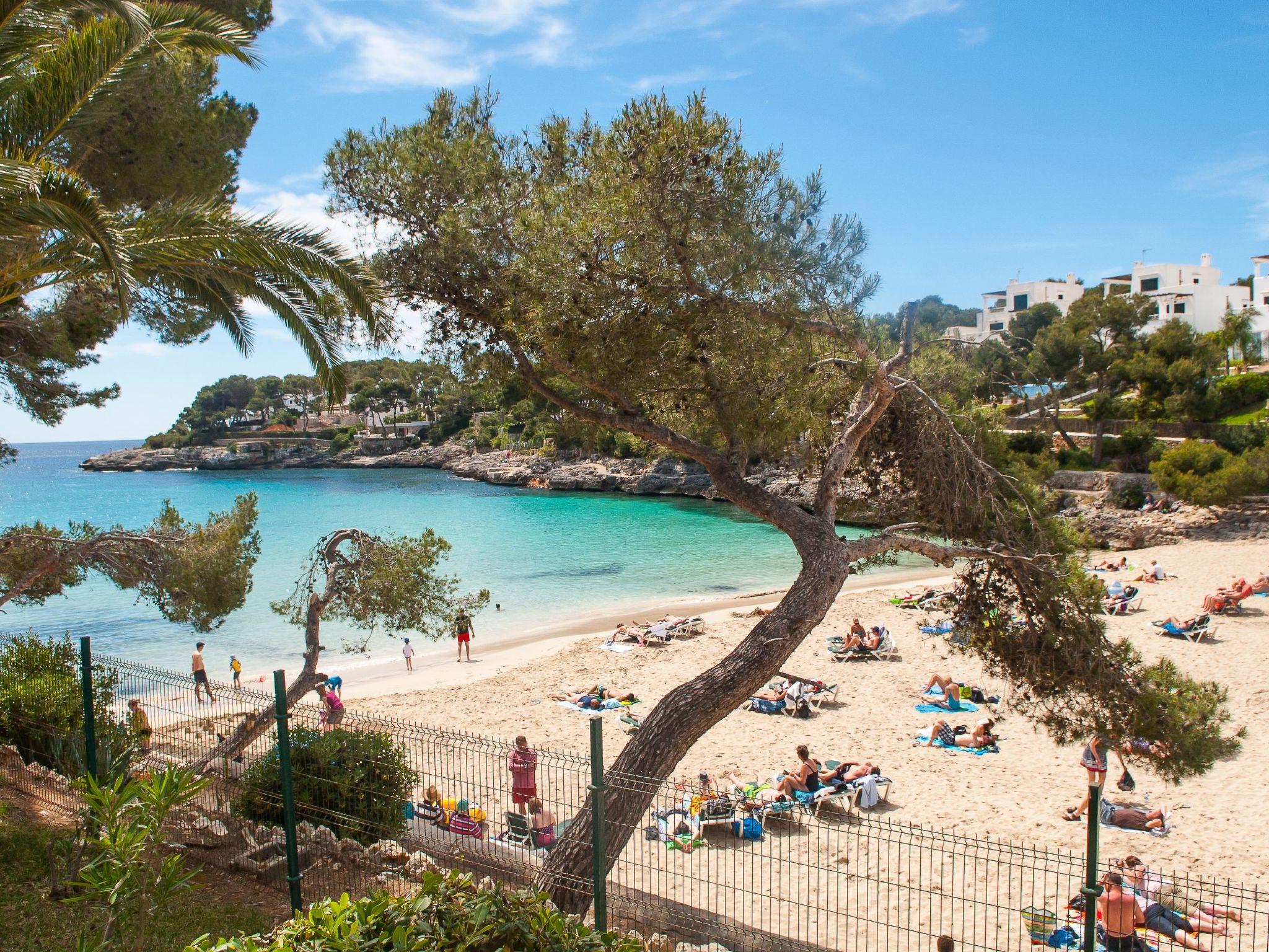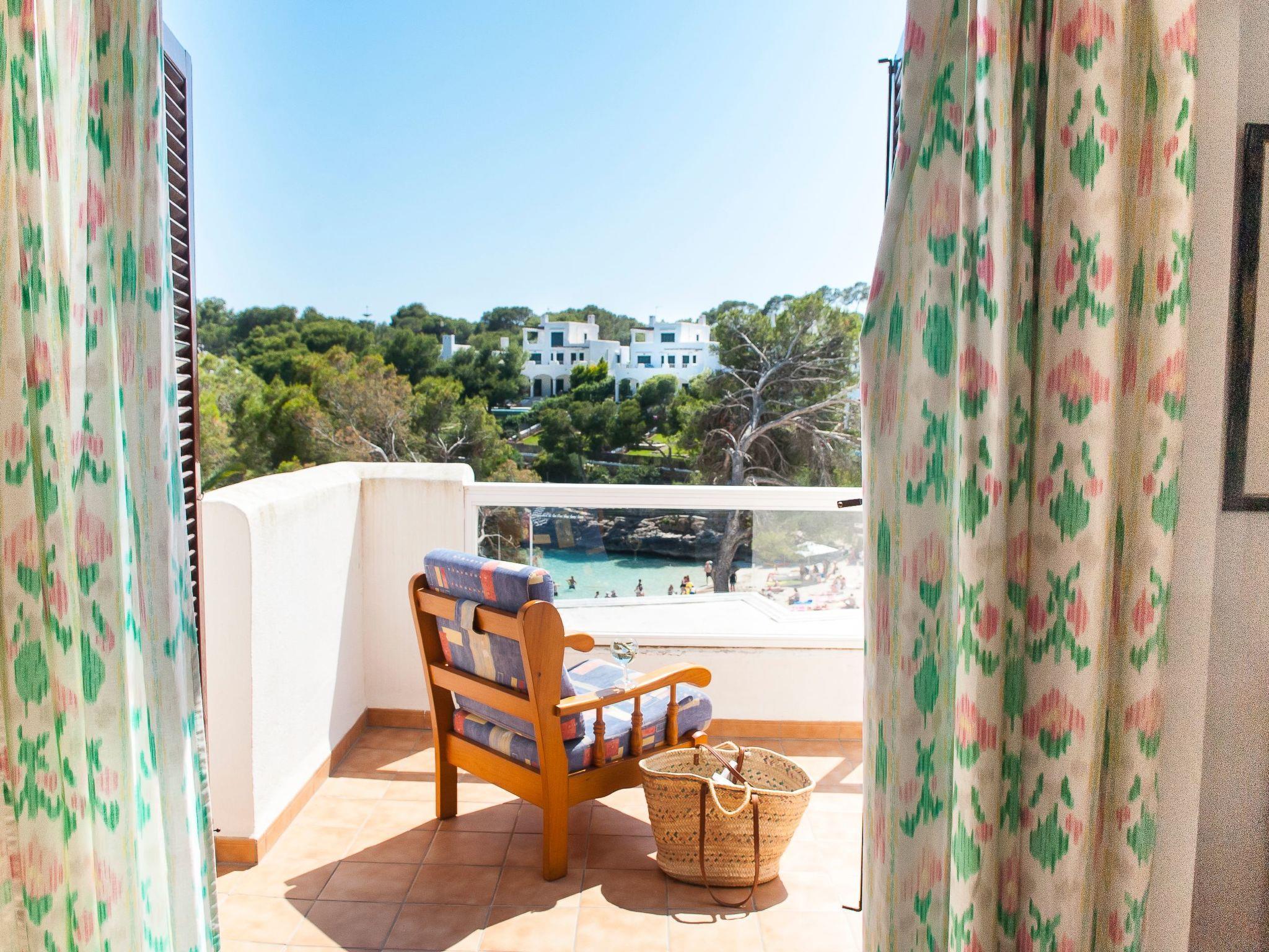 Here you will find shopping streets, restaurants, bars, cafés and the fashionable marina, which is well worth seeing. The bright living/dining area has direct access to the balcony with a partial view of the sandy bay and a small dining table. The compact kitchen is equipped for holiday use. The flat has two bedrooms, each with two single beds and access to the balcony. One bedroom has a bathroom with bathtub, where the washing machine is also located, while the other bedroom has a shower room. The beautiful, large communal pool is located directly above the sandy bay of Cala Gran - ideal for refreshing, sunbathing and relaxing. A path leads from here directly to the sandy bay.