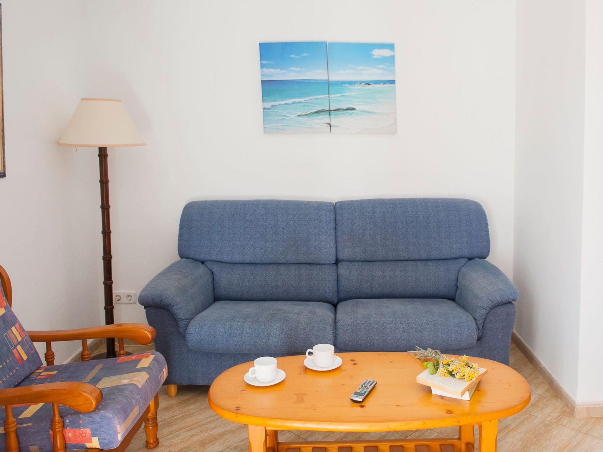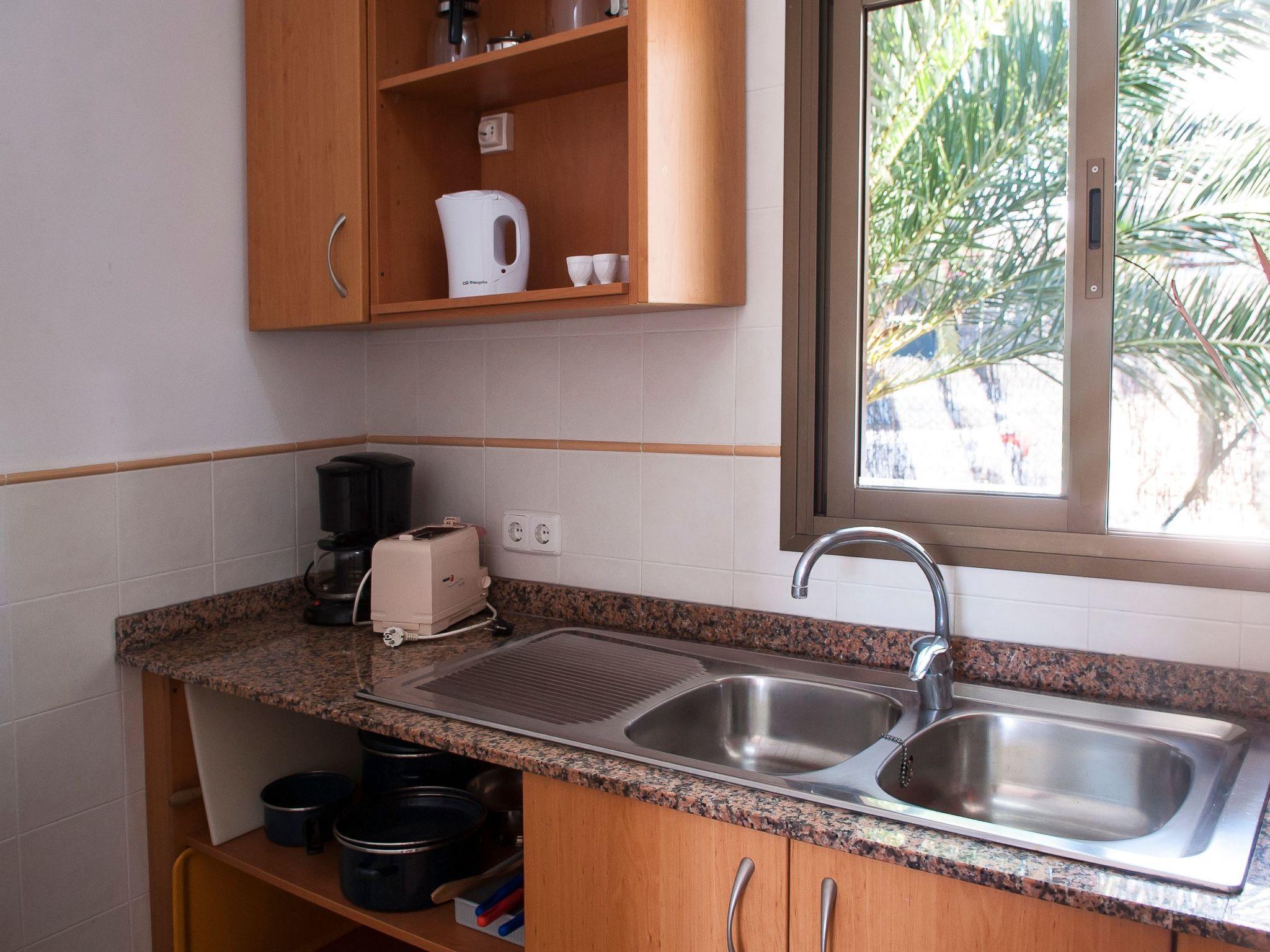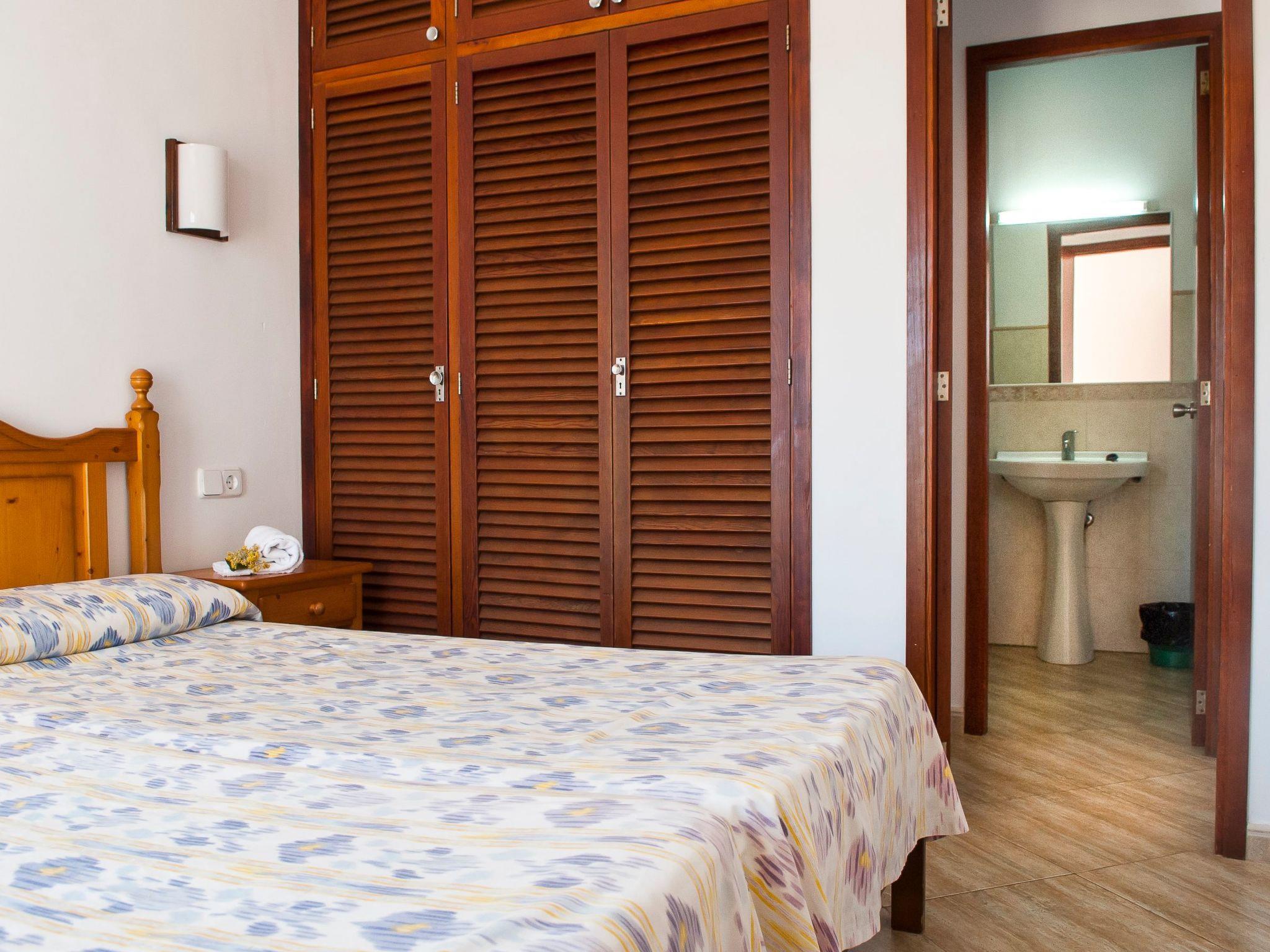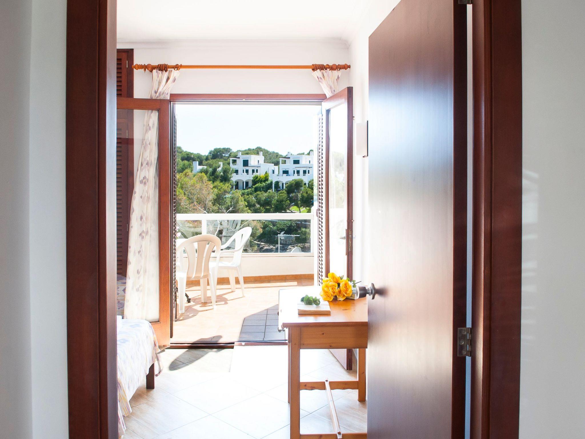 Here you will find shopping streets, restaurants, bars, cafés and the fashionable marina, which is well worth seeing. The bright living/dining area has direct access to the balcony with a partial view of the sandy bay and a small dining table. The compact kitchen is equipped for holiday use. The flat has two bedrooms, each with two single beds and access to the balcony. One bedroom has a bathroom with bathtub, where the washing machine is also located, while the other bedroom has a shower room. The beautiful, large communal pool is located directly above the sandy bay of Cala Gran - ideal for refreshing, sunbathing and relaxing. A path leads from here directly to the sandy bay.