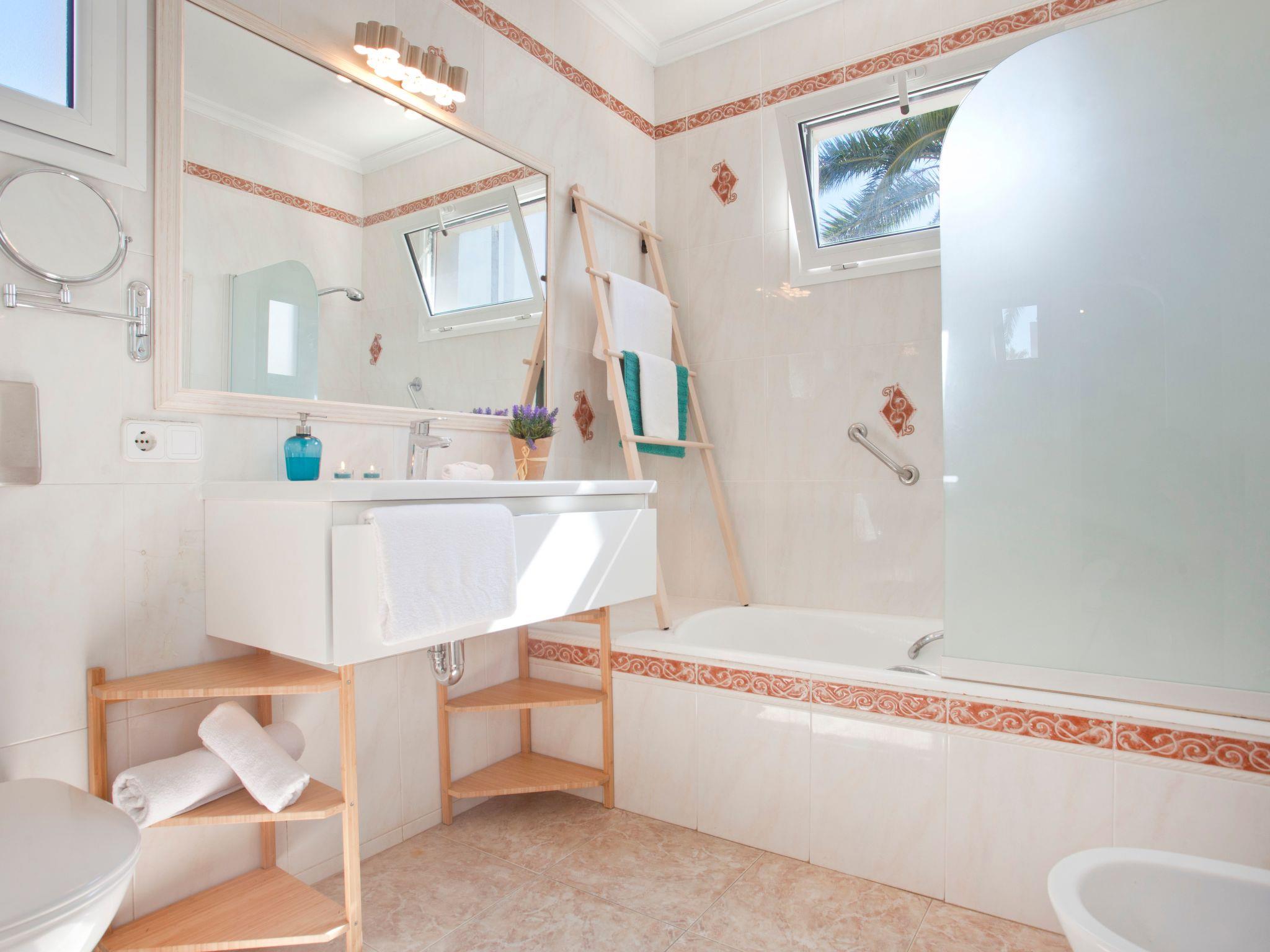 Bungalow for 4 persons, with possibility of 2 additional places in a Balinese bed in the "Bungalow Playa d'Or", with direct access to the beach of Cala Gran from the community pool. At the entrance of the bungalow there is a small private garden with outdoor shower, table and chairs, fully equipped kitchen with breakfast bar, fridge, microwave, ceramic hob, oven, dishwasher, living room with table and chairs, sofa and satellite TV, large windows leading to the terrace with table, chairs and sun loungers overlooking the pool and beach, has an awning for sunny days. The house has two bedrooms and a living room with a Balinese bed with space for 2 extra people. The double bedroom has a 1.50 x 2.00m bed, two built-in wardrobes, a dressing table and 2 bedside tables, a doorway leading to the room with the Balinese bed of 1.50 x 2.00m and large windows, another doorway to the bathroom with bath. The other bedroom has 2 single beds of 0.90m x 2.00m, with a desk, a built-in wardrobe, a safe, 2 bedside tables, a window and a doorway to the bathroom with shower.The terrace has a dining table and chairs and two sun loungers overlooking the communal pool and the beach.Short description 1No. of kitchens : 1SurroundingsSports facilities in the surroundings : FishingGarden and outdoorsCommunal pool and direct access to the beach.
