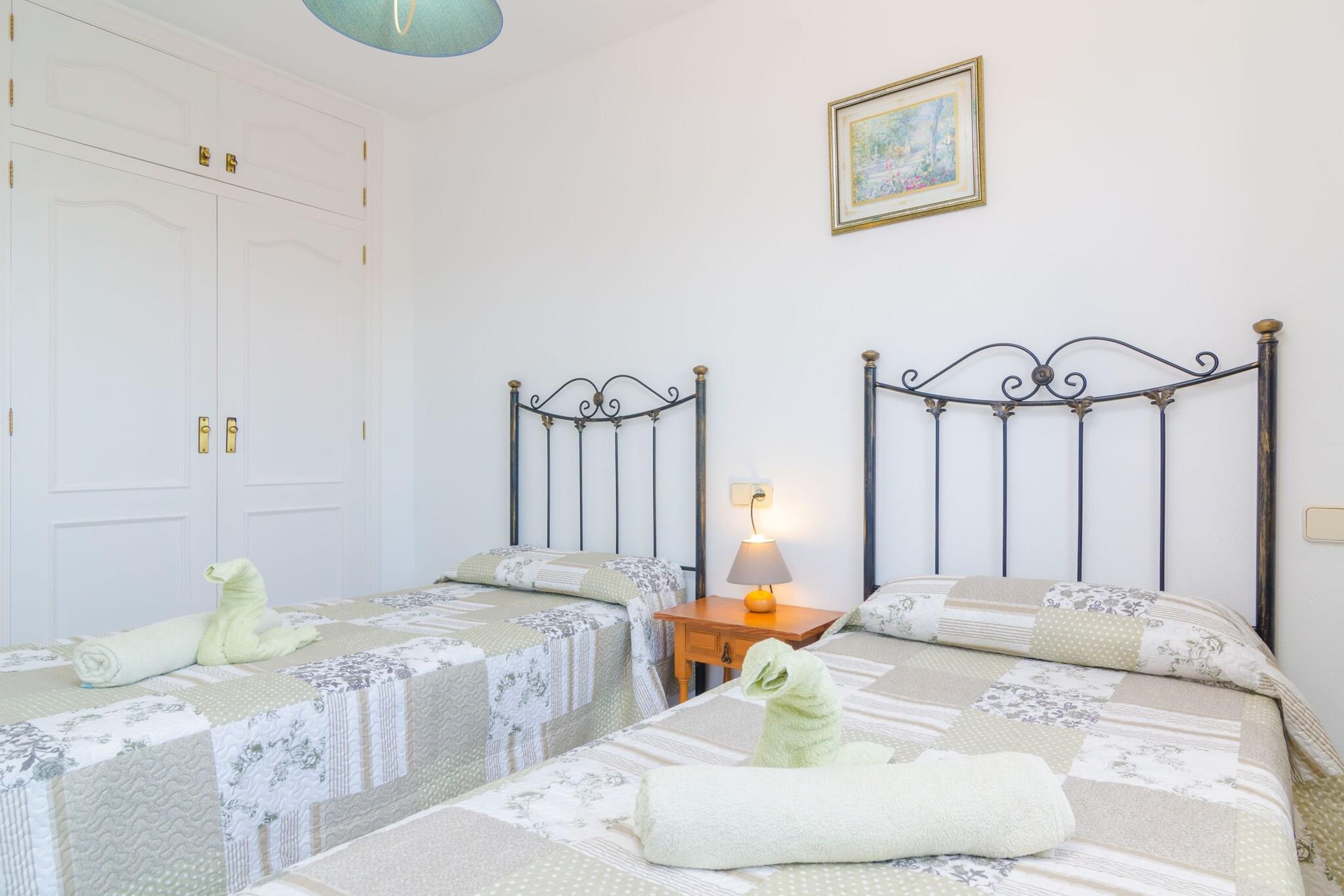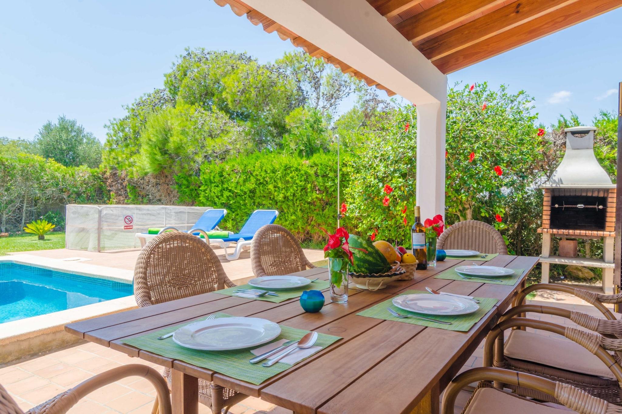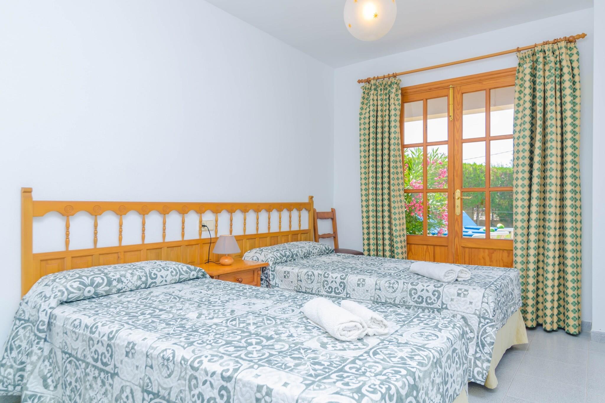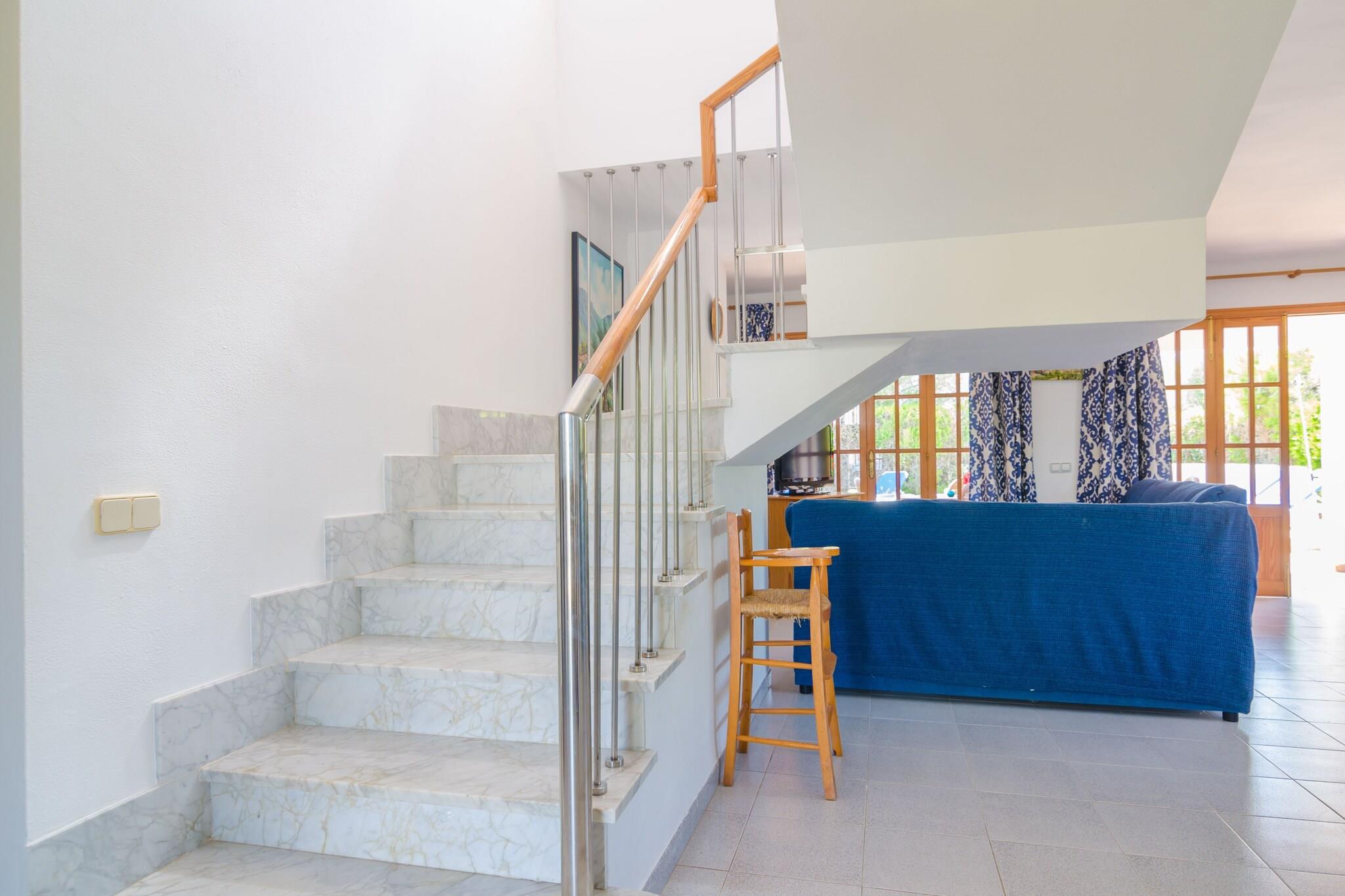 Du ønsker ikke at være et andet sted, men det smukke ydre område af dette hus. Det centrale element er naturligvis klorbassinet på 7 x 4 meter og med en dybde på mellem 0,8 og 1,9 meter, omkring hvilken du kan nyde solen og vejre det vidunderlige haveområde fuld af liggestole. Ved huset finder du verandaen, ideel til at spise frokost eller aftensmad udenfor, mens de små tager en dukkert eller leger. Du kan også tilberede lækre grillretter. . Der er en anden terrasse på første sal, et lille hjørne til at slappe af om natten og se stjernehimlen. Ejendommen er indhegnet og der er tilknyttet naboer. Dette 250 m² store hus strækker sig over to etager. I stueetagen kan stue-spisestuen med satellit-tv rumme op til 8 personer, og det fuldt udstyrede køkken har en keramisk kogeplade. Der er to soveværelser med to enkeltsenge, garderobeskabe og ventilatorer samt et brusebadeværelse. På første sal finder du et soveværelse med dobbeltseng, ventilator, garderobe og en-suite brusebadeværelse, samt et andet soveværelse med to enkeltsenge, ventilator, garderobe og adgang til terrasse. Et andet brusebadeværelse er også på denne etage. Huset er fuldt udstyret med vaskemaskine, strygejern og strygebræt, og alle opholdsrum og soveværelser har aircondition. Denne hytte er beliggende i en rolig urbanisering af Cala Egos i Cala d'Or. Den nærmeste strand er Caló des Pou. Det er en hvid sandstrand, og den tæller med dadelpalmer og træer for at holde sig væk fra solen. Det er et miljø præget af en stor naturskønhed. Turistlicens: VT/1159 Som reaktion på Coronavirus (COVID-19) er yderligere sikkerheds- og sanitære foranstaltninger i kraft på denne ejendom.