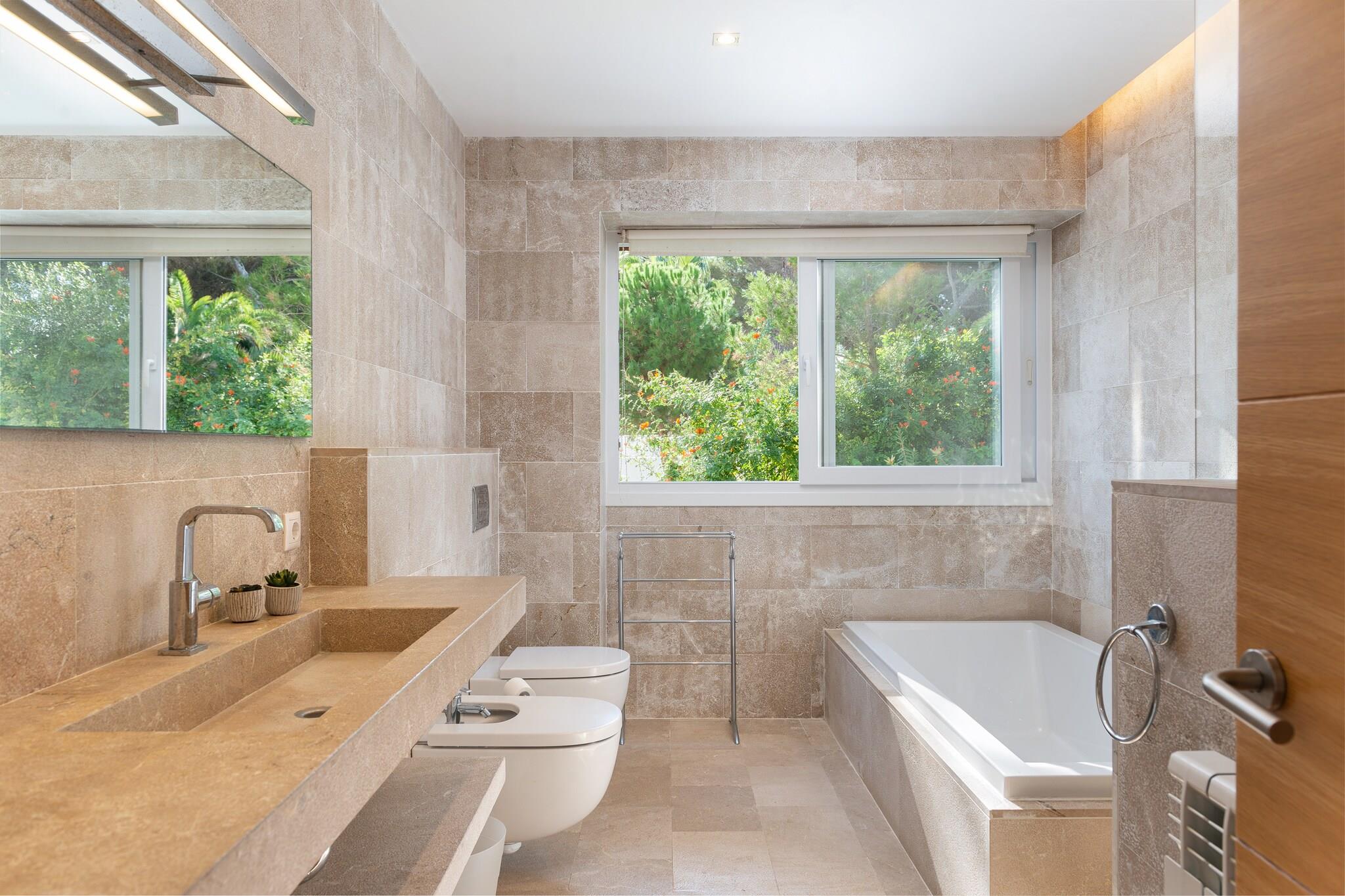 De prachtige buitenkant van het pand is ideaal om te genieten van het mediterrane klimaat. Op het hoofdterras vindt u een privé chloorzwembad met afmetingen van 6m x 5m en een dieptebereik tussen 0,75m en 1,65 meter. Als u wilt, kunt u baden in de zee dankzij de directe privétoegang die u vindt aan de overkant van de weelderige en goed onderhouden tuin. De buitenkant bestaat ook uit een veranda, een barbecueplek en verschillende terrassen waar u met uw gezelschap kunt eten of borrelen terwijl u geniet van het spectaculaire uitzicht op de Middellandse Zee. Het terrein is omheind en er zijn buren in de buurt. Het zorgvuldige en elegante interieur van het huis met 4 verdiepingen is ontworpen om u de rust te bieden die u verdient. Op drie van de verdiepingen vindt u woonkamers uitgerust met AC en Smart TV. De woonkamer op de begane grond heeft ook een eethoek, terwijl de andere twee toegang hebben tot twee terrassen met uitzicht op zee. Op de begane grond bevindt zich een aparte keuken met een gasfornuis en al het benodigde keukengerei om comfortabel te koken. In het huis is er een wasmachine, droger, strijkijzer en strijkplank. Voor het slapengaan hebben ze 6 slaapkamers verdeeld over verschillende verdiepingen, allemaal met airconditioning en verwarming. Drie hebben een tweepersoonsbed. En daarnaast hebben ze een en-suite badkamer, waarvan twee met douche en de andere met douche en bad. De overige drie zijn uitgerust met twee eenpersoonsbedden. Hiervan heeft één ook een en-suite badkamer met douche. Een toilet maakt de uitrusting van het huis compleet. Als u met uw baby reist, kunnen wij u voorzien van een kinderbedje en een kinderstoel. Cala d'Or is een van de meest spectaculaire bestemmingen om uw vakantie op het eiland door te brengen. Het gebied beschikt over alle noodzakelijke diensten voor uw verblijf. Aan de schoonheid van de typische gebouwen in de omgeving moeten we de paradijselijke baaien eromheen toevoegen, waarvan Cala Petita de dichtstbijzijnde is en die rechtstreeks toegankelijk is vanuit uw accommodatie, maar zonder bijvoorbeeld Cala d'Or, Cala Esmeralda of Cala Serena te vergeten, naast het indrukwekkende natuurpark Mondragó. Ze hebben ook een golfbaan op slechts 9 km afstand, bekend als Golf Vall d'Or, voor het geval u een andere dag wilt doorbrengen. Voor eventuele extra kosten kunt u contact opnemen met de adverteerder. Wij accepteren geen huisdieren. Het vieren van evenementen is niet toegestaan. Afstanden Strand: 0,12 km - Cala Petita Luchthaven: 59,9 km - Palma de Mallorca Golfbaan: 9,2 km - Vall d'Or Stad: 0,3 km - Cala d'Or Treinstation: 31,3 km - Manacor Bushalte: 0,7 km - Cala d'Or Veerboot: 67,6 km - Palma Ziekenhuis: 30,4 km - Manacor-ziekenhuis Toeristenvergunning: ETV/1948 Op de Balearen geldt een toeristenbelasting, Ecotasa genaamd, die door de gast moet worden betaald. Het bedrag varieert tussen EURO 0,55 / per nacht per persoon in het laagseizoen en EURO 2,2 / per nacht per persoon in het hoogseizoen. Vanaf de negende dag wordt het met de helft verminderd. Personen onder de 16 jaar uitgesloten.