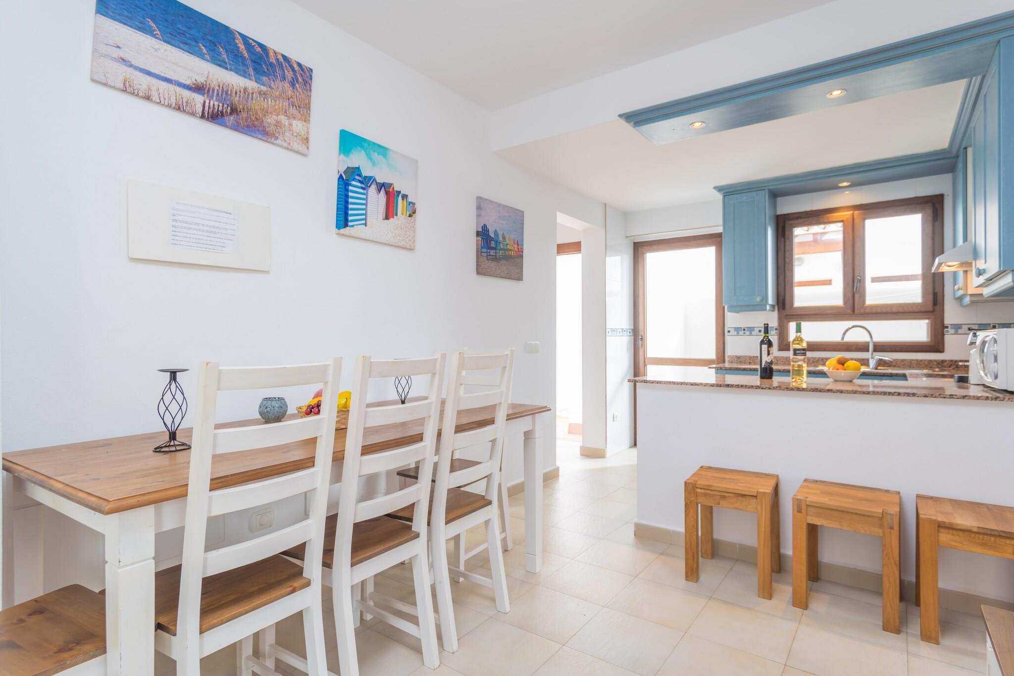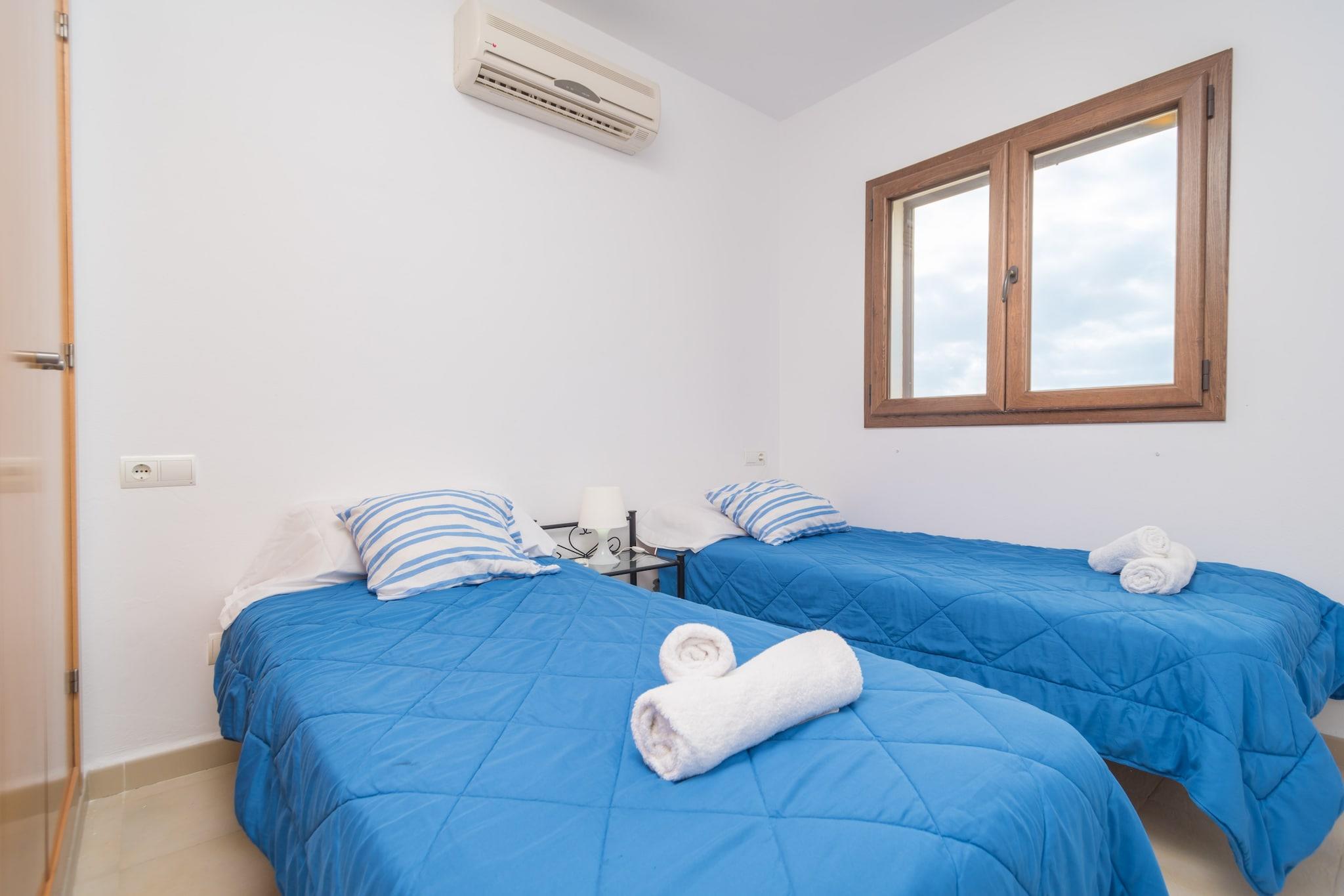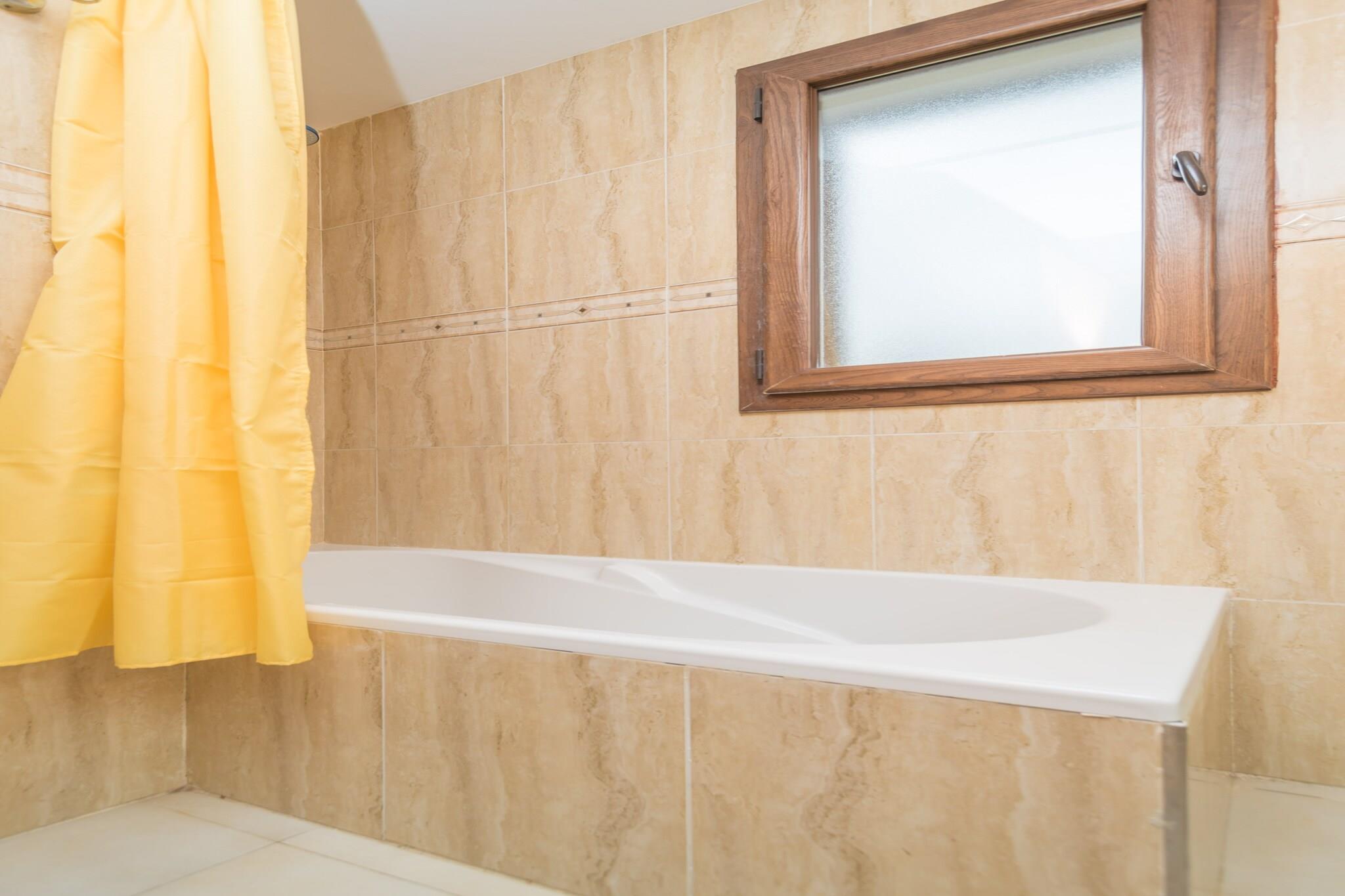 Kun 450 meter fra Cala Egos-stranden tilbyder dette charmerende to-etagers hus en perfekt familieferie i solrige Cala d'Or. Slap af i den fælles 7x7 m klorpool eller se de små plaske i den separate børnepool. Det private, indhegnede haveområde omfatter liggestole, en parasol, en grill og en smukt møbleret veranda til udendørs spisning. Indenfor har huset på 130 m² en rummelig åben-plan stue/spisestue med aircondition og satellit-tv (tyske kanaler) og et fuldt udstyret køkken med keramisk kogeplade, ovn, mikroovn, opvaskemaskine og meget mere. En vaskemaskine, strygejern og strygebræt er også tilgængelige. Med 5 soveværelser med aircondition (to med dobbeltsenge, to med to enkeltsenge og et med en køjeseng) har hjemmet plads til op til 9 gæster komfortabelt. To komplette badeværelser med badekar er tilgængelige på begge etager. En barneseng og høj stol kan leveres efter anmodning. Cala d'Or tilbyder alt for en uforglemmelig ferie - butikker, restauranter, livlig atmosfære og fantastiske bugter som Cala Mondragó og Portopetro i nærheden. Brug af AC er et ekstra gebyr. Ingen kæledyr eller fester tilladt. Gæster under 25 skal være en del af en familiegruppe.