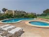 Stue, spisestue, Køkken(komfur, kaffemaskine, mikrobølgeovn), soveværelse(2x enkeltseng), soveværelse(enkeltseng, enkeltseng), badeværelse, køle-fryseskab, badekar, håndvask, toilet, have, havemøbler, 10x solstole, swimmingpool, barneseng, barnestol