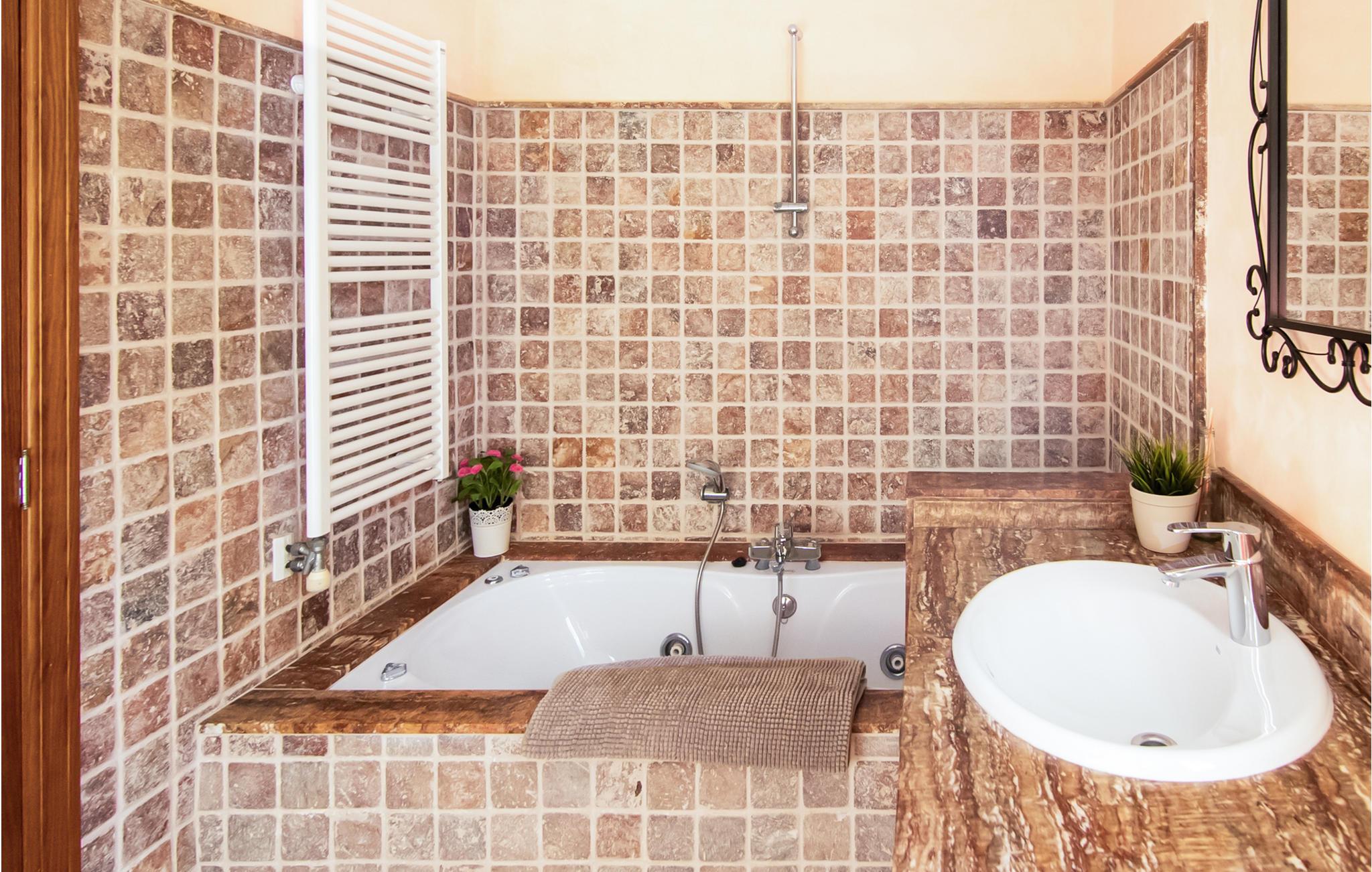 Badeværelse (nr. 1) - WC. Varmt og koldt vand. Bruser og badekar