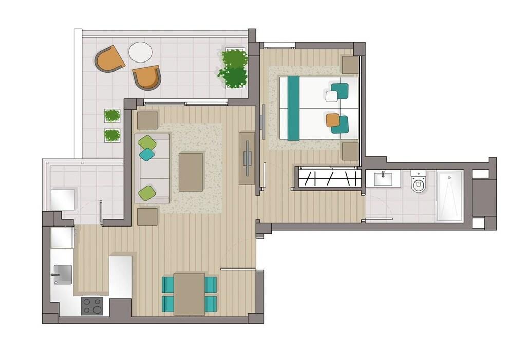 Lev som med venner! Individuelt designet strandlejlighed på 6. sal med majestætisk havudsigt ved frontlinjen. Den 64 m² store ferielejlighed på 6. sal (elevator tilgængelig) med havudsigt fra alle vinduer byder på soveværelse, badeværelse med bruser, stor stue/spisestue/køkken og et opbevaringsrum. Den 11m² overdækkede altan vender mod øst mod Cala Millor-bugten, men byder på bagsiden også udsigt ind i landet til bjergene mod vest. Den lyse ferielejlighed er stilfuldt indrettet med stor sans for detaljer efter mottoet "Moderne purisme møder Belle Époque". Dobbeltsengen i soveværelset er 180 x 200 cm (separate madrasser) og stuesofaen er udtrækbar (ca. 150 x 200 cm) - så ferielejligheden byder på plads til 3 personer. Ferielejligheden tilbyder også bøger (tysk, engelsk), spil, stereoanlæg, Astra satellitmodtager, fladskærms-tv og gratis WiFi