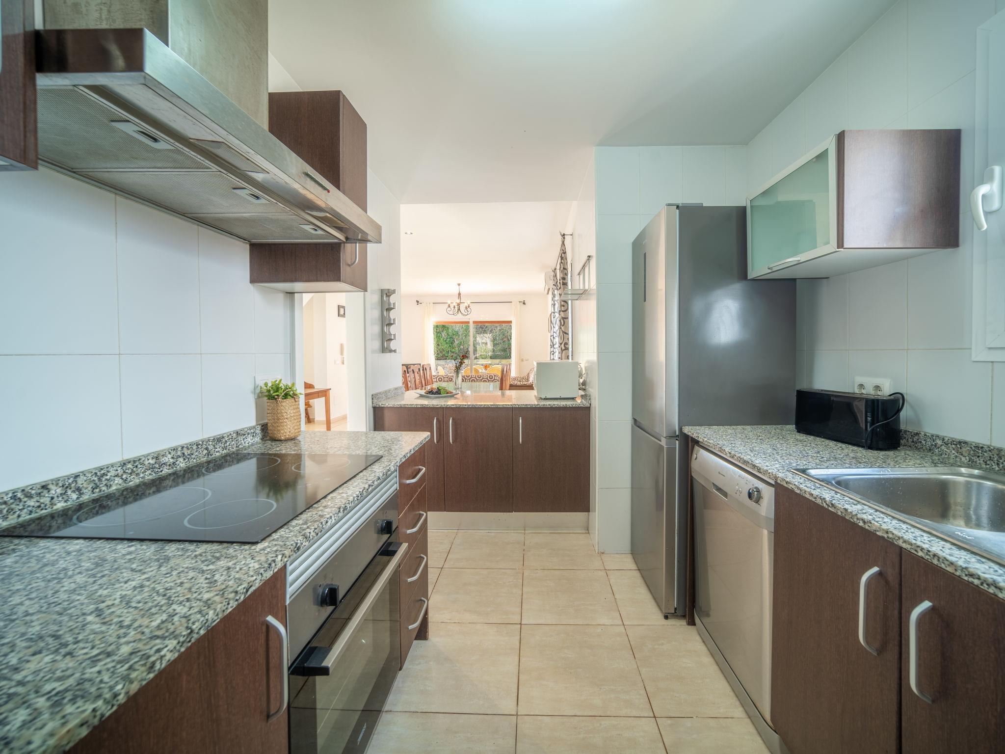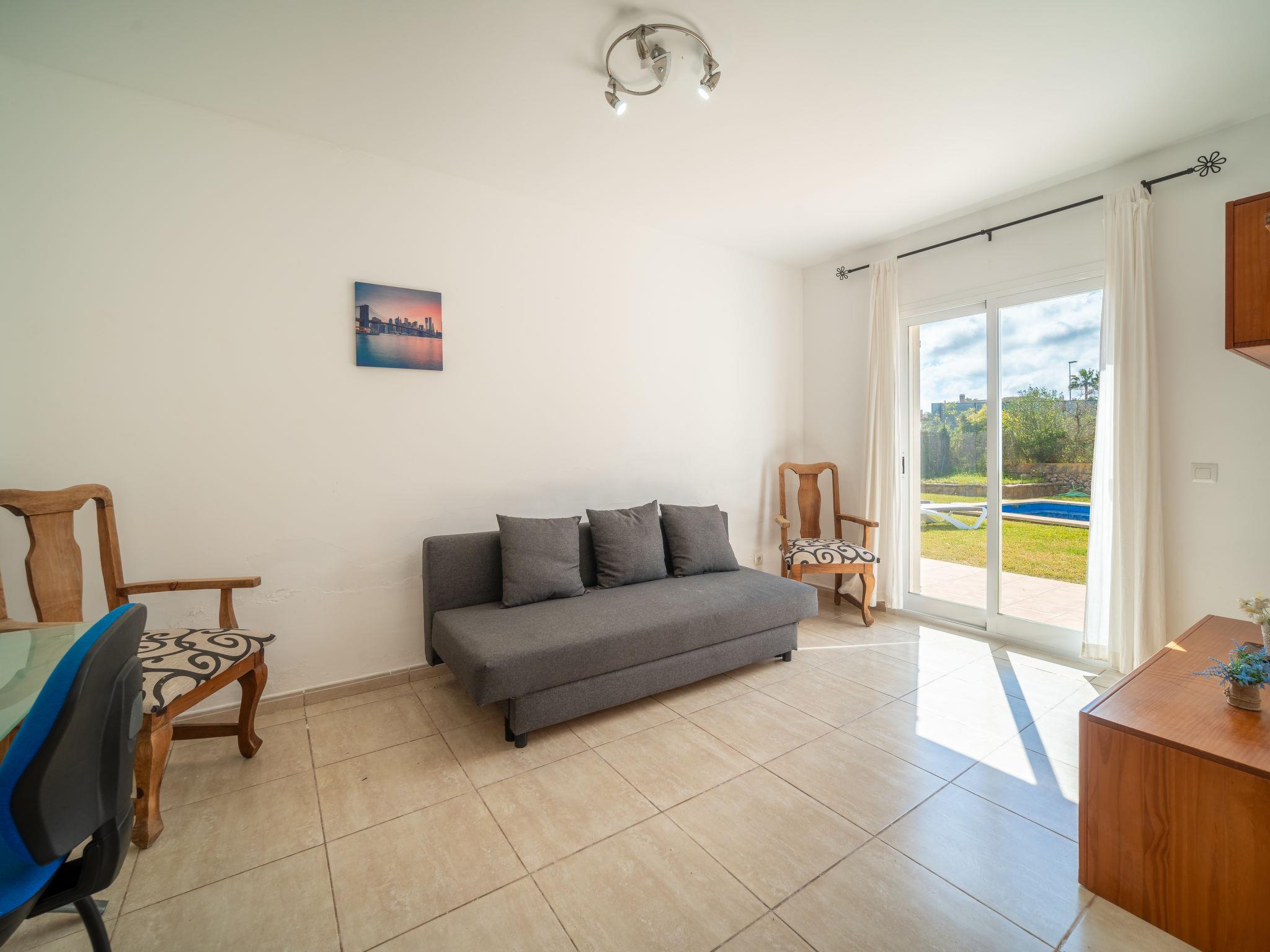 "Son Ganxo II", 4-room terraced house 166 m2. Object suitable for 6 adults. Practical and cosy furnishings: living/dining room with air conditioning and forced-air heating. Exit to the patio, to the swimming pool. 1 room with 2 beds (90 cm, length 190 cm), air conditioning and forced-air heating. Exit to the patio. Open kitchen (oven, dishwasher, 4 ceramic glass hob hotplates, toaster, kettle, microwave, electric coffee machine). Shower/WC. Upper floor: 1 double bedroom with 1 french bed (1 x 180 cm, length 190 cm), air conditioning and forced-air heating. Exit to the balcony. 1 double bedroom with 2 beds (90 cm, length 190 cm), air conditioning and forced-air heating. Exit to the balcony. 2 baths/WC. Air-conditioning, forced-air heating. Heating not available in all rooms. Natural stone floors. Patio, garden, lawn, porch. Terrace furniture, barbecue, deck chairs, covered balcony. View of the countryside. Facilities: washing machine, iron, children's high chair, baby cot for up to 2 year olds, hair dryer. Internet (WiFi, free). Parking at the house. Please note: suitable for families. Non-smoking house. The pool mentioned in the description is for private use. ETV/4746 // Reg. Nr.: ESFCTU00000702300130366900000000000000000000ETV/47465