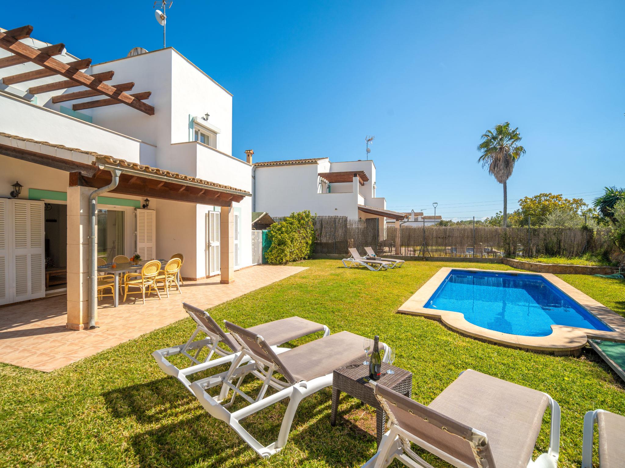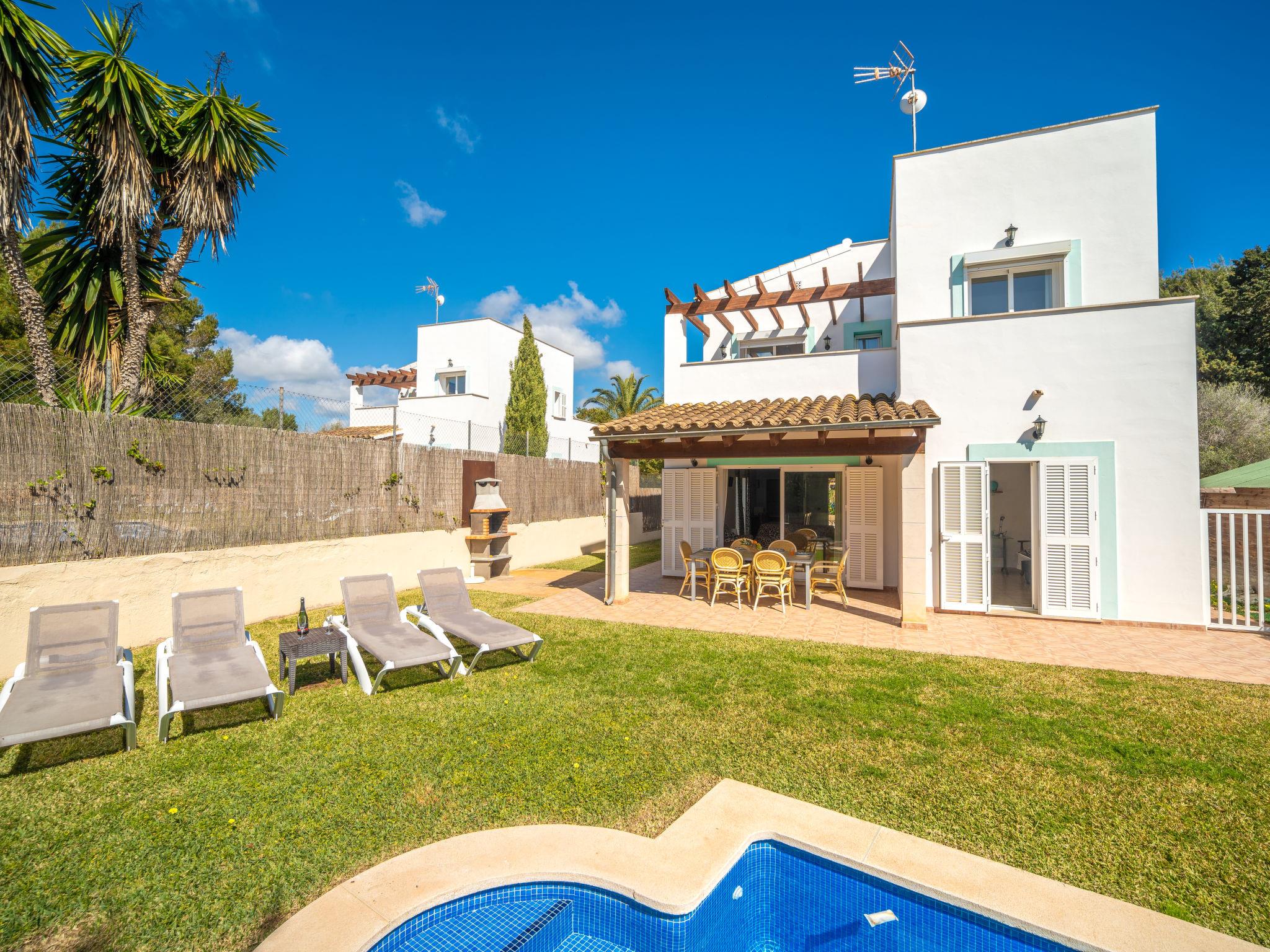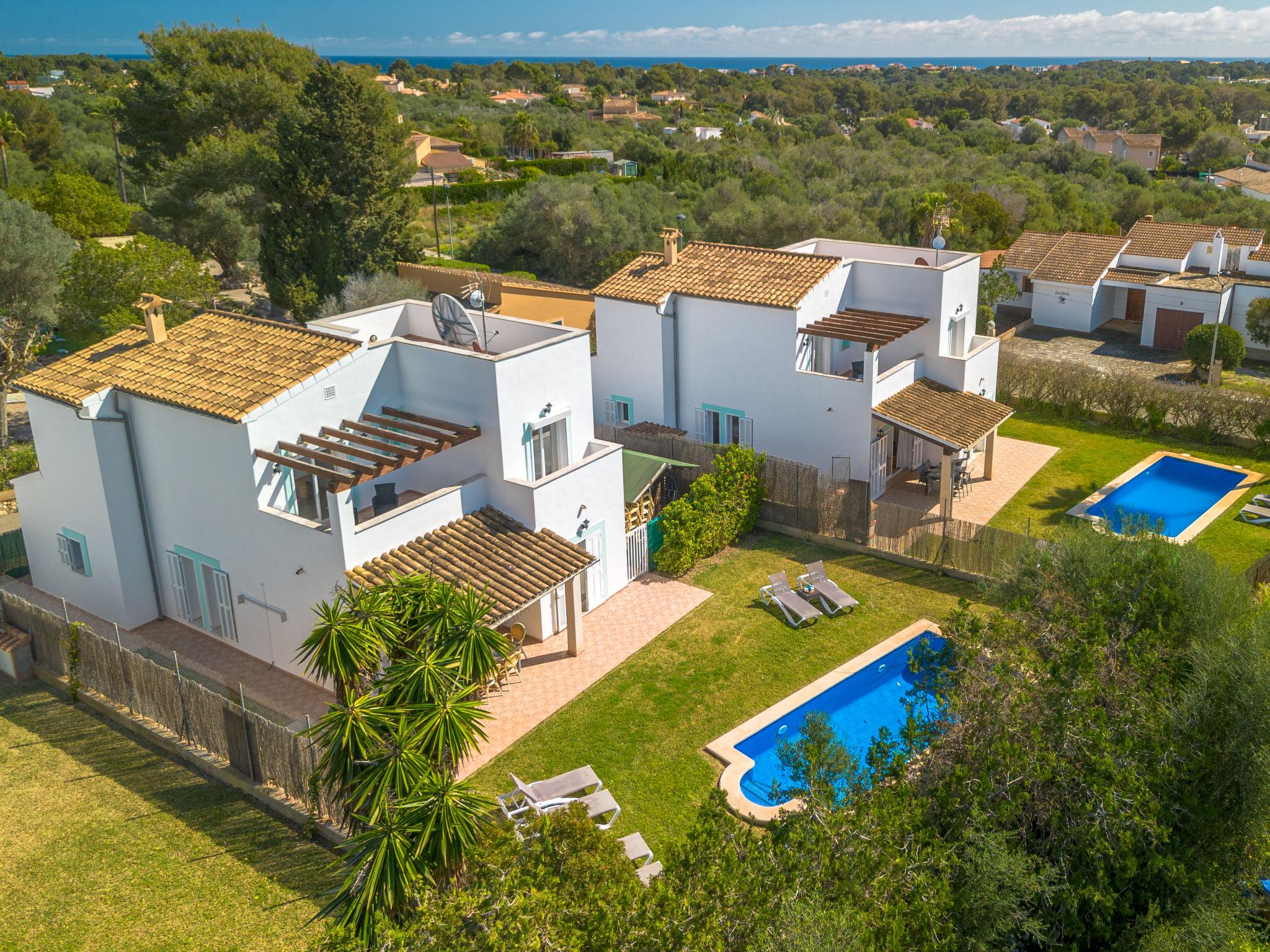 Cala Murada: Large, cosy single-family house "Son Ganxo", 2 storeys. 3 houses in the residence. In the resort, in a quiet, sunny position residential area (villas), 700 m from the sea, 700 m from the beach. Private: natural state property with lawn, courtyard, swimming pool angular (7 x 3 m, seasonal availability: 01.Apr. - 31.Oct.). Outdoor shower, patio, arbour, pergola, garden furniture, barbecue, pool maintenance by the owner/gardener. In the house: internet access, WiFi, air conditioning, washing machine. Parking at the house on the premises. Supermarket 2.4 km, restaurant 1.8 km, bar 1.8 km, 25 minute walk to the centre, bus stop "Platja Cala Murada" 1.7 km, sandy beach "Platja Cala Murada" 700 m, rocky beach "Cala Murada" 700 m. Sports harbour 11 km, golf course (18 hole) 11 km, walking paths from the house 200 m, cycle lane 500 m. Nearby attractions: Portocolom - Cala D'Or - Portopetro, Felanitx 17 km, Rafa Nadal Museum Manacor 21 km, Cala Domingos,Cala Antena, Cala Bota 7 km, Colonia St Jordi - Es Trenc 41 km, Palma de Mallorca City 68 km. Hiking paths: Serra de Tramuntana 90 km, Ruta Cala Murada - S'Algar- Portocolom. Please note: car recommended. Object suitable for 6 adults. The owner does not accept any youth groups. Loading and unloading of baggage is possible at the holiday house. Airfield 63 km from the property. Additional accommodations can be booked. Property ref. ES8178.102.2 is situated on the same property. Neighbourhood highly sensitive to noise. Quietness and good behaviour expected. The complex has another 2 houses for rent. The tap water has no drinking water quality.