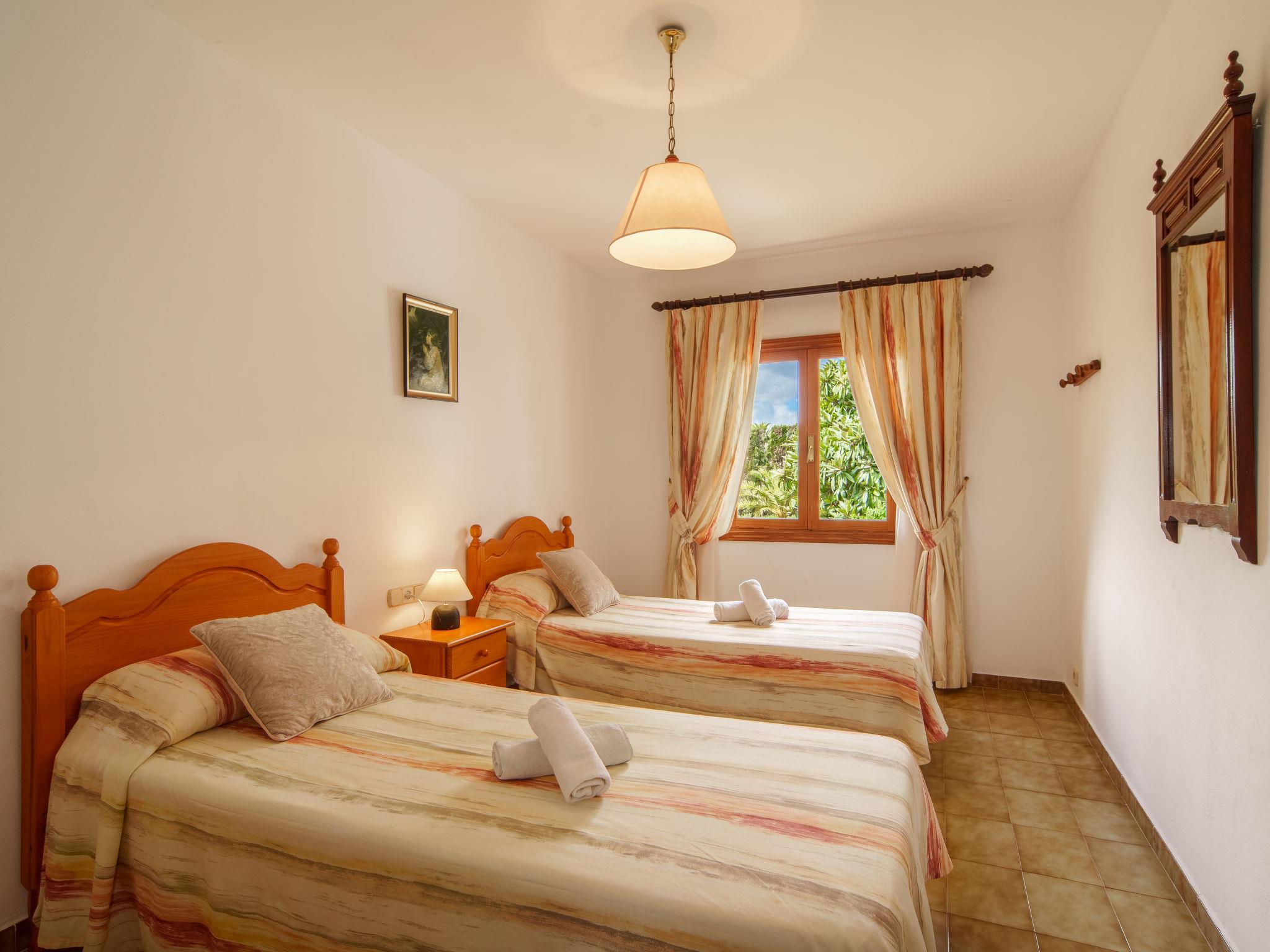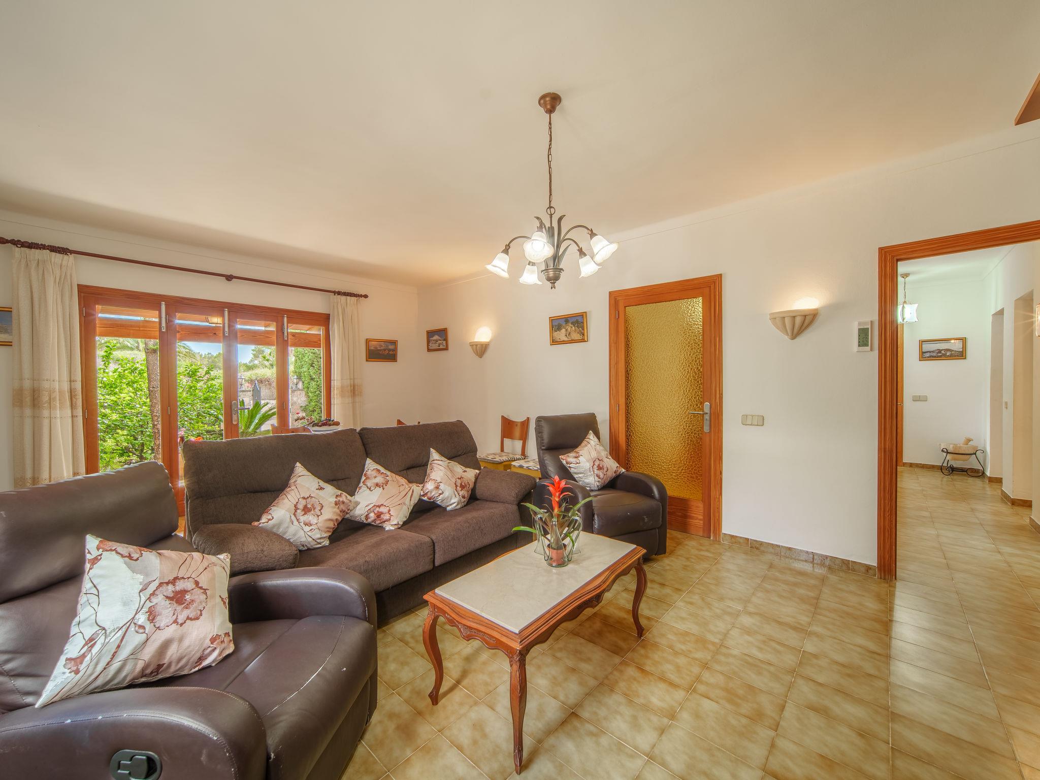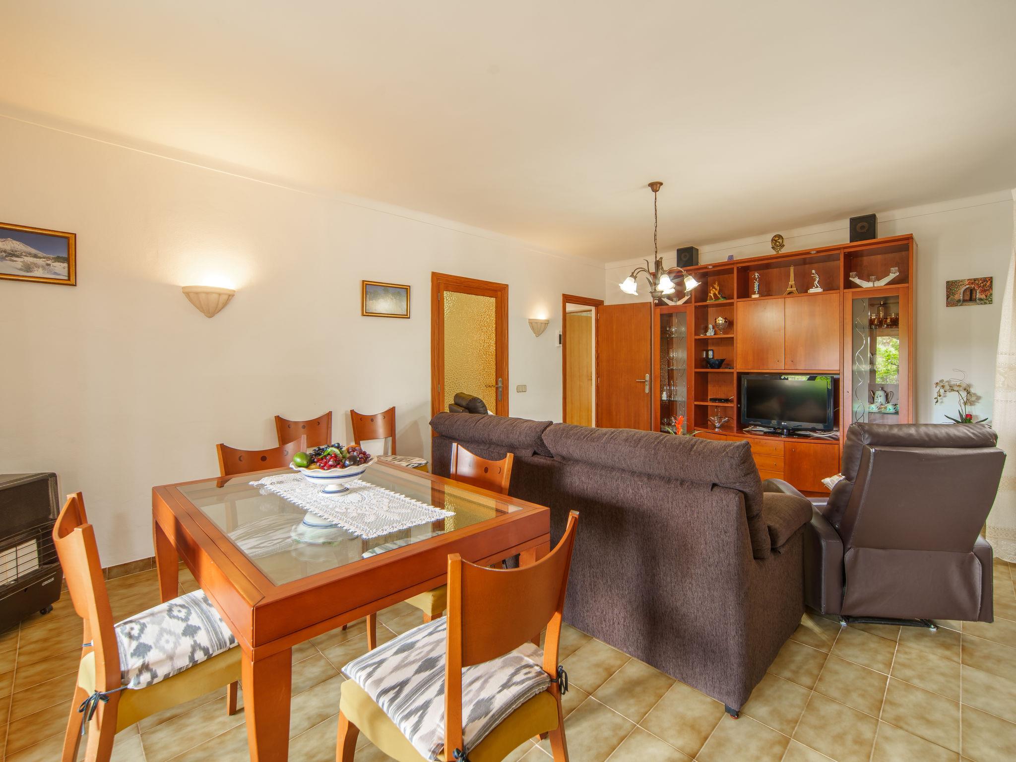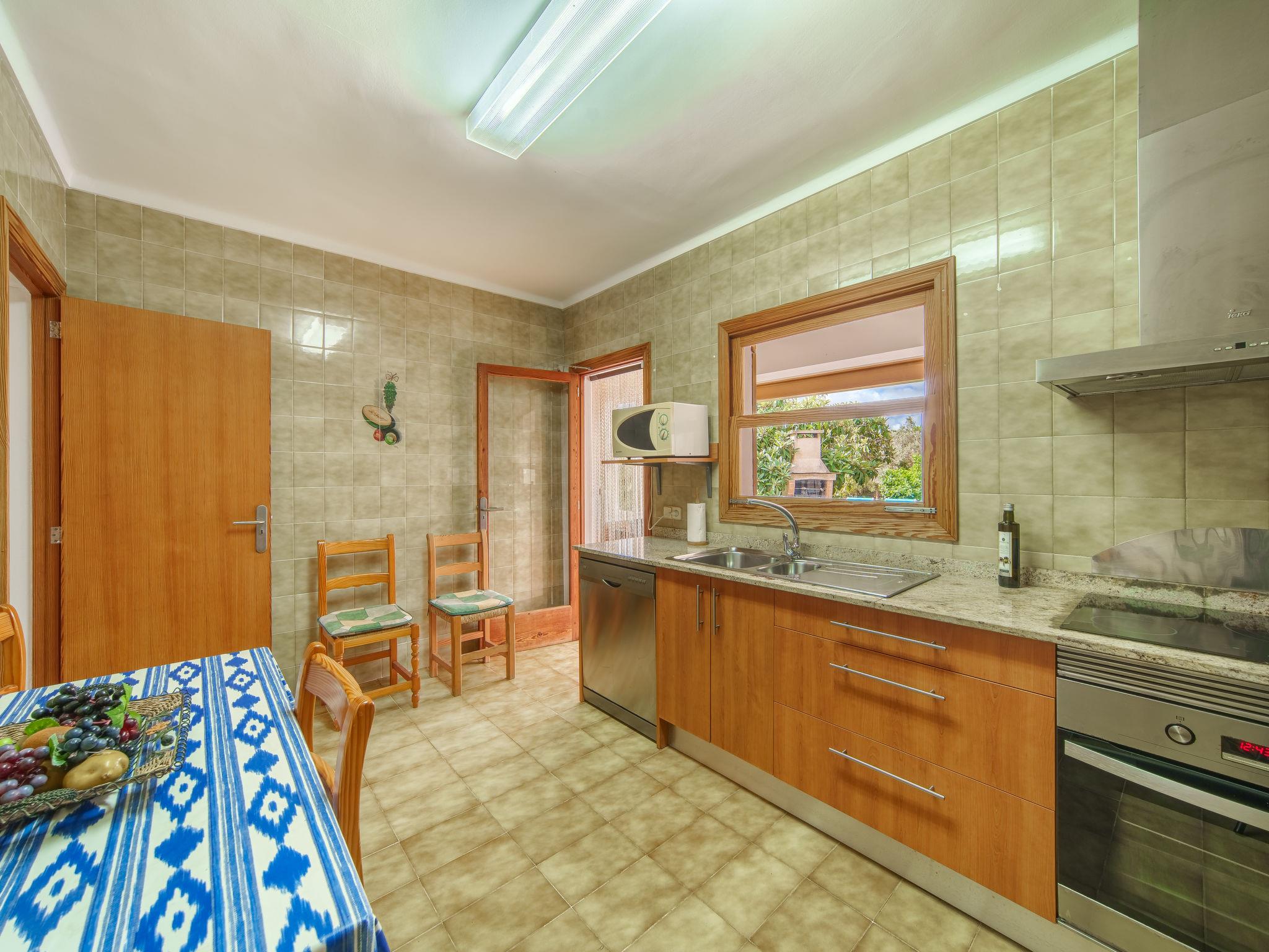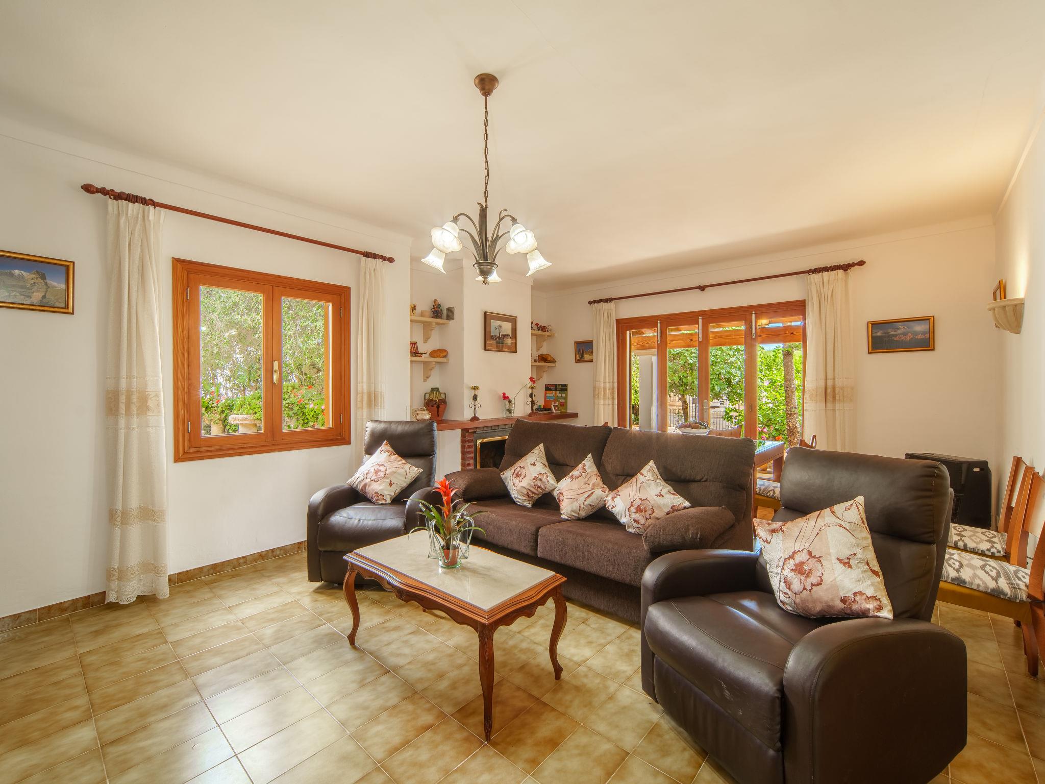 "Can Damia", 4-room house 80 m2. Object suitable for 5 adults. Practical furnishings: living/dining room with open-hearth fireplace, dining table and satellite TV. Exit to the terrace. 1 room with 2 beds and gas heater. 1 room with 1 french bed (150 cm), electric heater. 1 room with 1 bed. Kitchen (oven, dishwasher, 3 ceramic glass hob hotplates, microwave, freezer, electric coffee machine). Exit to the terrace. 2 showers/WC. Heating not available in all rooms. 2 terraces 12 m2, covered. Terrace furniture, barbecue, deck chairs (2). Beautiful view of the countryside. Facilities: washing machine, iron, children's high chair, baby cot, hair dryer. Internet (WiFi, free). Please note: suitable for families. Non-smoking house. Maximum 1 pet/ dog allowed. Note: 1x shower/toilet only accessible from outside. ETV/7689 // Reg. Nr.: ESFCTU00000702300095912600000000000000000000ETV/76896