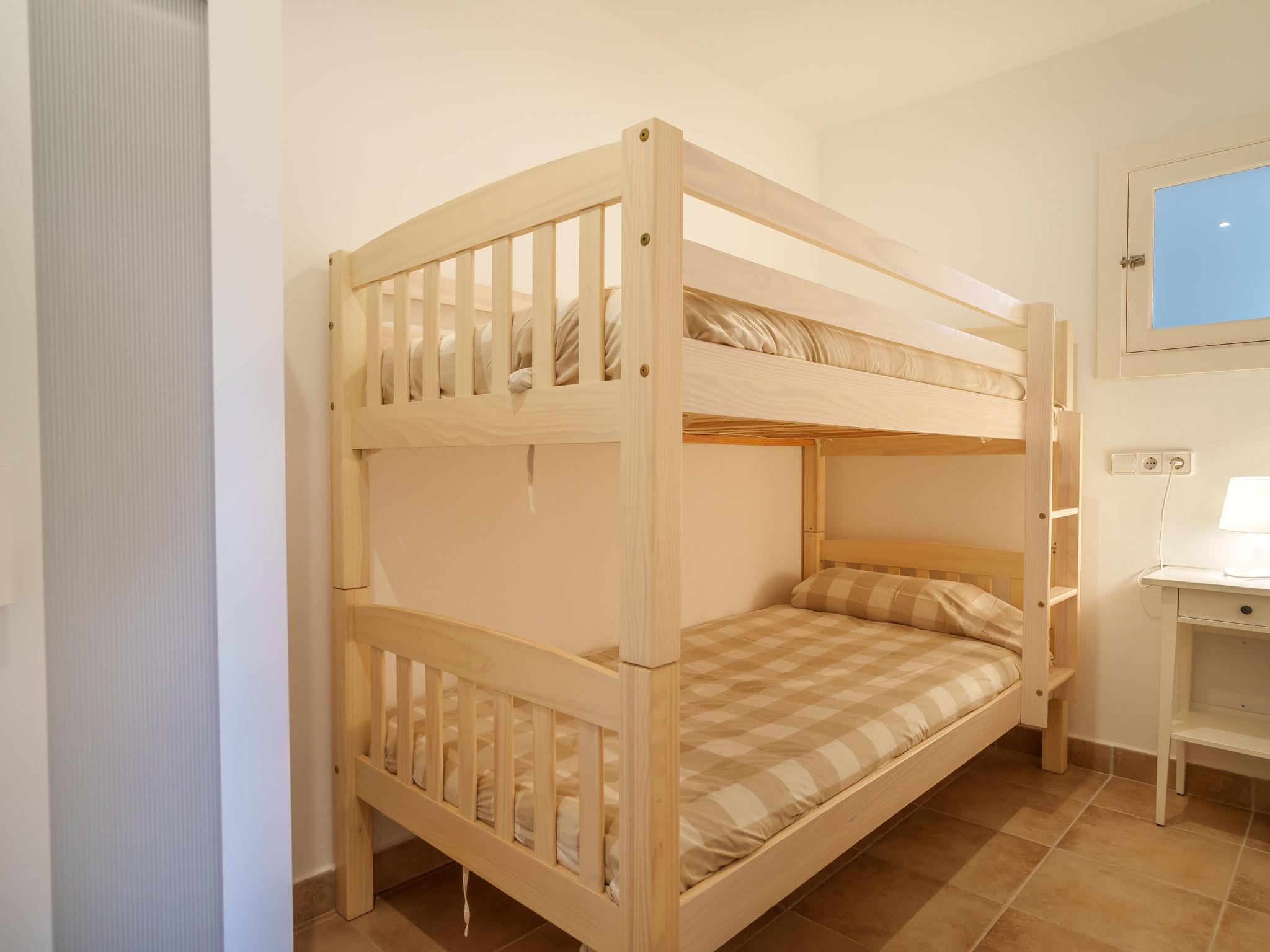"Los Pinos", 3-room apartment 45 m2. Object suitable for 2 adults + 2 children. Bright, renovated, practical and comfortable furnishings: large living/dining room with dining table, satellite TV, digital TV, air conditioning and forced-air heating. Exit to the terrace. 1 double bedroom with panoramic window with 1 french bed (150 cm, length 200 cm), fan. 1 room with 1 x 2 bunk beds (90 cm, length 190 cm), fan. Kitchen (3 ceramic glass hob hotplates, electric coffee machine). Shower/WC. Heating not available in all rooms. Balcony or terrace. Balcony furniture. Facilities: washing machine, children's high chair, baby cot, hair dryer. Internet (WiFi, free). Please note: non-smokers only. Smoke alarm, fire extinguisher. A1343 // Reg. Nr.: ESFCTU000007023000039170000000000000000000000AT/13435