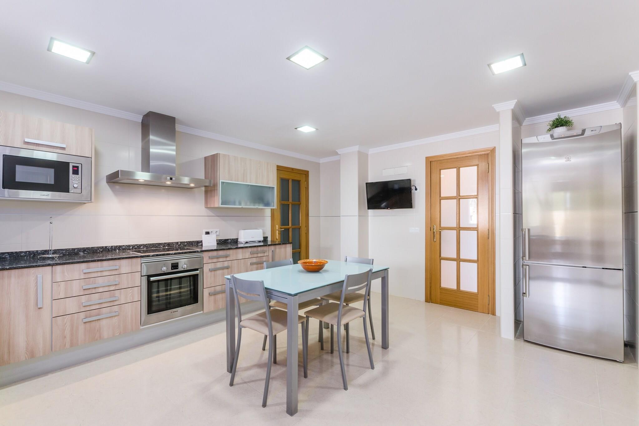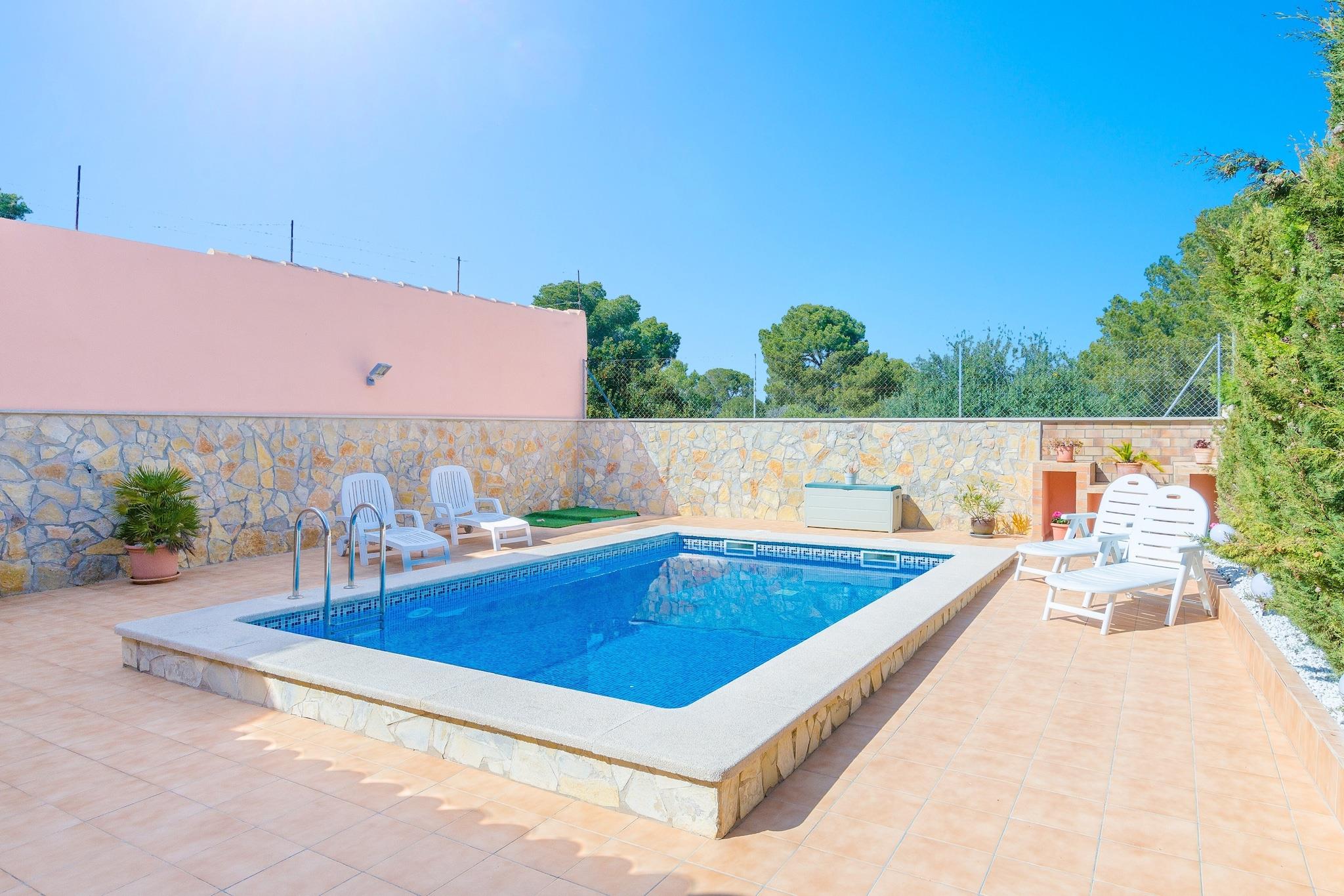 Privat pool og terrasse Træd ind i denne rummelige Cala Pi-villa og nyd din egen klorpool, der måler 6 x 3,5 meter, omgivet af en solbeskinnet terrasse. Den møblerede veranda inviterer dig til at spise al fresco, slappe af på sofaen med en drink eller fyre op for grillen til en mindeværdig aften. Den indhegnede grund giver delvist privatliv, mens den bevarer en venlig stemning i kvarteret, hvilket gør den ideel til familiesammenkomster eller en ferie med venner. Komfortabel familieliv Fordelt på to etager byder villaen på en lys stue-spisestue med hyggelige sofaer og et spisebord til seks. Det fuldt udstyrede køkken inkluderer en keramisk kogeplade og direkte adgang til verandaen, perfekt til sommermåltider. På første sal byder fire soveværelser med aircondition på afslappende nætter, inklusive en master med eget badeværelse og walk-in closet. To soveværelser har to enkeltsenge og det ene en dobbeltseng, der deler et tredje badeværelse. For familier er en barneseng og høj stol til rådighed. Yderligere faciliteter omfatter en vaskemaskine, tørretumbler, strygejern og strygebræt. Naturskøn strand beliggenhed Denne villa ligger kun 350 meter fra Cala Pi-stranden og giver nem adgang til fint sand og turkisblåt vand. Nærliggende restauranter serverer friske lokale retter, mens vagttårnet fra det 17. århundrede og den naturskønne Cap Blanc-vandring byder på en fantastisk kystudsigt. Udforsk strandene Es Trenc og Sa Rápita inden for rækkevidde, hvilket gør dette til et ideelt sted for en blanding af afslapning og udforskning.