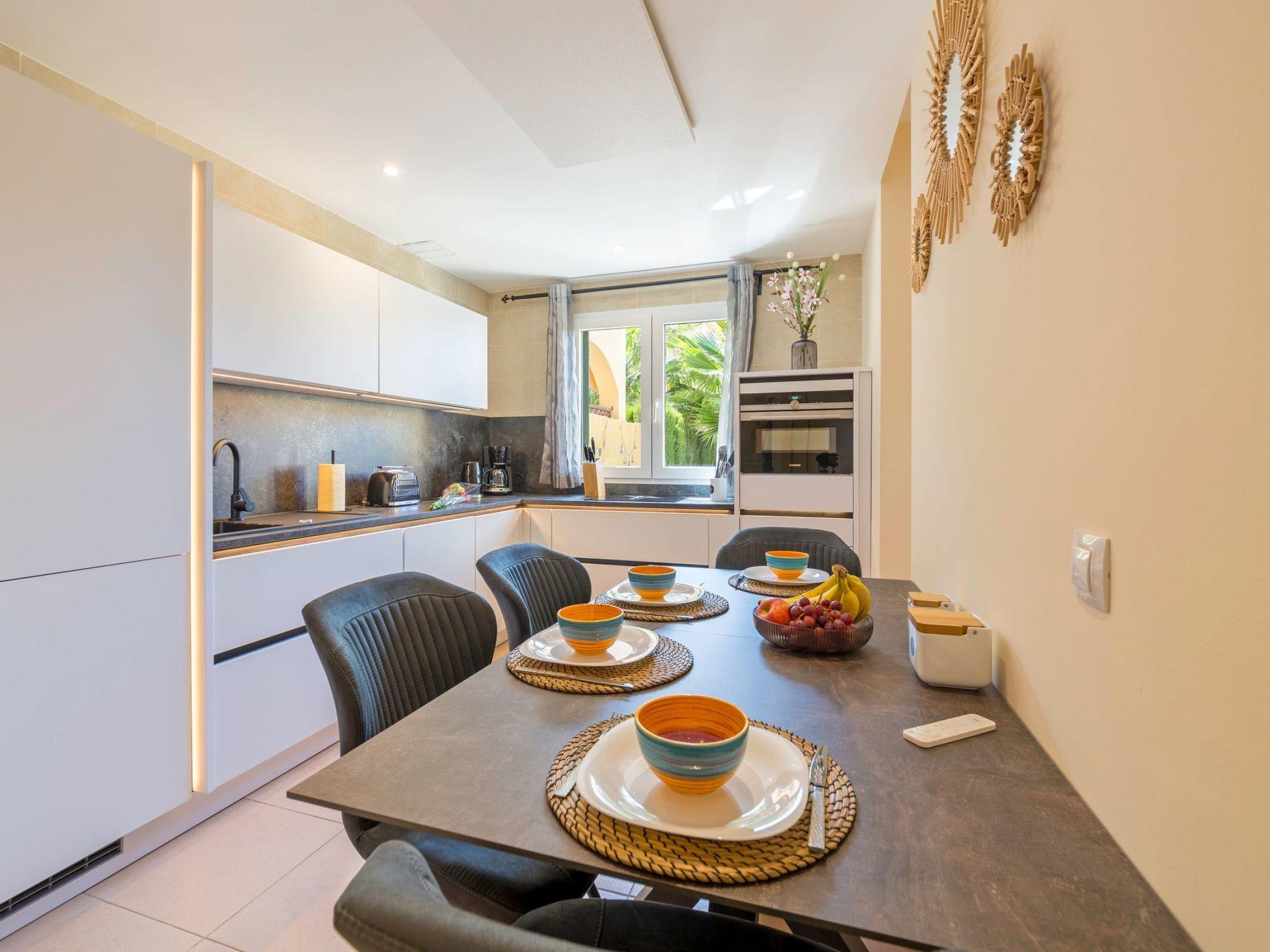A roofed and open terrace, as well as a private roof terrace with a sea view are available. There is also a small private garden and a very large communal swimming pool (including children's pool). The residential complex has a very spacious pool area.